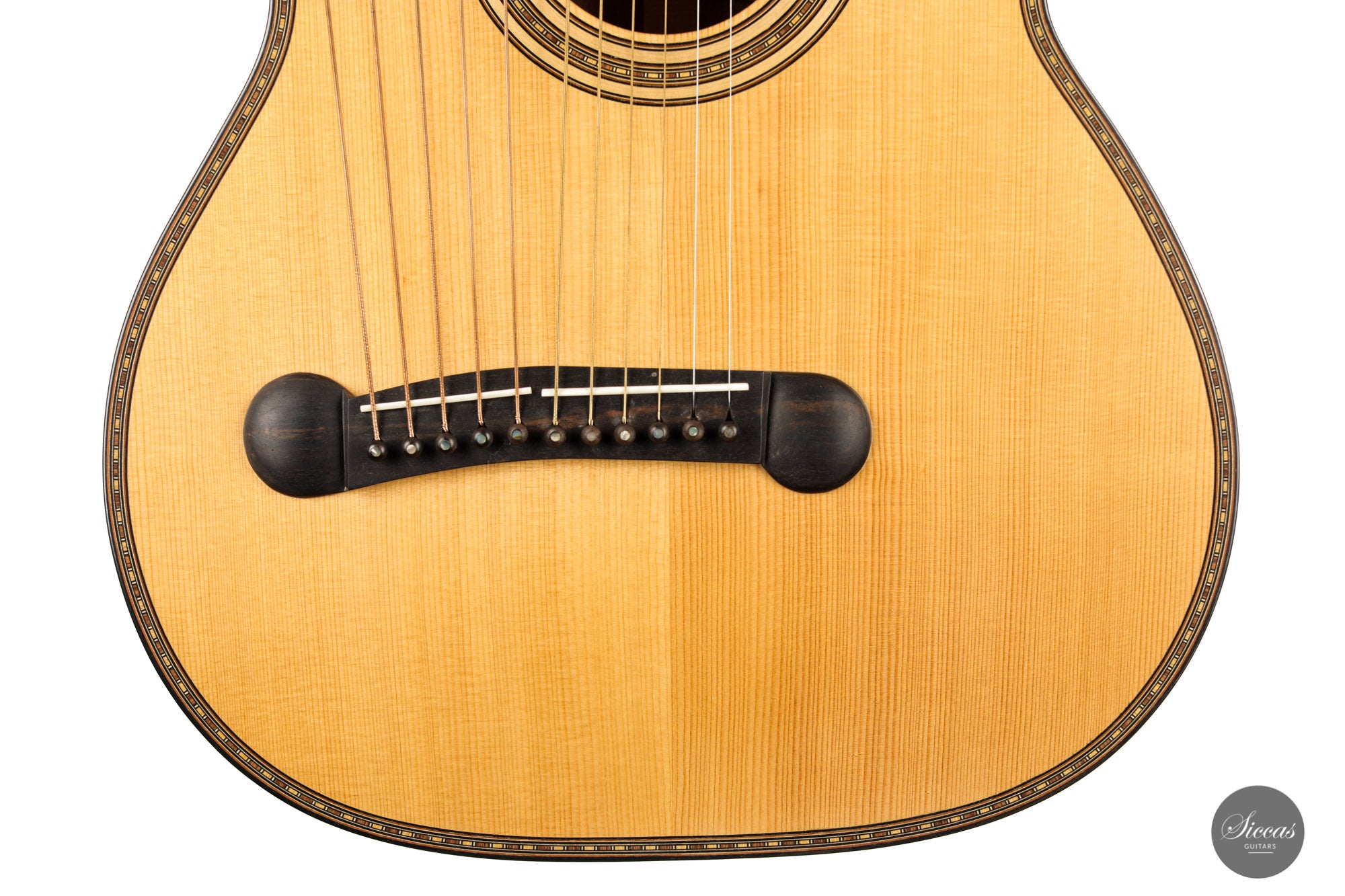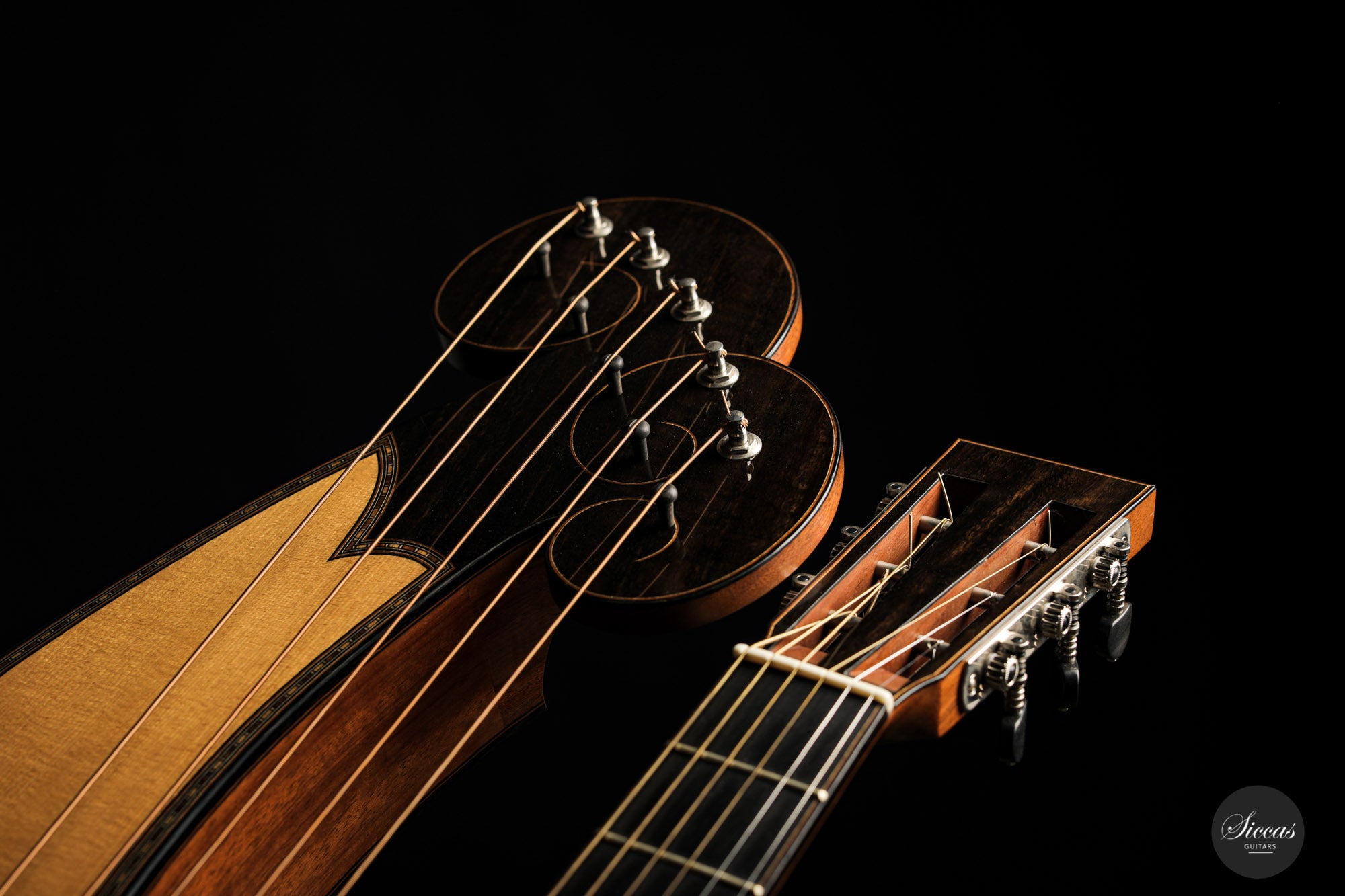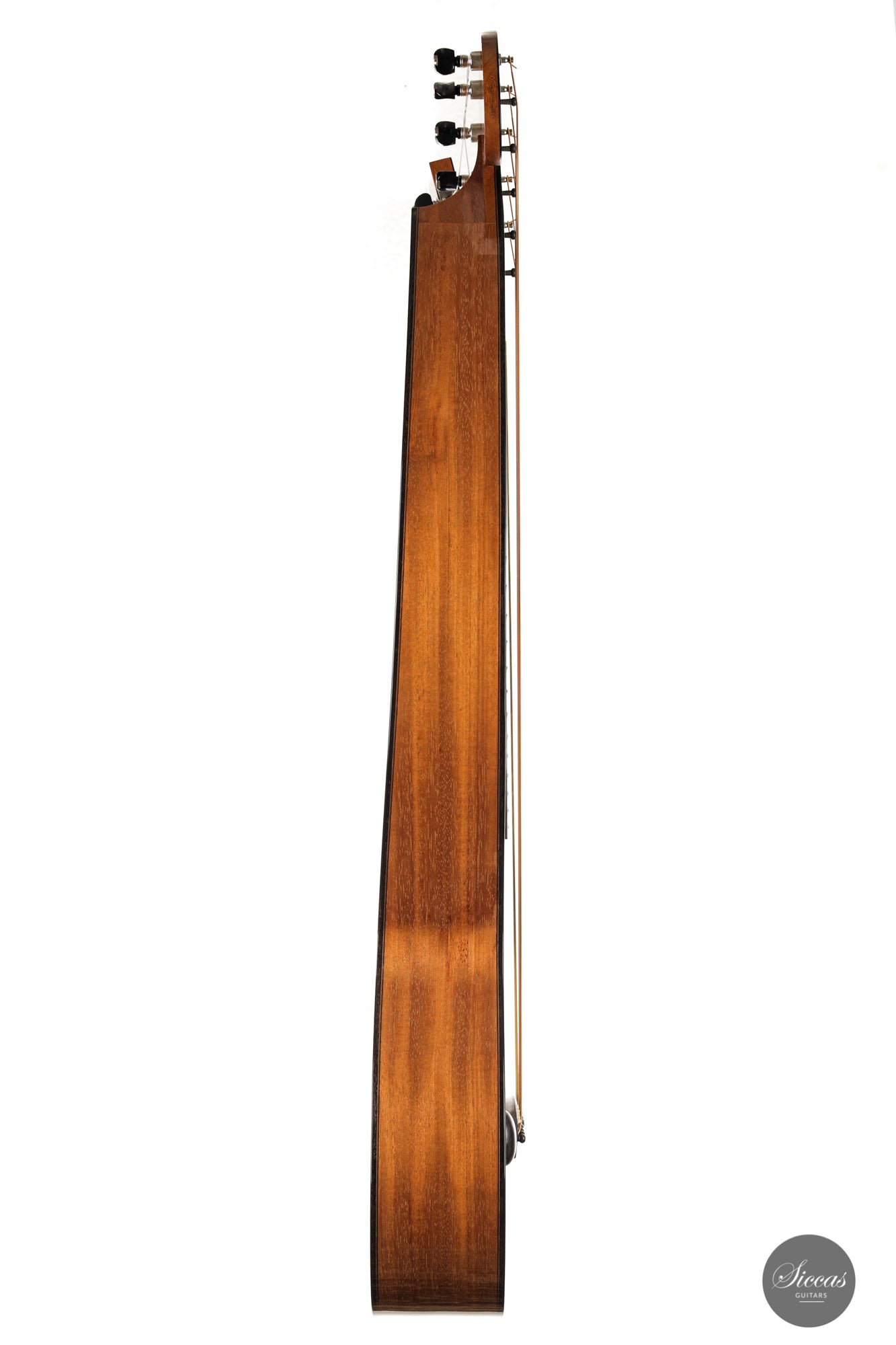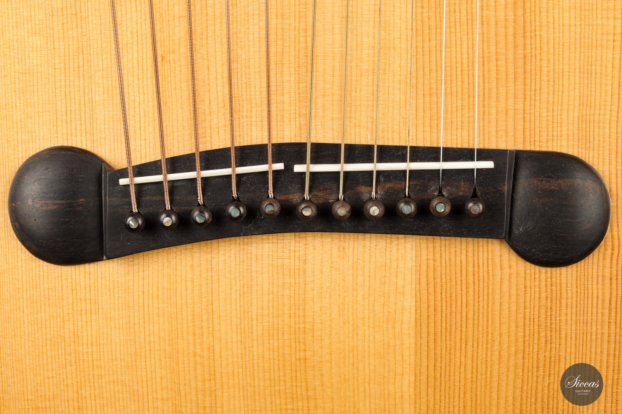 The Larson brothers, Carl Johann Ferdinant Larson, born 1867 (l.) and Peter August Larson (r.), born 1873, emigrated from Sweden to America, working first in a drum factory in Ravenswood, Illinois. After a heavy fire destroyed the factory in 1893, the two brothers had to look for a new job and ended up at Maurer & Co., who mainly made guitars and mandolins, and where they were not only employed as workers but soon became partners in the company. In 1901 the brothers were commissioned by W.J. Dyer to build more harp guitars in his name to meet the ever-increasing demand. At first, they copied the Knutsen design with the Larson-Dyer Type 1 (1901-1904), but after some time they changed the design and the Larson-Dyer Type 2 (1904-1920) was born, the most successful harp guitar model, which so many guitarists love and appreciate today. The Type 2 model, of which about 500-600 copies were made, was later divided into five styles.