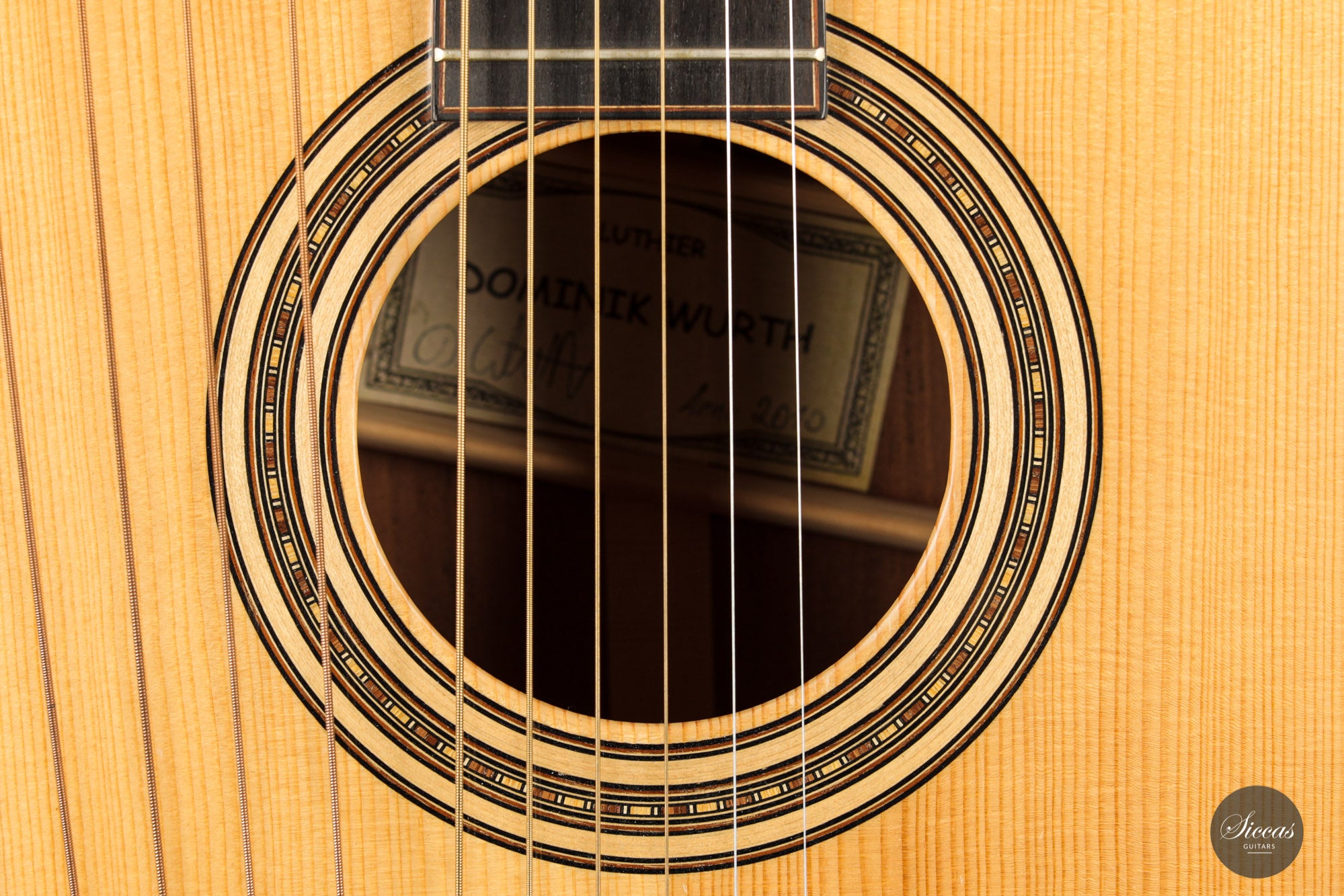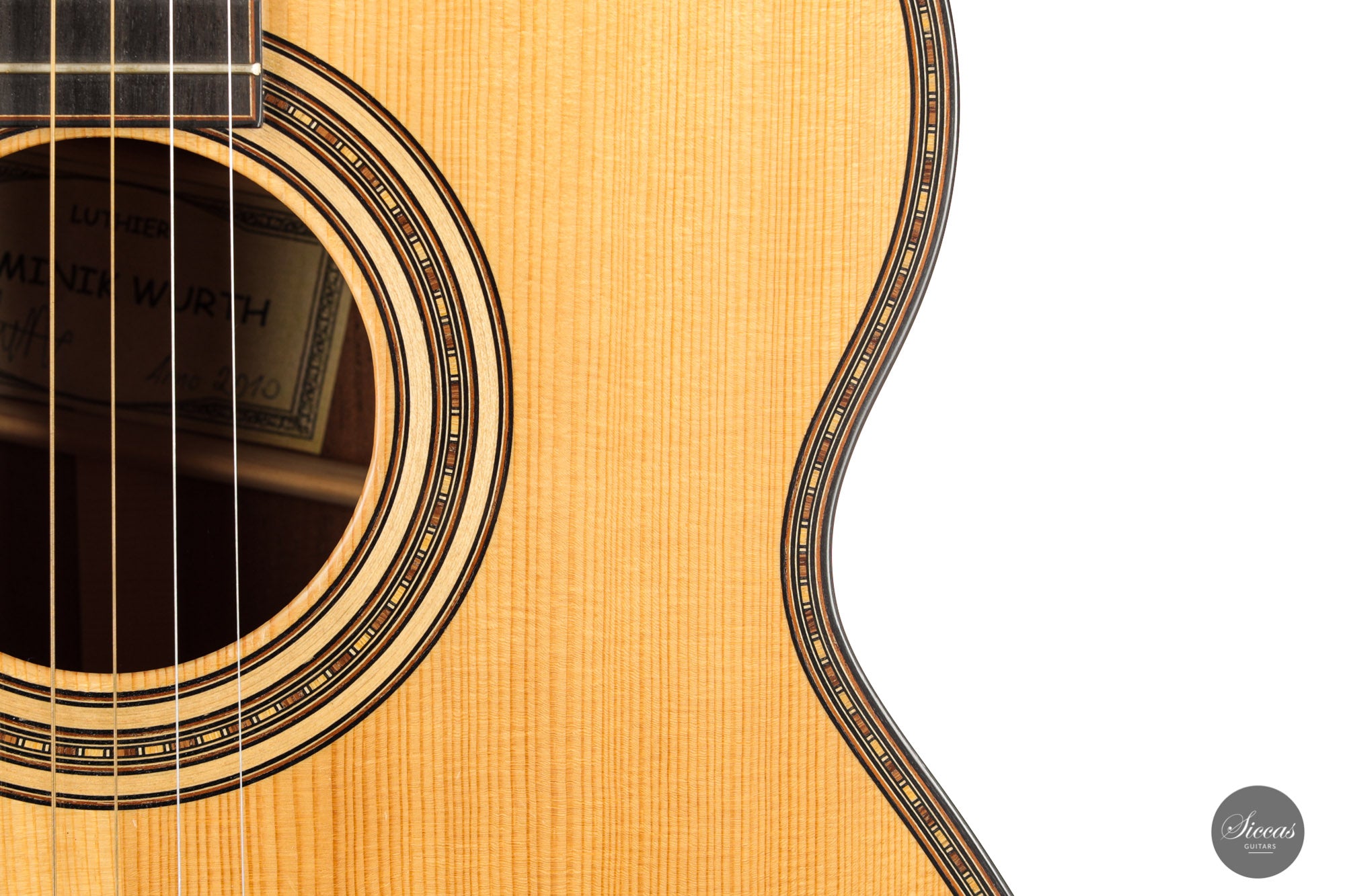 Dominik Wurth grew up in a small rural village located at the edge of the Black Forest in Germany. He discovered the guitar in his early twenties. After some time and technical progress he became dissatisfied with the sound of his beginner’s guitar and needed a better instrument. To get a deeper insight into the differences in quality and to be better prepared to buy the right instrument, he started reading about guitar building. After reading several books, the idea of not buying a guitar but building one grabbed him and after a very long and hard ordeal he finished his first guitar. In order to give his chosen path a direction, he matriculated at the world’s only university for string instruments in Zwickau and completed his studies in 2012. During this time he received the title “Master of the Plucked Instrument Maker’s Handicraft”.