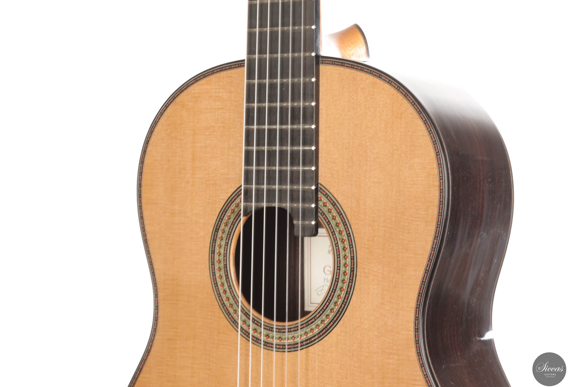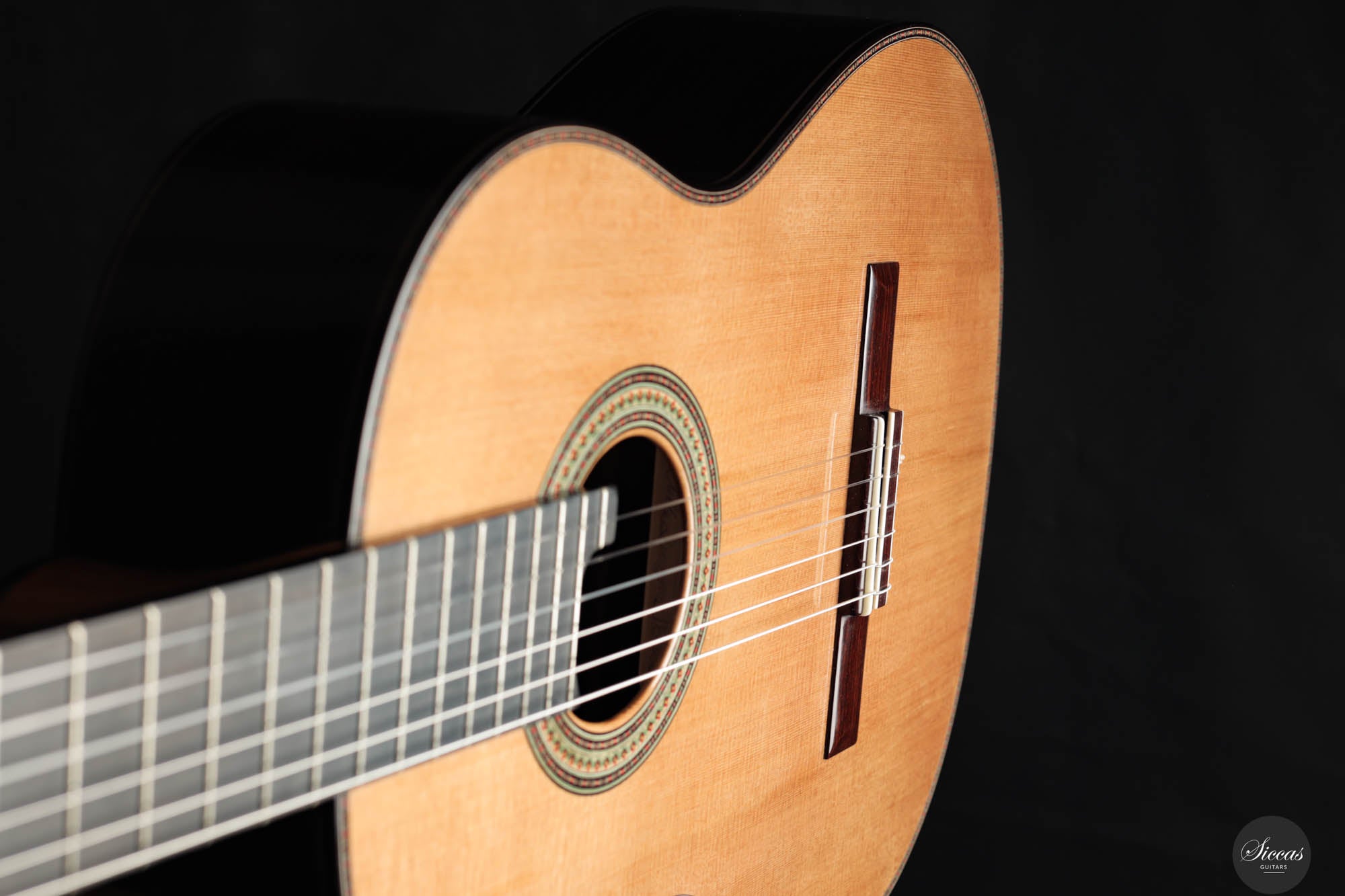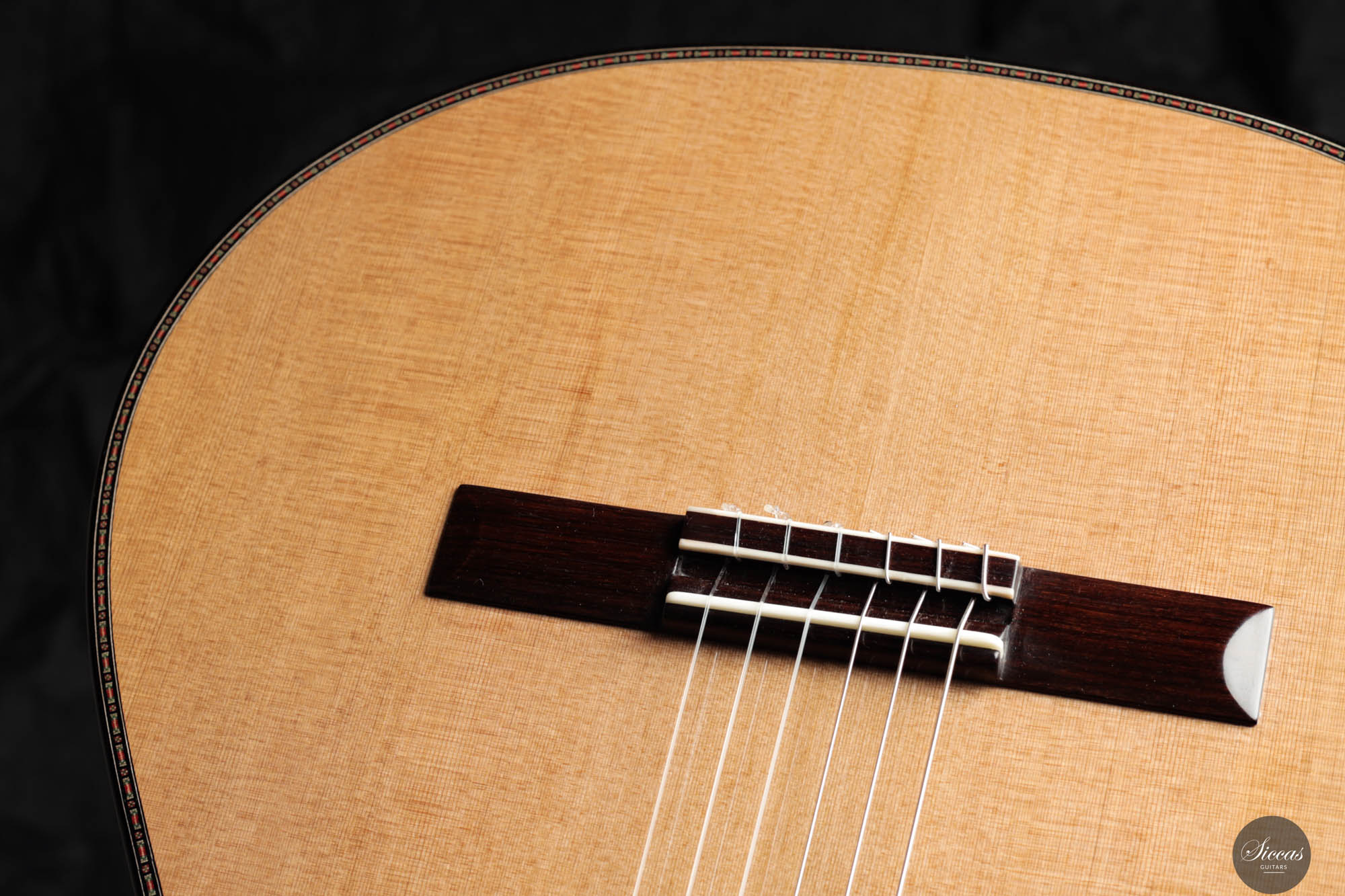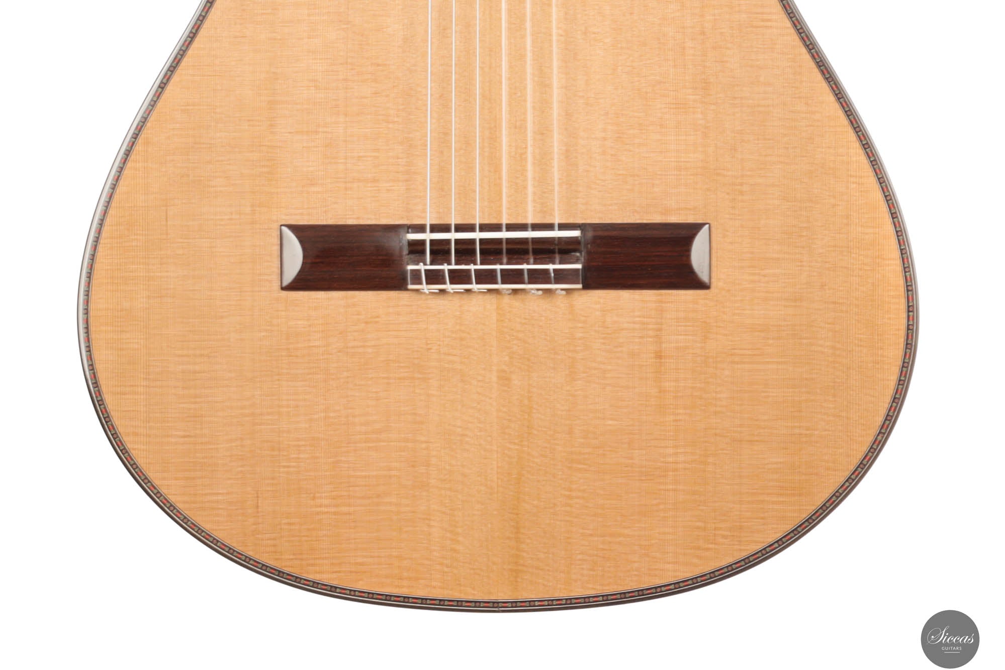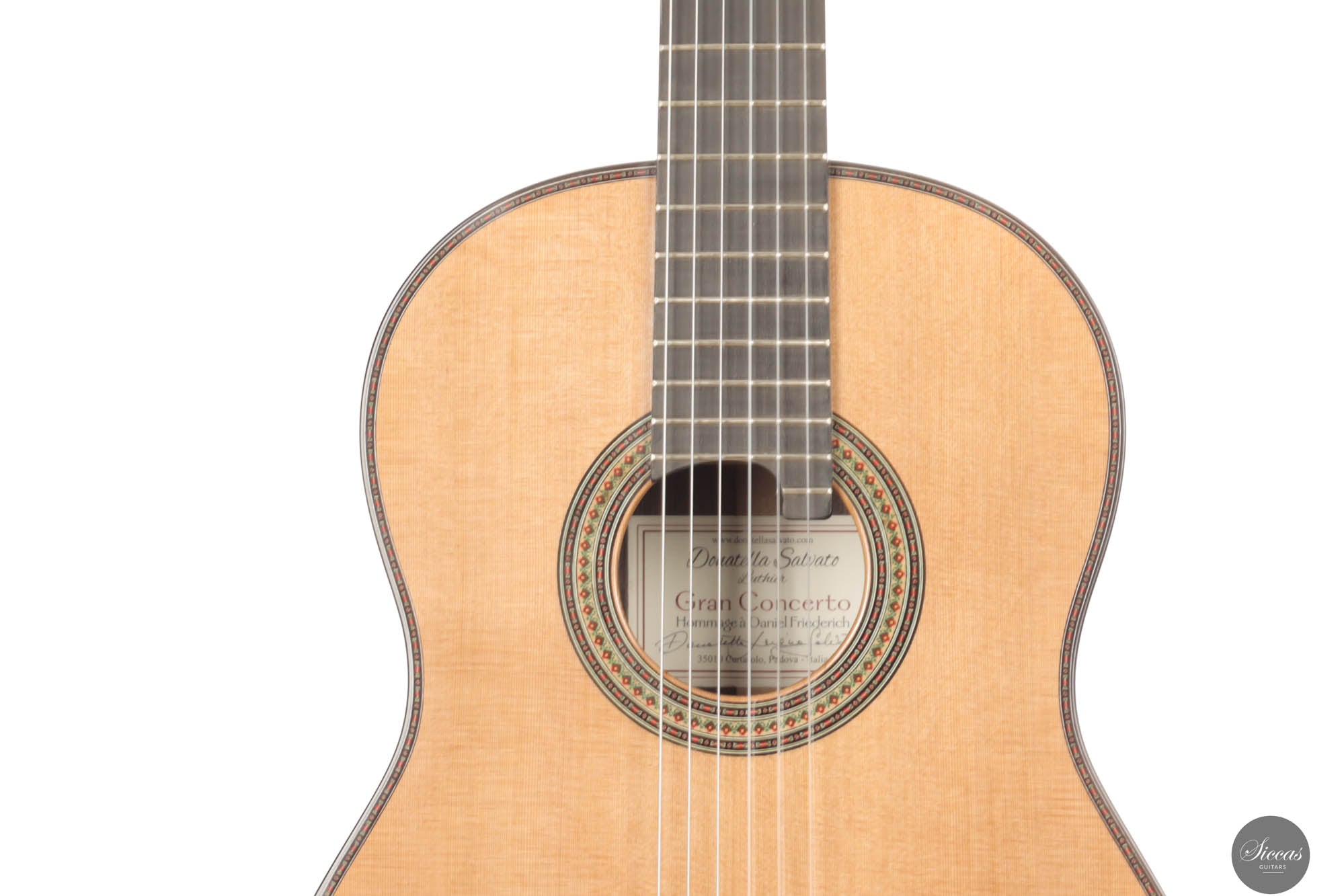 This stunning guitar by Donatella Salvato is an exceptional concert instrument at the highest level. As her Gran Concierto model, it draws inspiration from the legendary Daniel Friederich while showcasing Salvato’s unique artistry. Though lovingly named "Little Manuella," don’t be deceived—this instrument is a true concert powerhouse, capable of excelling in any playing situation and filling any concert hall with its rich, commanding sound. The 64 cm scale length makes it incredibly comfortable to play, not only for those with smaller hands but for any guitarist seeking effortless playability. The trebles are clear, rounded, and full of expression, while the instrument’s responsiveness allows for precise control and nuanced musicality. With its power, beauty, and versatility, this guitar meets and exceeds all the expectations of a world-class concert instrument.