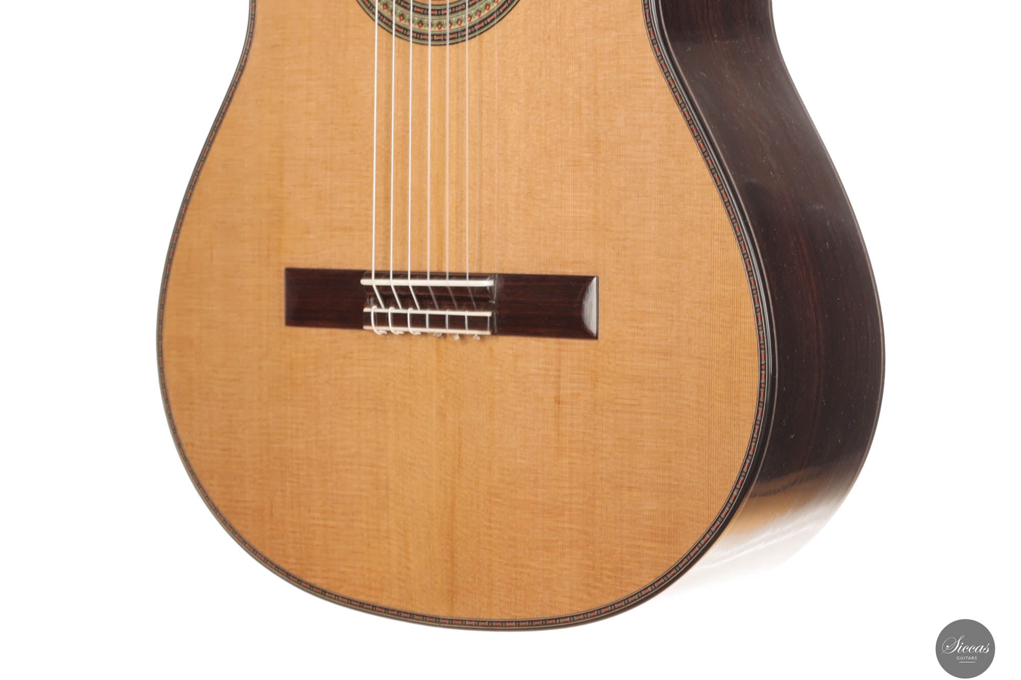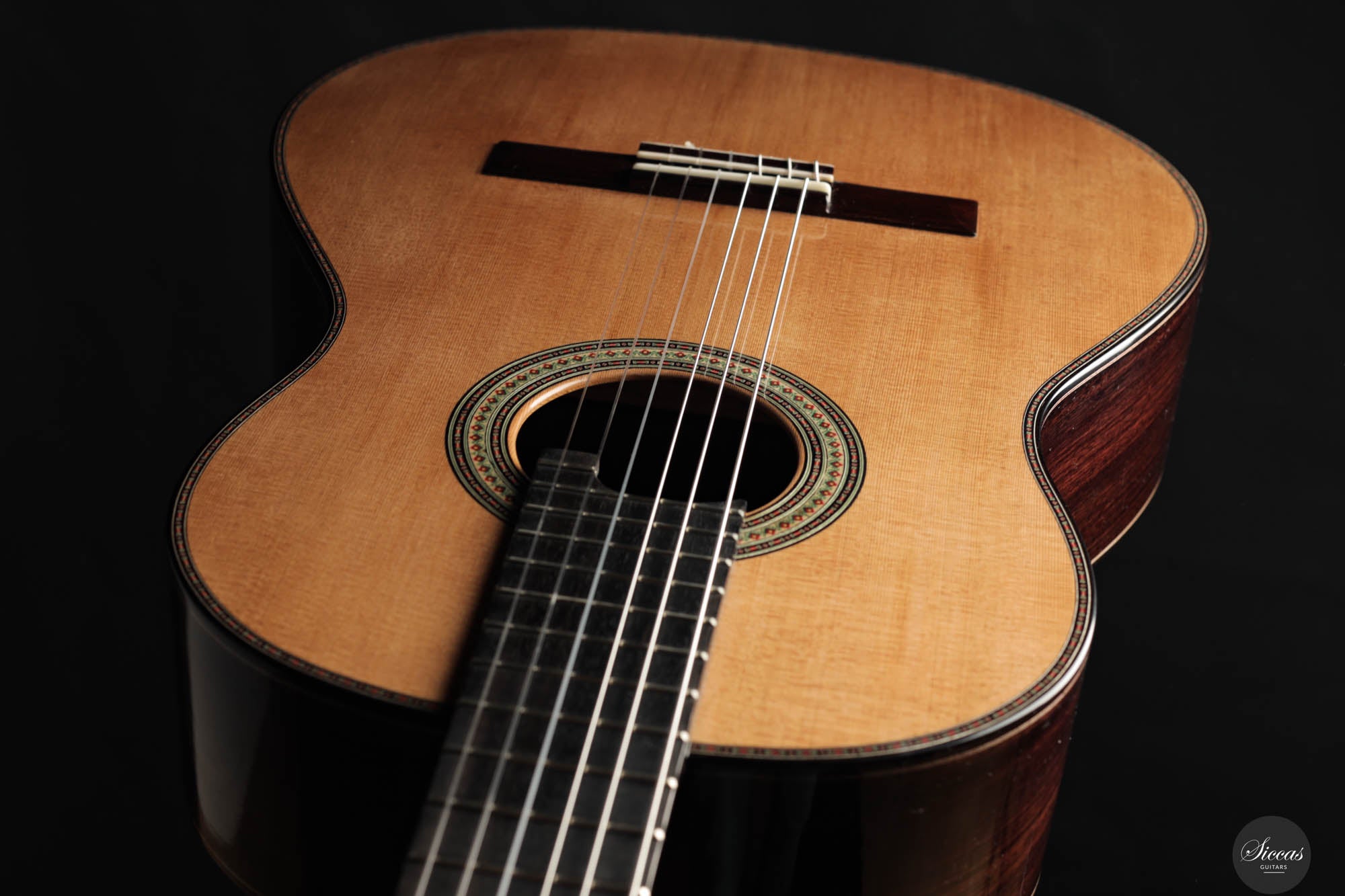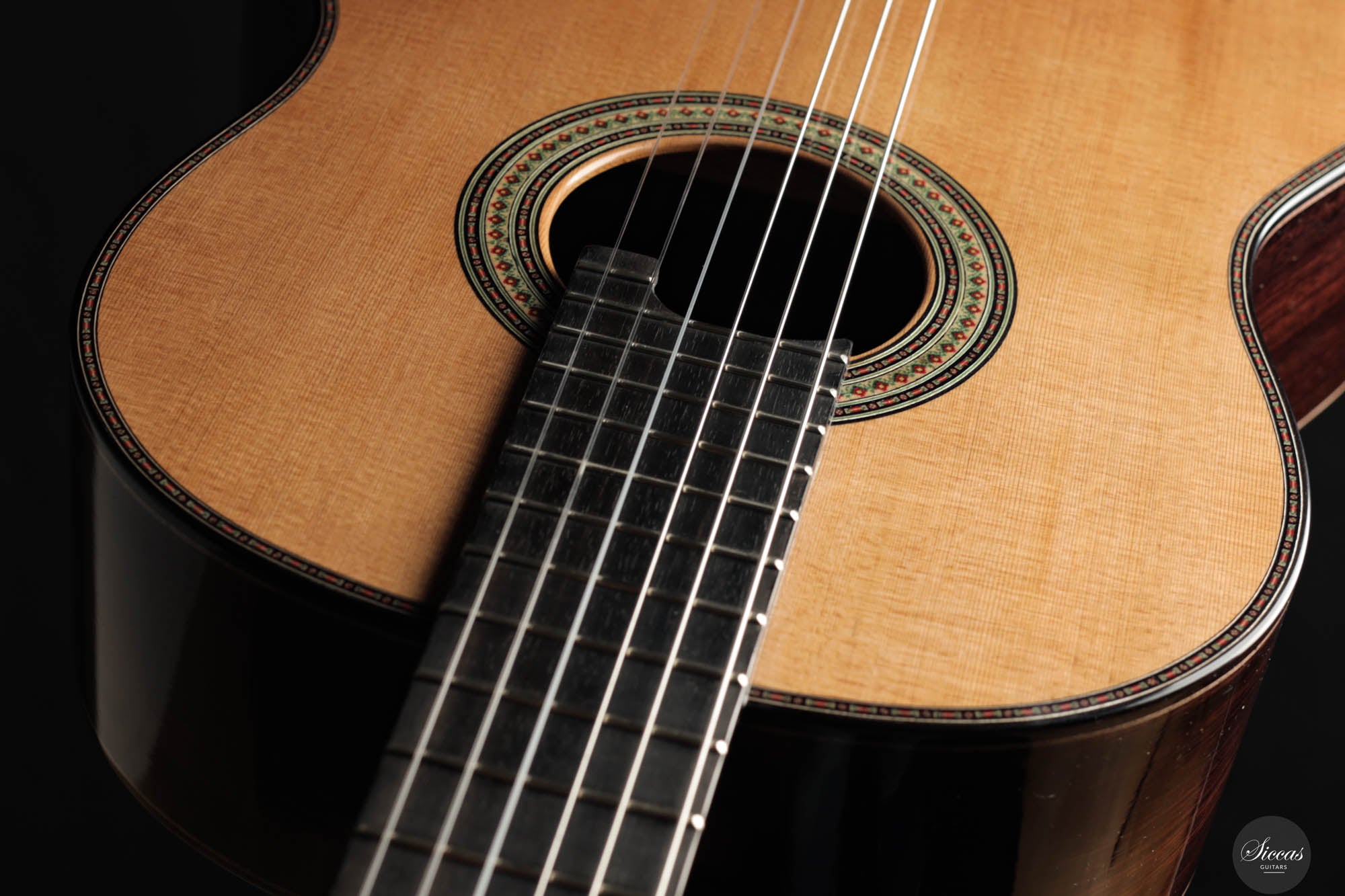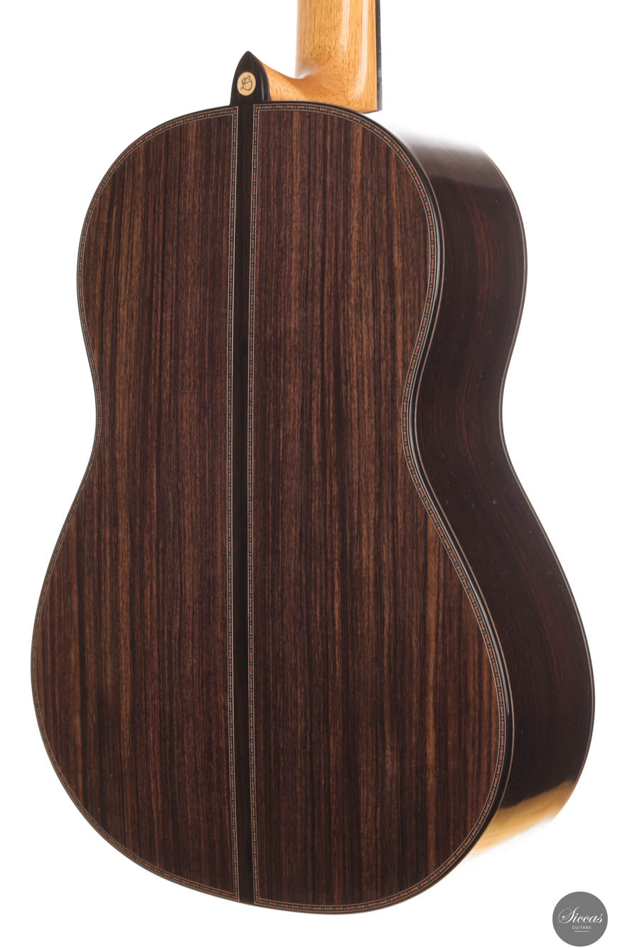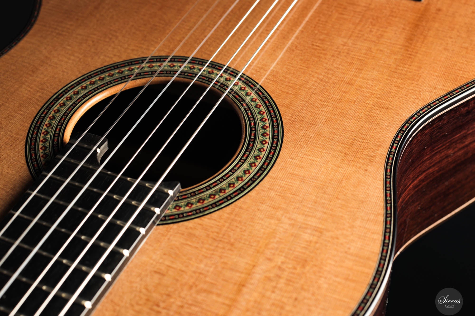 This stunning guitar by Donatella Salvato is an exceptional concert instrument at the highest level. As her Gran Concierto model, it draws inspiration from the legendary Daniel Friederich while showcasing Salvato’s unique artistry. Though lovingly named "Little Manuella," don’t be deceived—this instrument is a true concert powerhouse, capable of excelling in any playing situation and filling any concert hall with its rich, commanding sound. The 64 cm scale length makes it incredibly comfortable to play, not only for those with smaller hands but for any guitarist seeking effortless playability. The trebles are clear, rounded, and full of expression, while the instrument’s responsiveness allows for precise control and nuanced musicality. With its power, beauty, and versatility, this guitar meets and exceeds all the expectations of a world-class concert instrument.