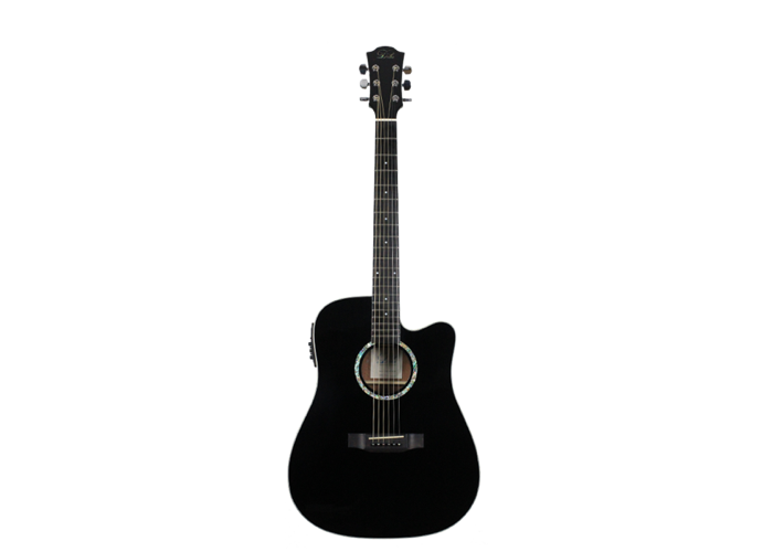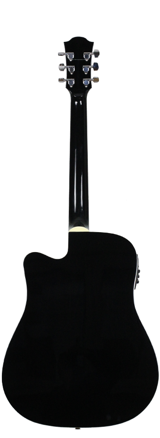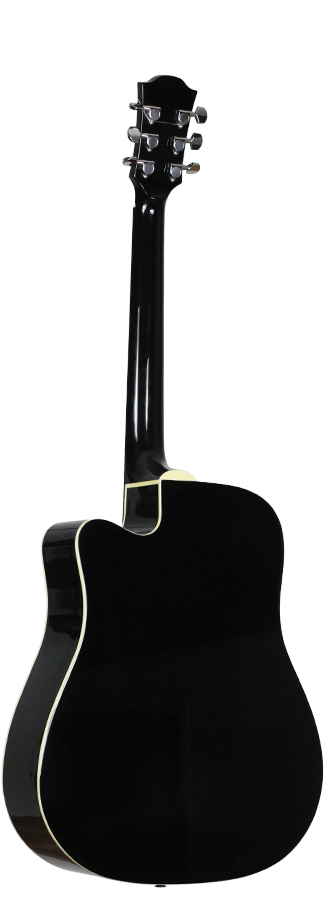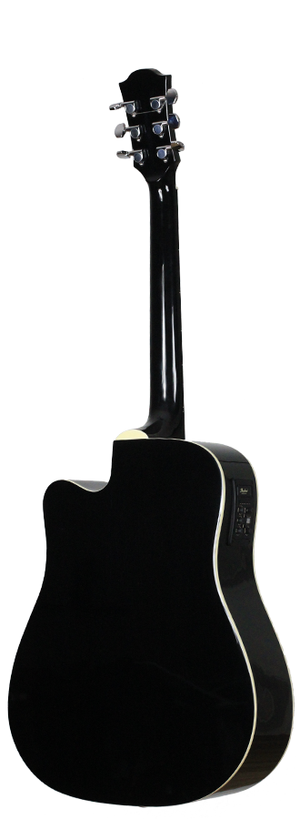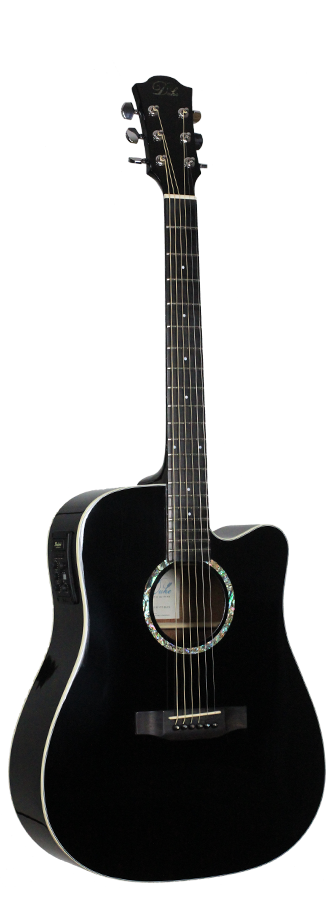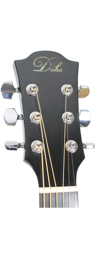 This Duke Dreadnought guitar has an exceptional quality. It has a very powerful and equilibrated sound. This guitar is perfect for beginners and also professional players. The Duke D-MC-cut guitar has a solid cedar top and back and sides that are made of laminated mahogany. The guitars are refined with a high gloss black finish. Included is a gig-bag by Duke.