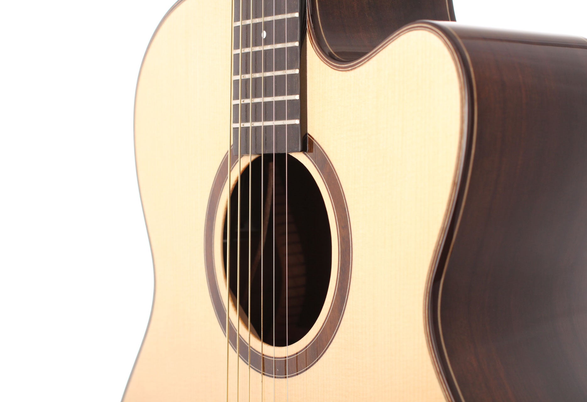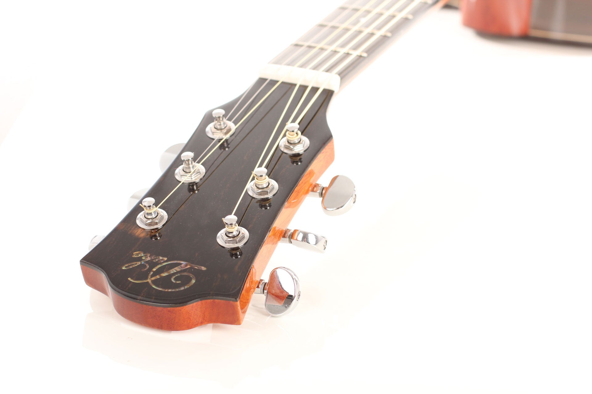 This Duke Grand Auditorium PF Cut Wide guitar has an exceptional quality. It has a very powerful and equilibrated sound. This guitar is perfect for beginners and also professional players. The Duke Grand Auditorium Satin has as solid spruce top and back and sides that are made of Indian rosewood. The neck is made of cedro. The guitar is refined with a high gloss finish. Included is a gig-bag by Duke.