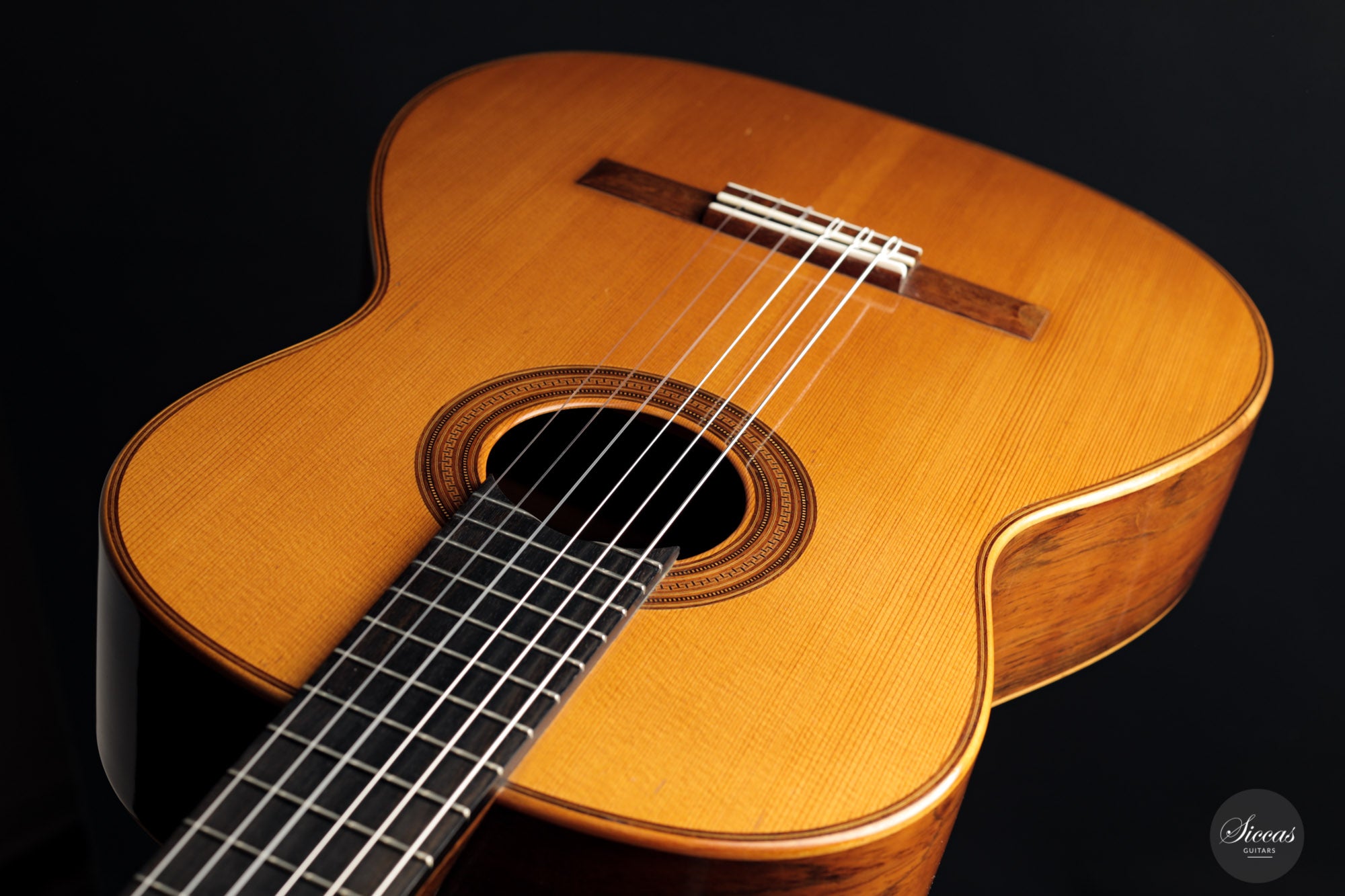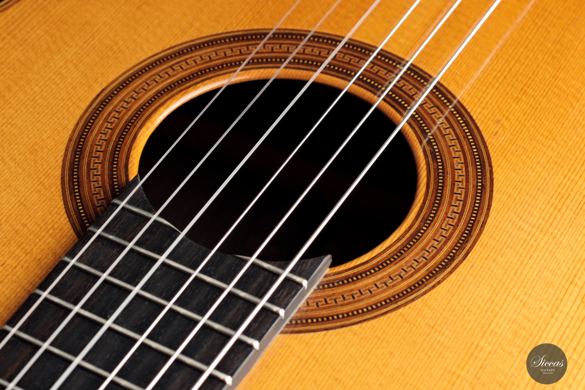 Its sound is both German rooted and very Spanish as well. It develops an elegant and clear voice, rich in sympathetic resonances and with a warmth typical of the Madrilenian school of guitar making. The inherent power of the instrument makes it very lively and exciting to play.