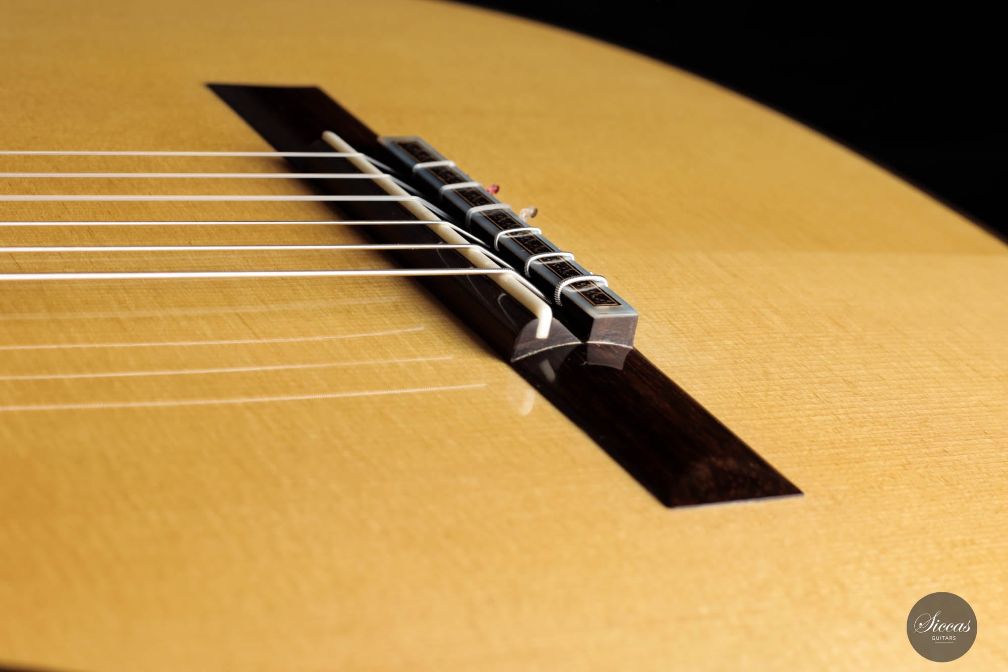 Die klassische Gitarre mit ihren weichen Nylonsaiten und ihrem charakteristischen Timbre ist zum Symbol der Kammermusik, der spanischen Tradition und des Konzertrepertoires geworden. Ihre moderne Form prägte Antonio de Torres im 19. Jahrhundert, indem er den Standard für Korpus, Fächerbeleistung und die 65-Zentimeter-Mensur setzte, die bis heute verwendet werden. Instrumente dieser Kategorie eröffnen eine reiche Palette von den feinen romantischen Miniaturen Tárregas bis zu den majestätischen Konzerten Rodrigos. Hier finden Sie Gitarren, die historische Kontinuität bewahren und zugleich zu neuen Interpretationen anregen.