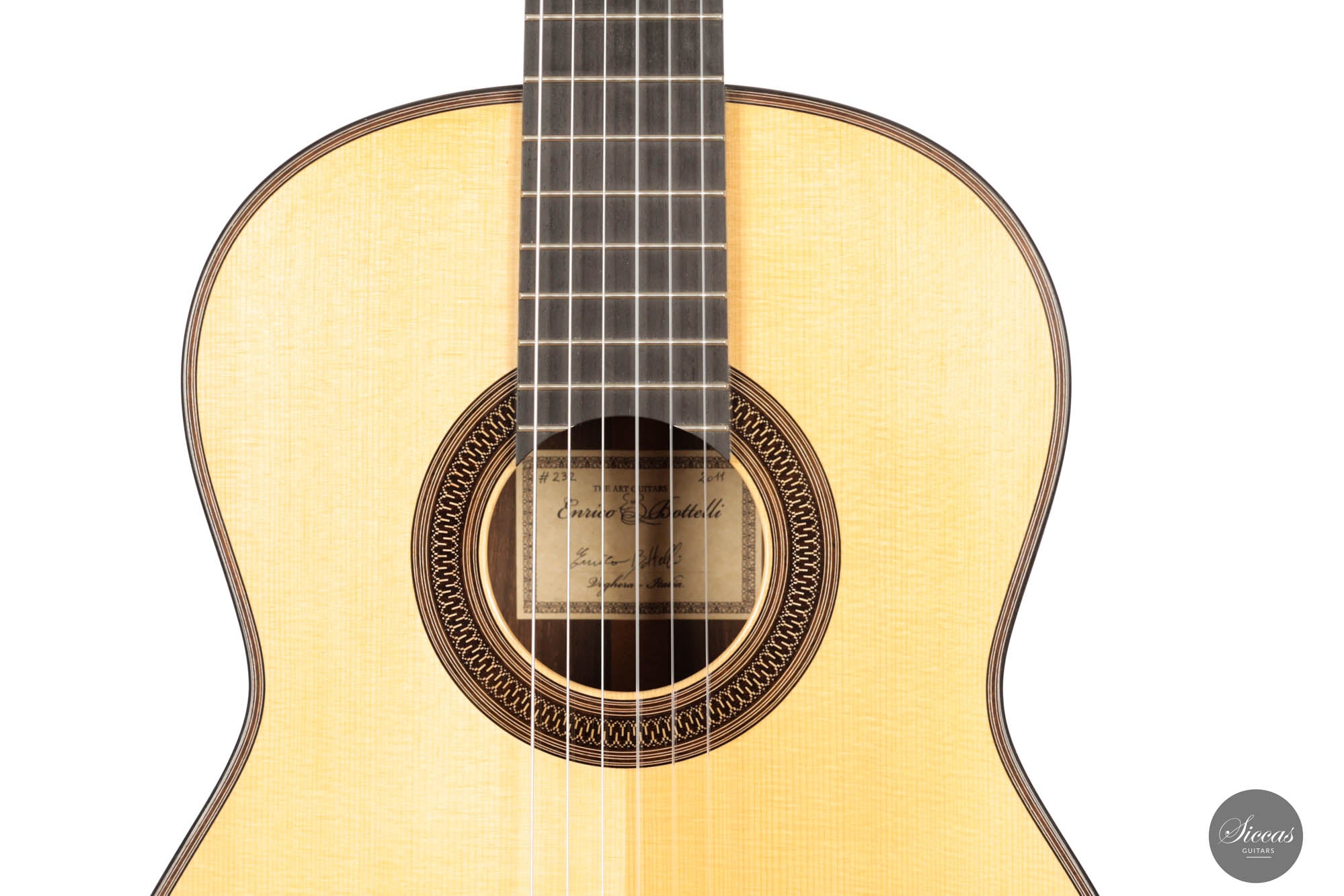 Wir laden anspruchsvolle Musiker und Sammler herzlich ein, diese außergewöhnliche Enrico Bottelli Konzertmodell Gitarre ihrer Sammlung hinzuzufügen. Wenn Sie von der Anziehungskraft eines akribisch gefertigten Instruments, das sowohl Schönheit als auch Präzision ausstrahlt, fasziniert sind, ist diese Gitarre ein Meisterwerk, das Ihre Aufmerksamkeit verdient.