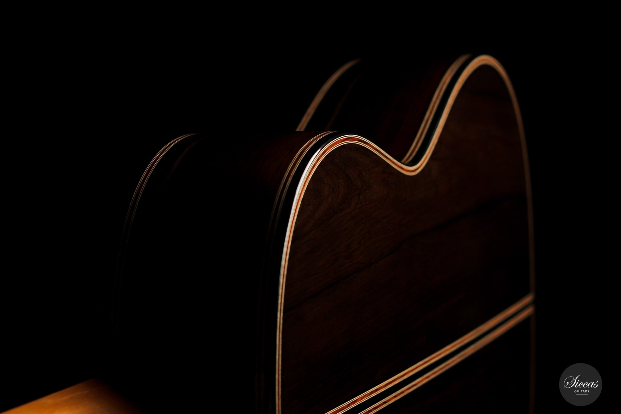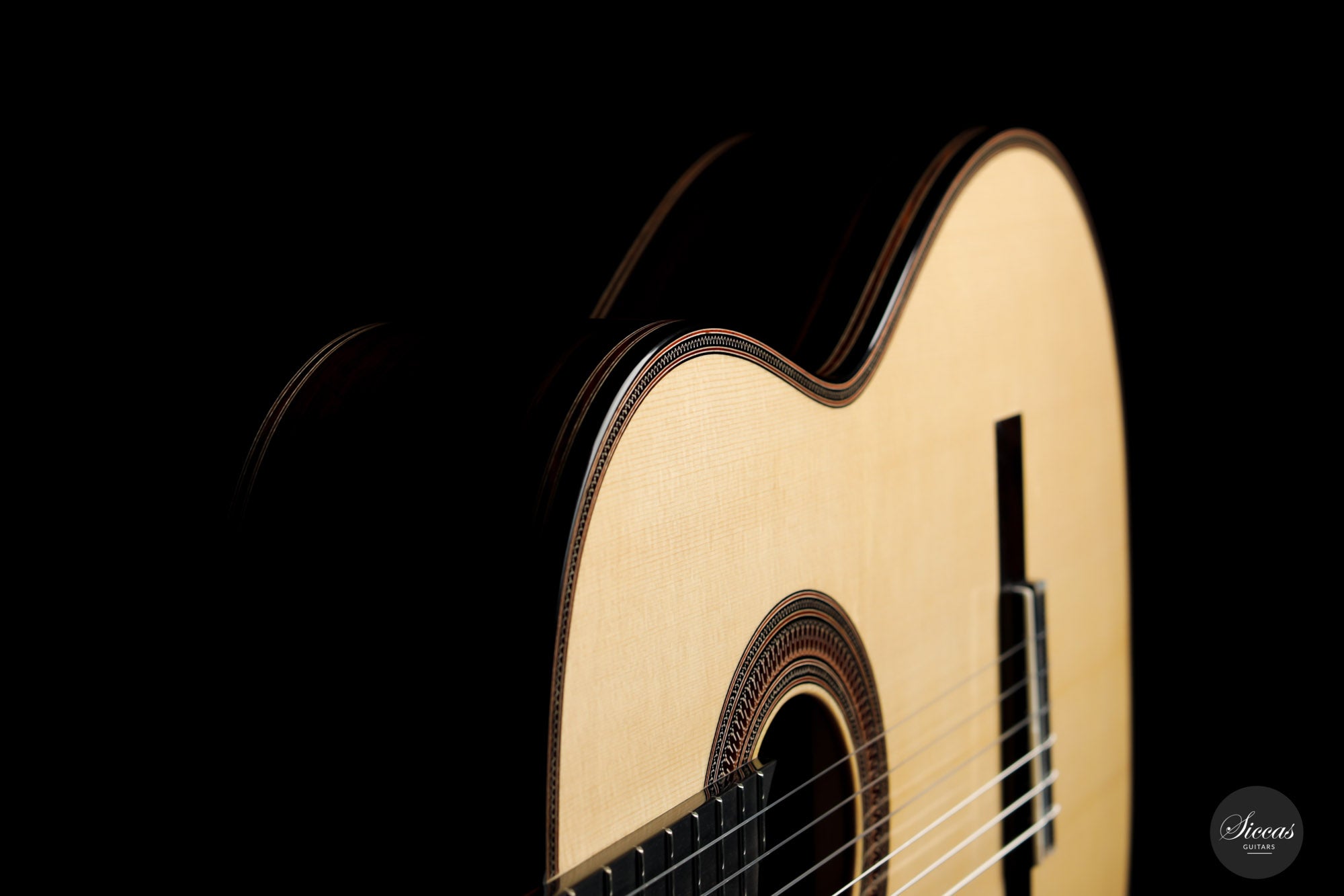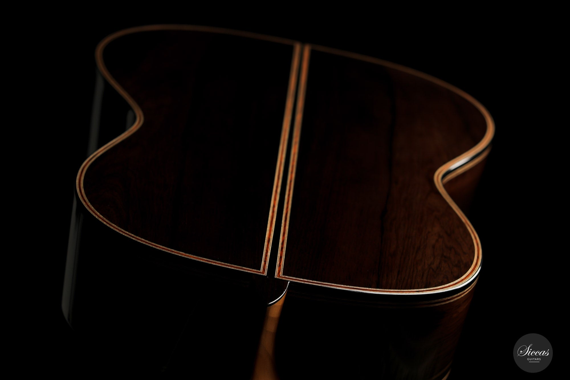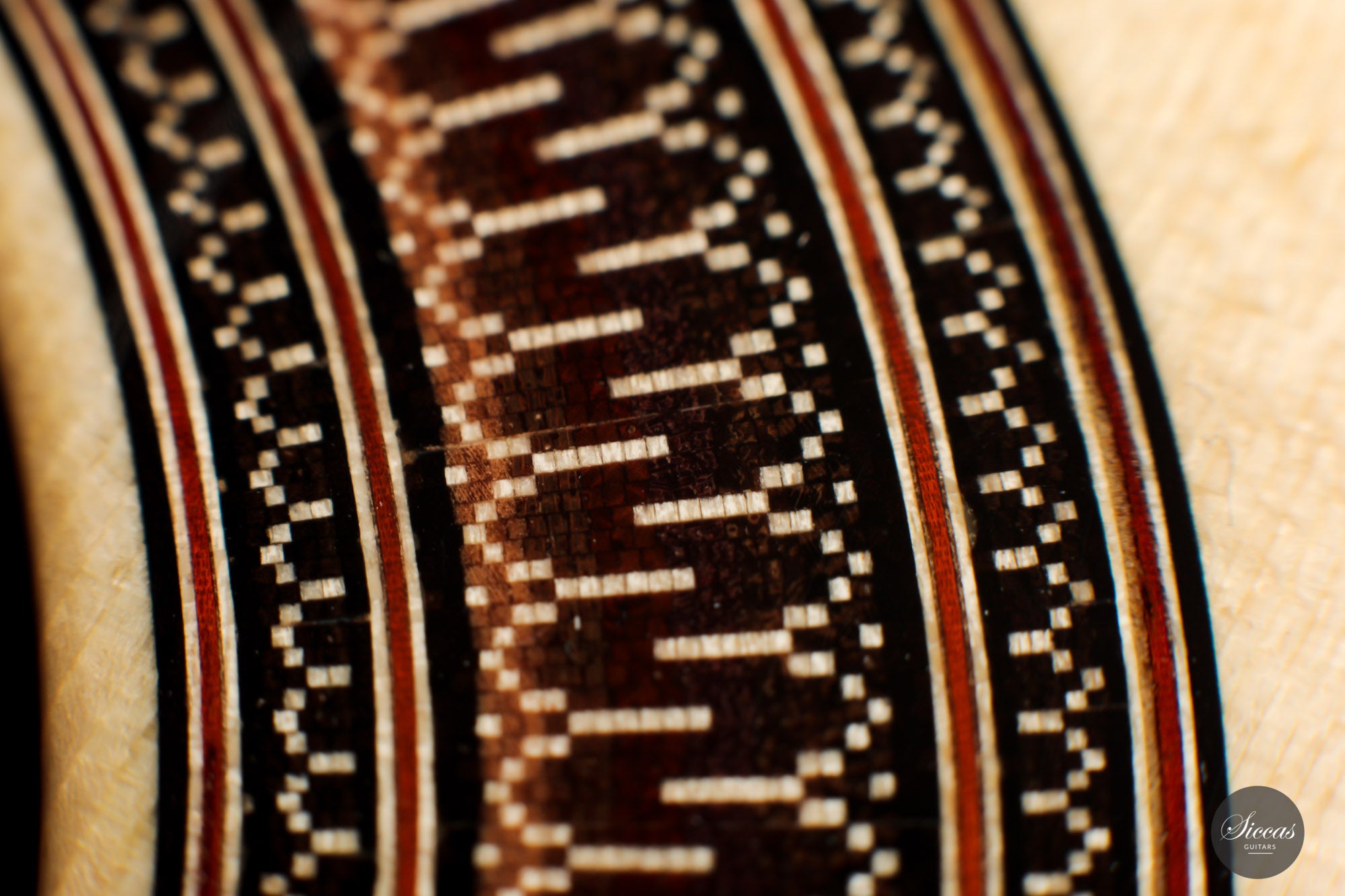 This beautiful 2019 Special model is one of Enrico Bottelli's most elaborate models. The inlay work is fine and elegant, and the choice of woods is simply gorgeous. The back and sides are made of extremely rare, old Brazilian rosewood (CITES certified), which presents splendid colors. The soundboard is made of premium Italian spruce, which is both lightweight and responsive. A particularly eye-catching detail is the flamed mahogany neck, which adds a beautiful touch to the entire instrument. The Rodgers tuners are also of the highest quality and perfectly complement this unique guitar.