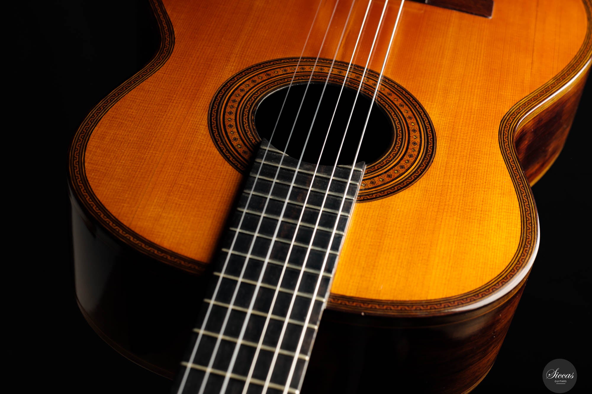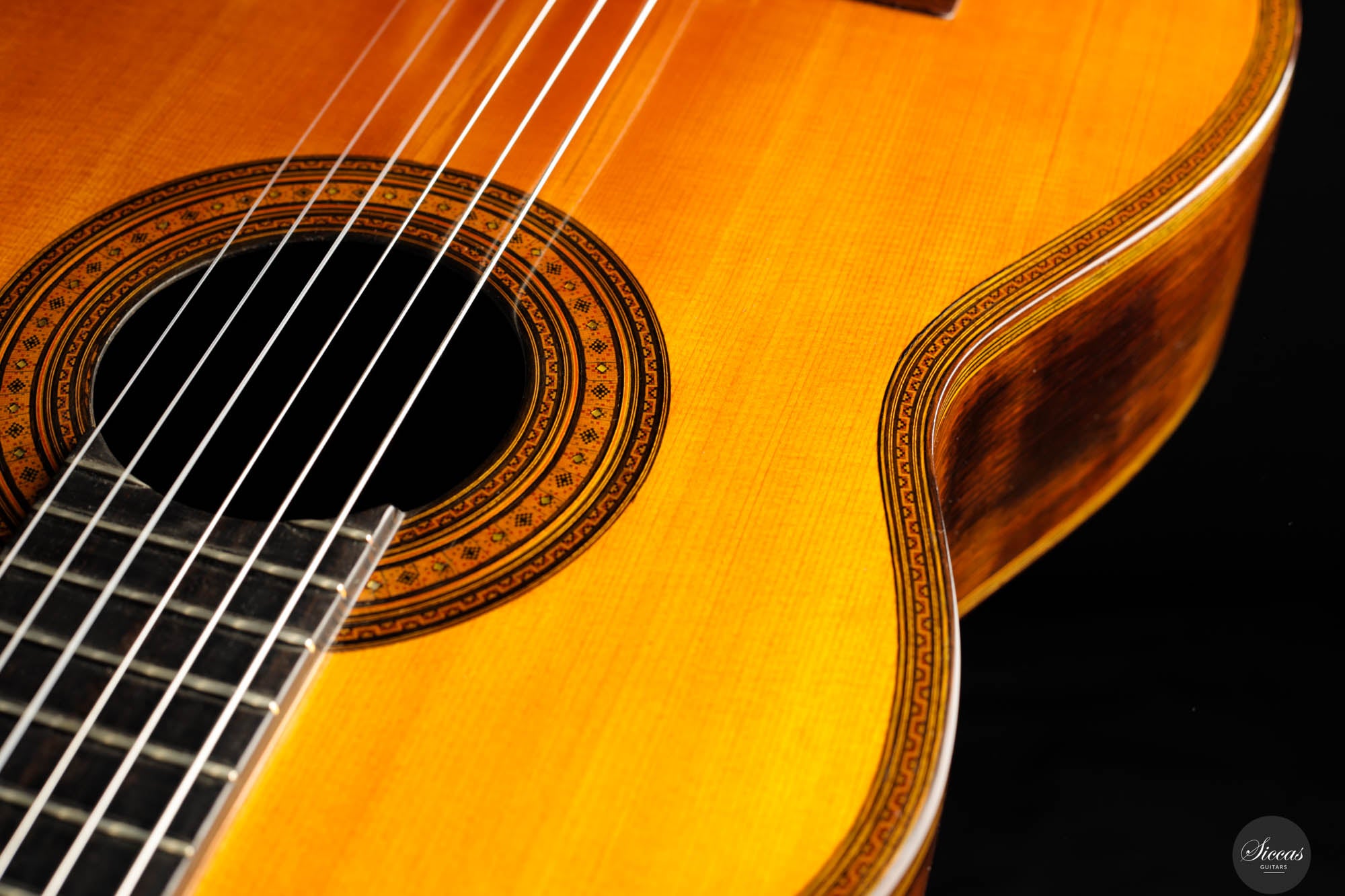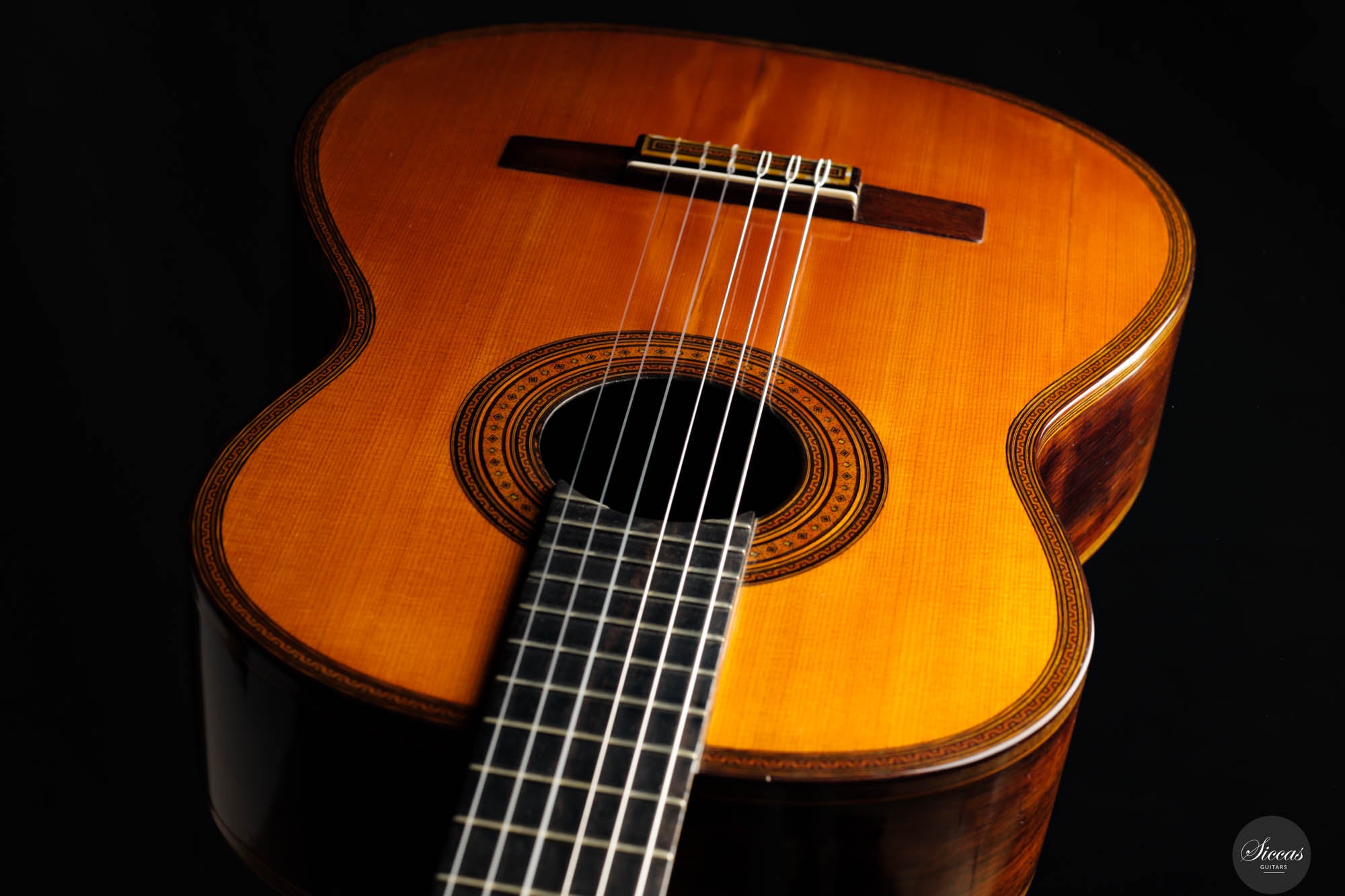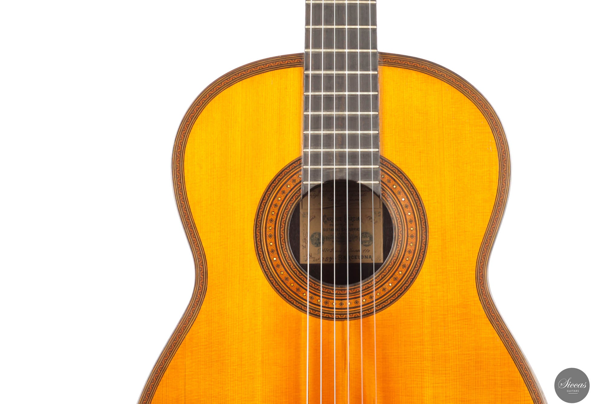 This guitar, numbered 257, was built in 1922 and is one the last guitars built before his passing. It was especially made for Antonio Sinópoli, a distinguished Argentine guitarist, and composer, who was also part of the active guitar scene between Spain and Argentina, having played with Domingo Part and also collaborated with Francisco Simplicio to create the “Sinópoli model”.