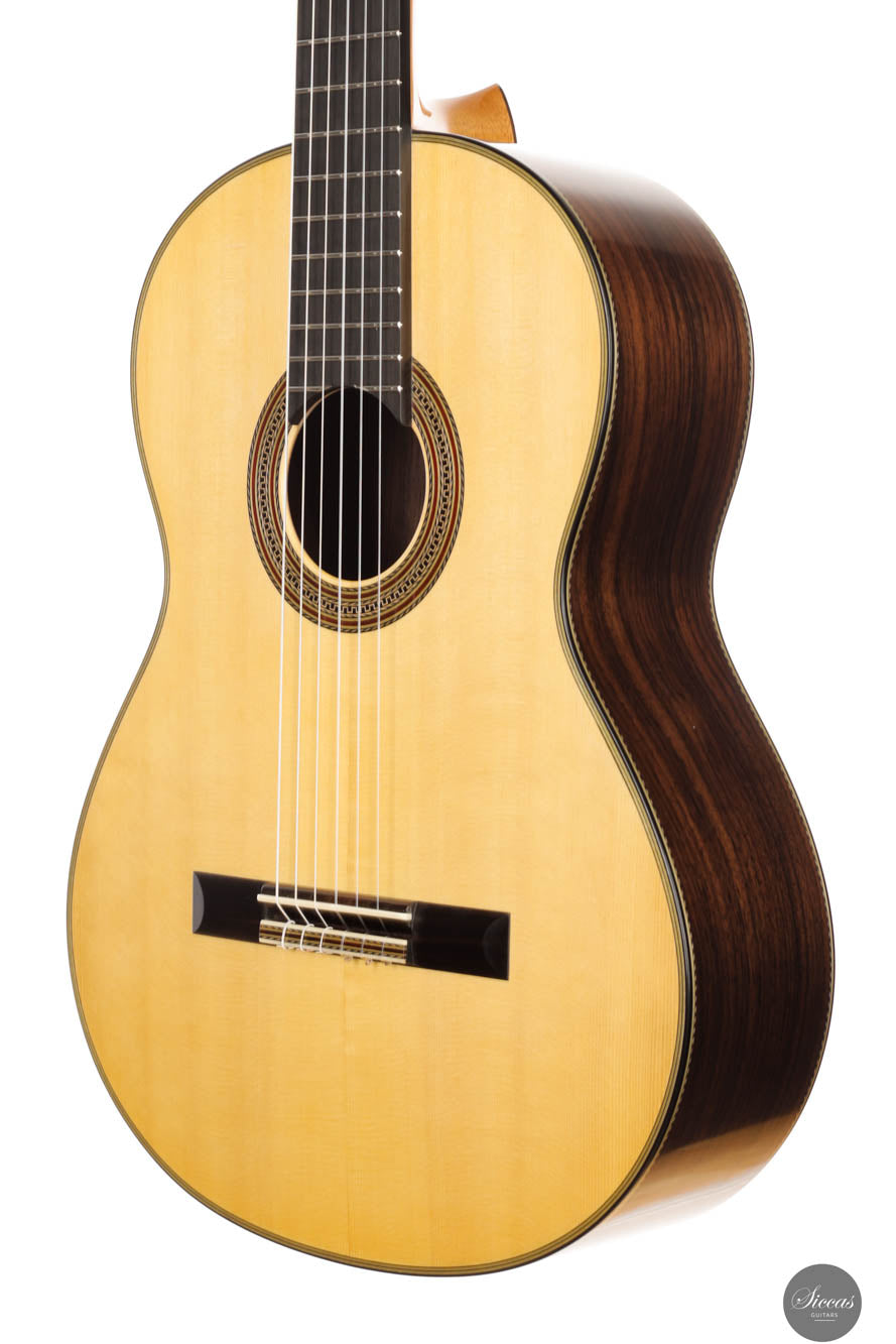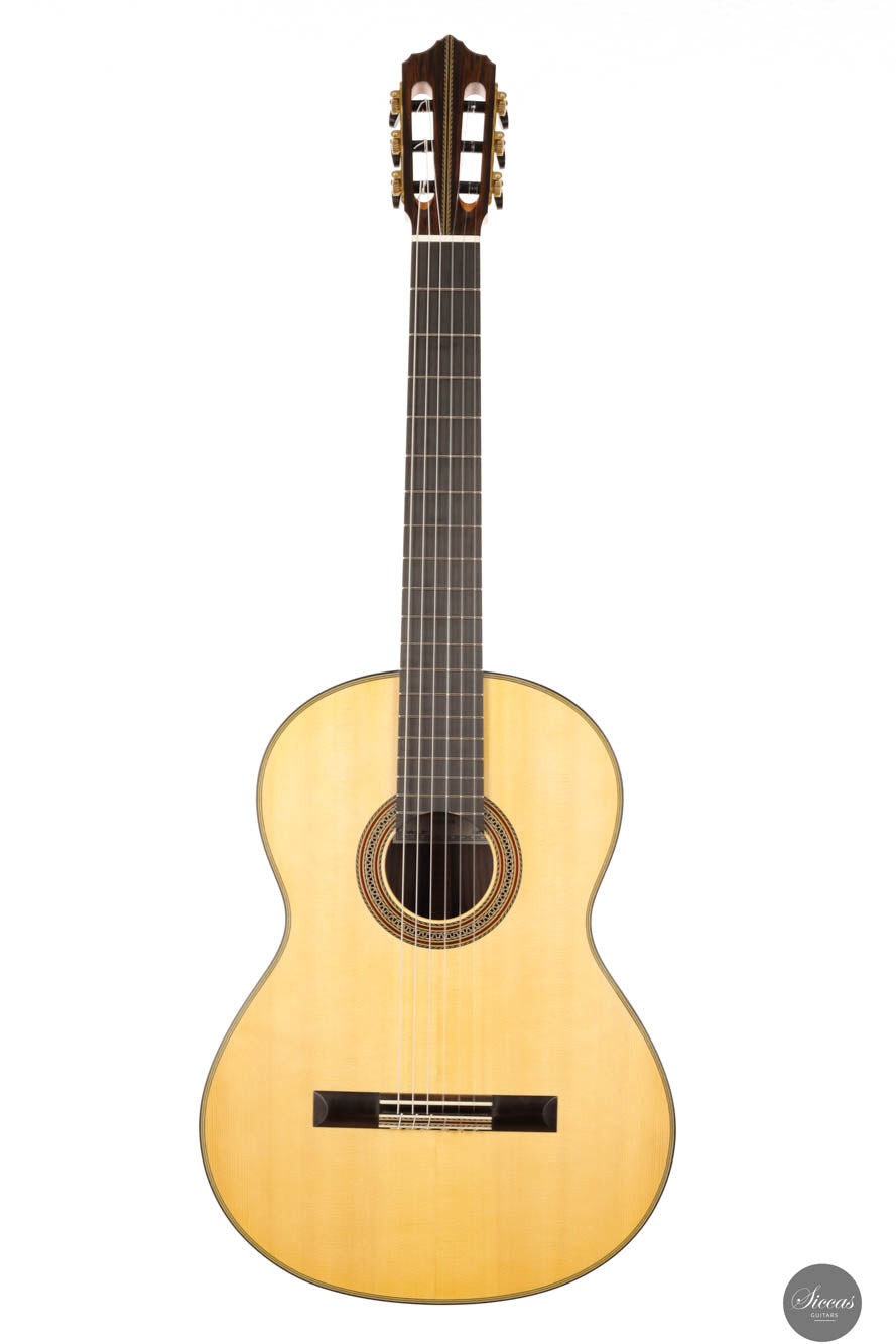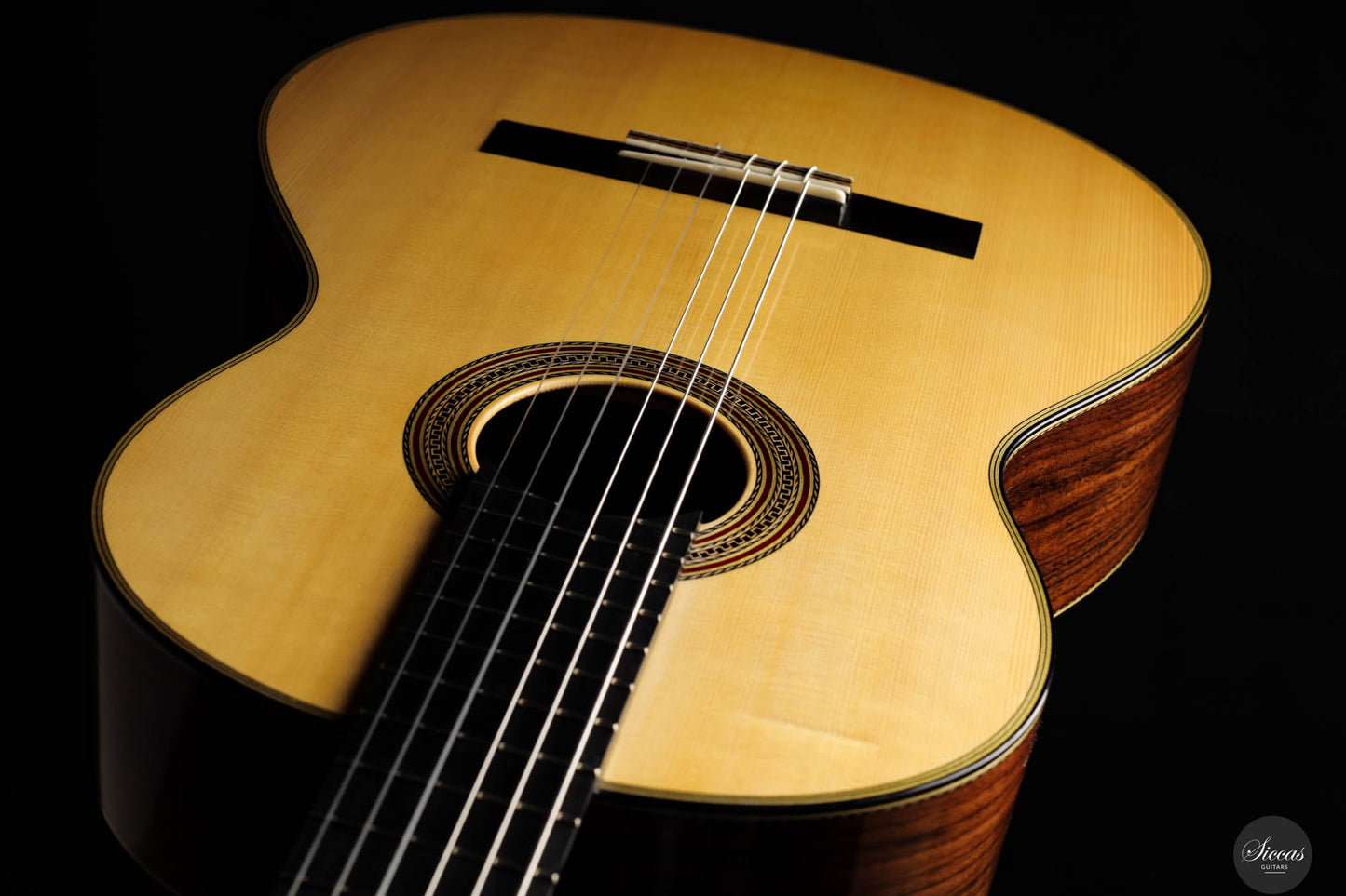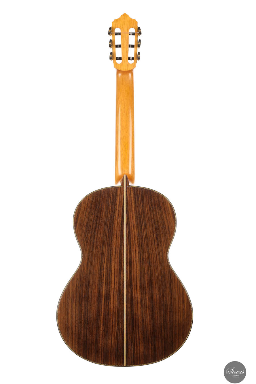 Diese brandneue Konzertgitarre von Erez Perelman vereint traditionelle Handwerkskunst mit modernem Feingefühl und ist auf die Bedürfnisse zeitgenössischer Gitarristen zugeschnitten. Erez' akribische Liebe zum Detail zeigt sich in den kunstvollen dekorativen Elementen, die das Instrument zieren und sein außergewöhnliches Talent im Holzhandwerk demonstrieren. Tief gestimmt erzeugt die Gitarre einen warmen, runden Ton, mit einer Bass-E-Saite, die mit dichtem, komplexem Sustain resoniert, während die Diskant-E-Saite eine elegante und markante Stimme bietet. Das Spielen dieser Gitarre ist ein fesselndes Erlebnis, da sie reichlich gegen die linke Hand und die Brust vibriert und Perelmans Hingabe zu ästhetischer und akustischer Exzellenz widerspiegelt.