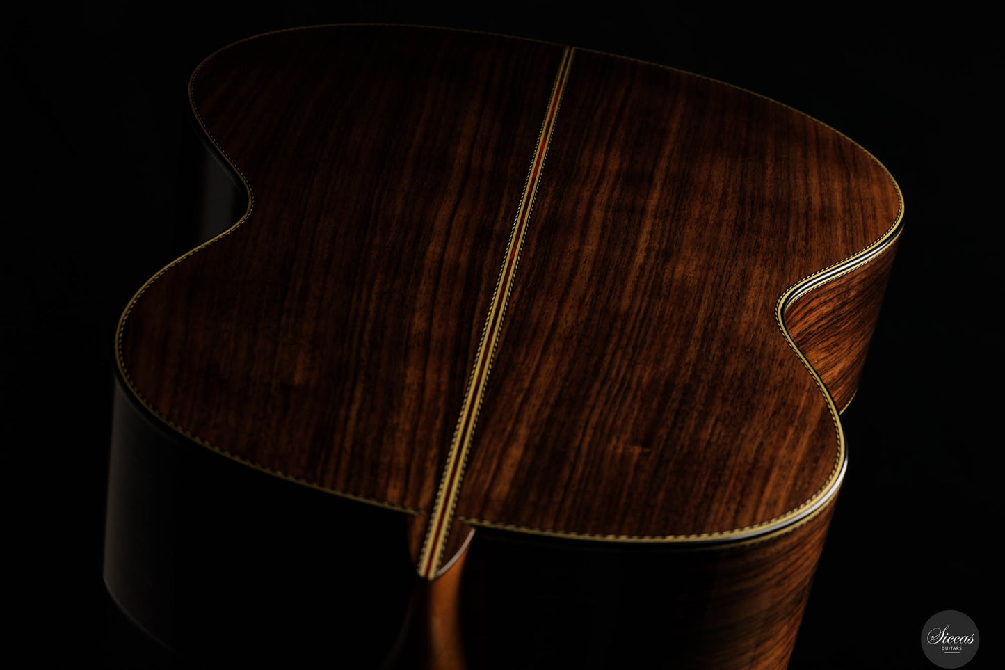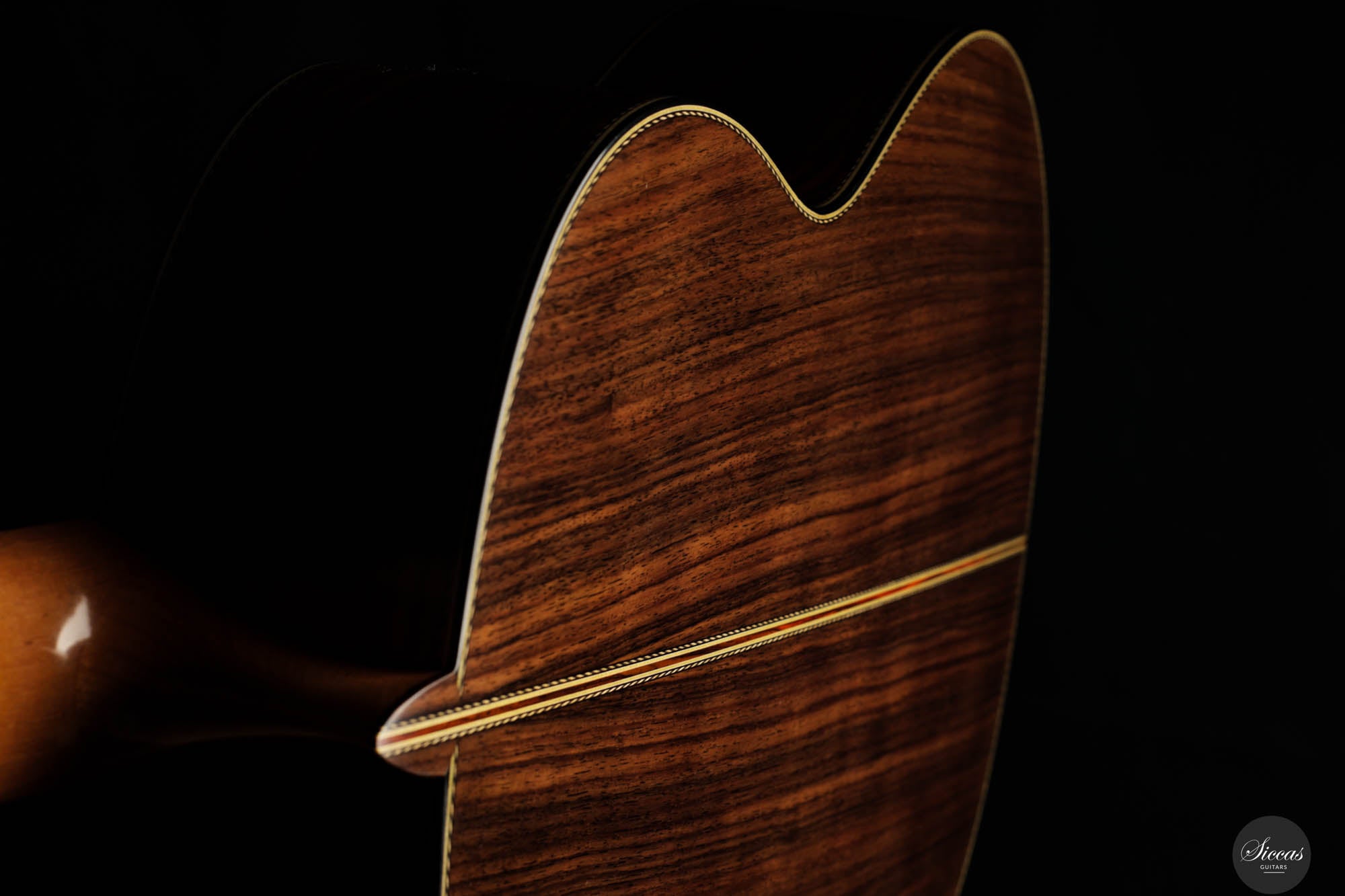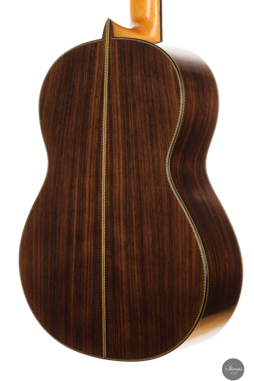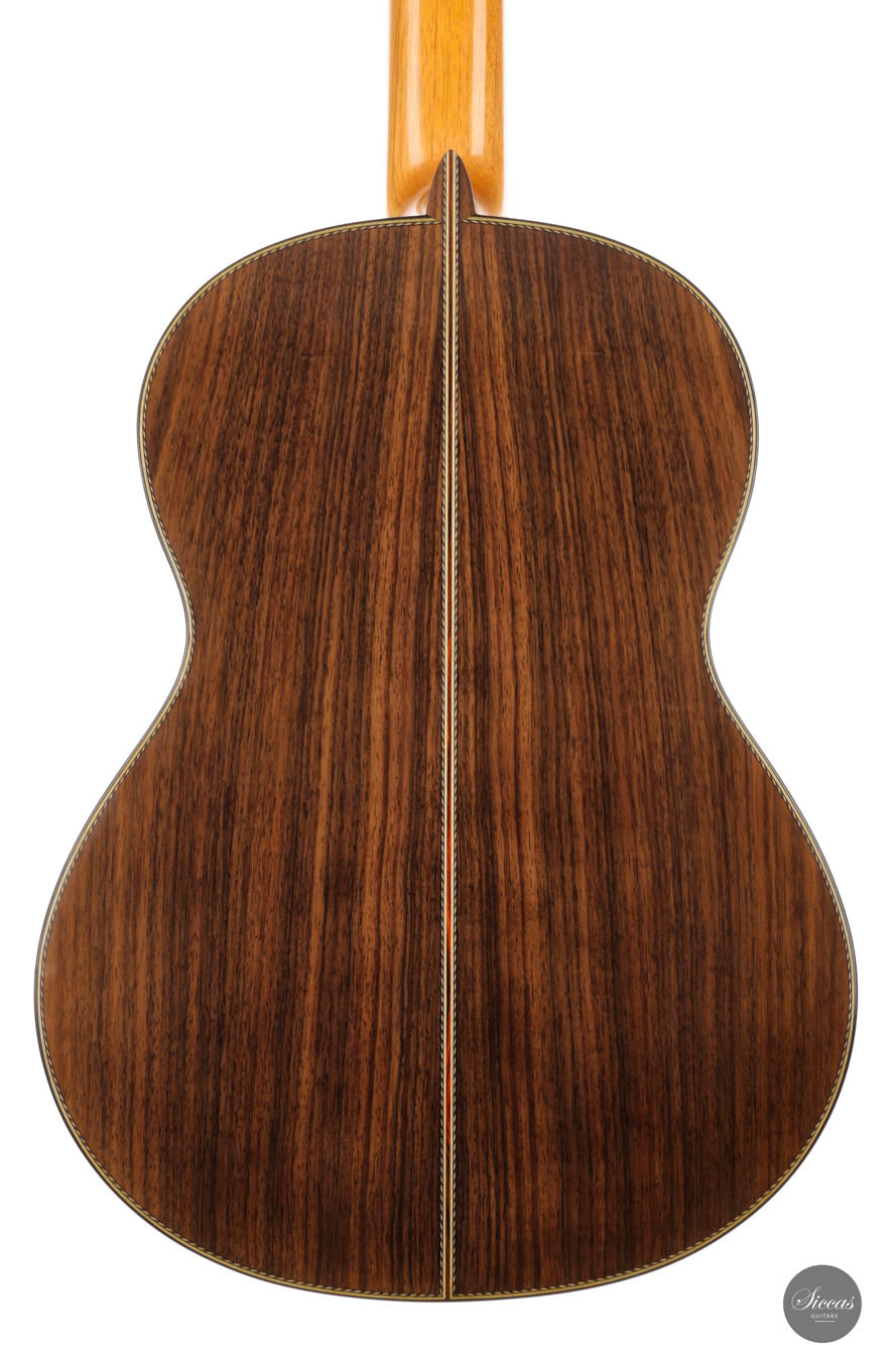 Diese brandneue Konzertgitarre von Erez Perelman vereint traditionelle Handwerkskunst mit modernem Feingefühl und ist auf die Bedürfnisse zeitgenössischer Gitarristen zugeschnitten. Erez' akribische Liebe zum Detail zeigt sich in den kunstvollen dekorativen Elementen, die das Instrument zieren und sein außergewöhnliches Talent im Holzhandwerk demonstrieren. Tief gestimmt erzeugt die Gitarre einen warmen, runden Ton, mit einer Bass-E-Saite, die mit dichtem, komplexem Sustain resoniert, während die Diskant-E-Saite eine elegante und markante Stimme bietet. Das Spielen dieser Gitarre ist ein fesselndes Erlebnis, da sie reichlich gegen die linke Hand und die Brust vibriert und Perelmans Hingabe zu ästhetischer und akustischer Exzellenz widerspiegelt.