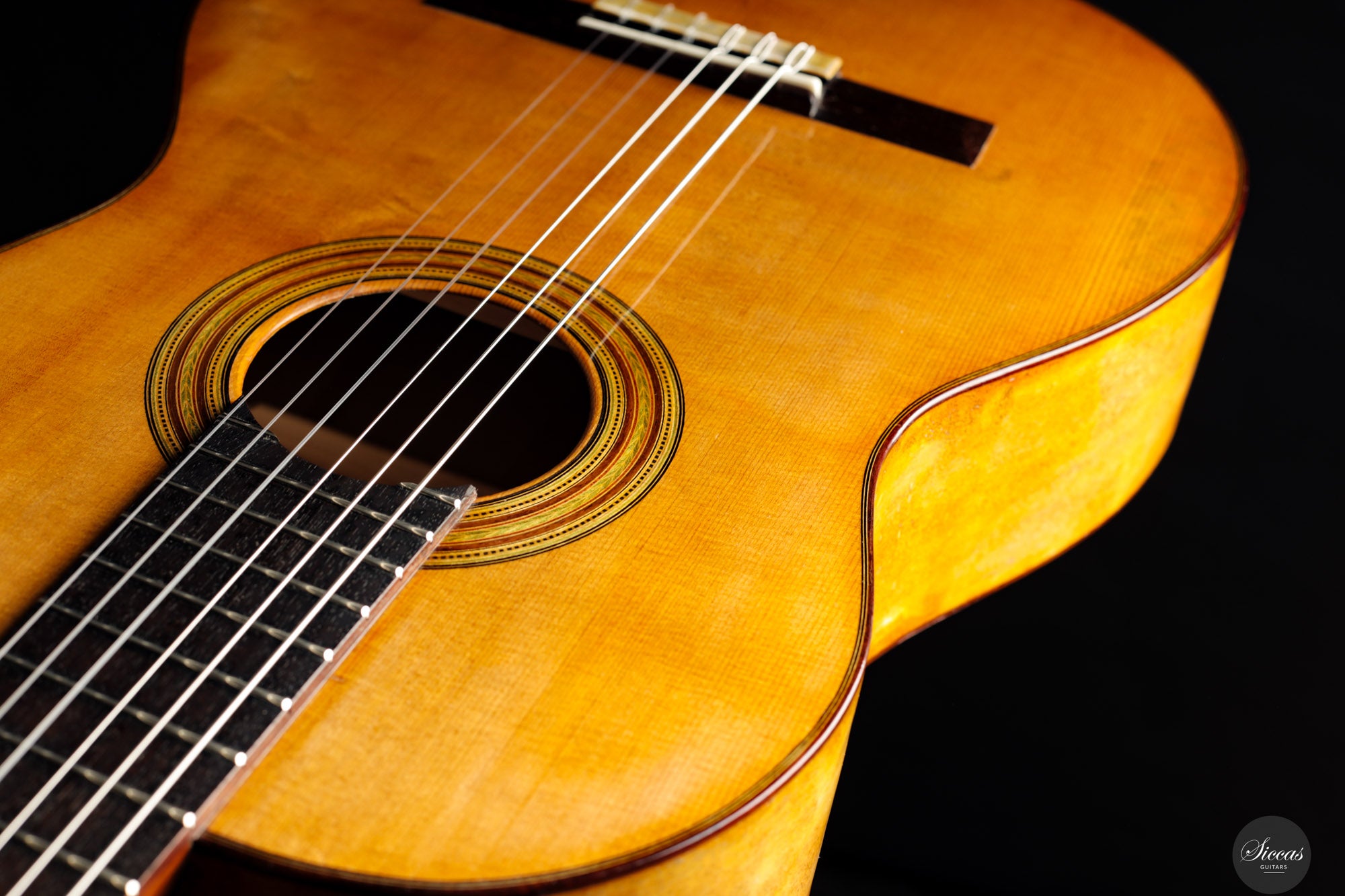 Diese Gitarre von Fabio Zontini aus dem Jahr 2023 ist eine originalgetreue Nachbildung des Modells FE14 von Antonio de Torres, das 1862 mit Boden und Zargen aus Papiermaché gefertigt wurde – einem experimentellen Material, das Torres in wenigen Instrumenten einsetzte. Zontini begann 2005 mit der Arbeit an dieser Replikaserie und orientierte sich dabei exakt an Konstruktion, Proportionen und klanglicher Wirkung des Originals. Das Ergebnis ist eine außergewöhnlich leichte Gitarre mit intimer Ansprache und feinem, lyrischem Klangverlauf. Ihre tiefe Eigenresonanz und geringe Masse verleihen ihr eine unmittelbare Tonentfaltung und ein sensibles Ausschwingverhalten. Besonders geeignet für das spanische Repertoire des 19. Jahrhunderts, vermittelt dieses Instrument die poetische Klangästhetik und klangliche Raffinesse von Torres’ experimentelleren Arbeiten.