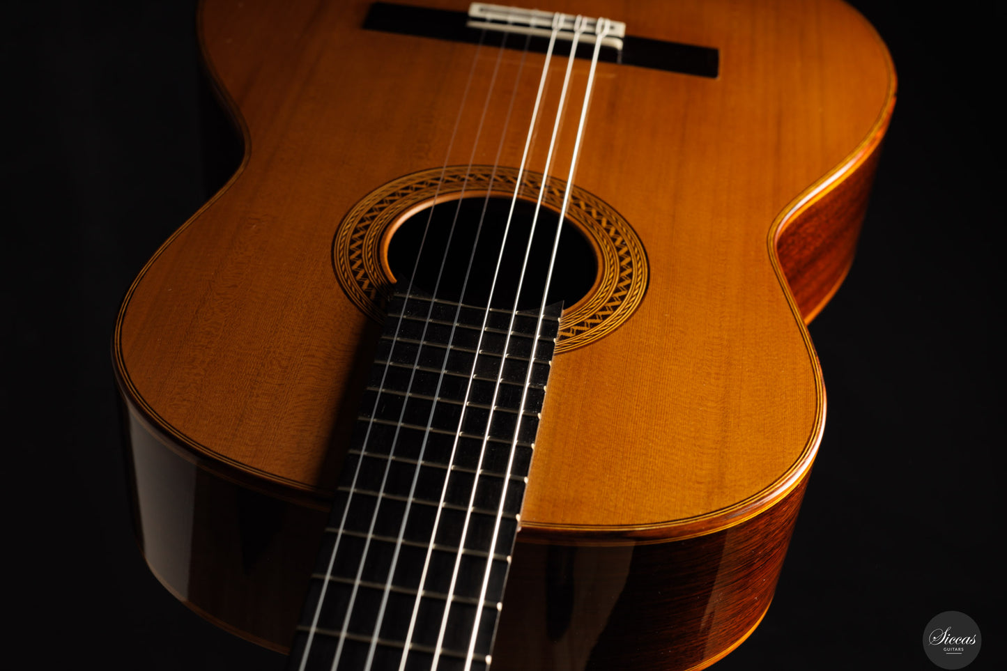 Die klassische Gitarre mit ihren weichen Nylonsaiten und ihrem charakteristischen Timbre ist zum Symbol der Kammermusik, der spanischen Tradition und des Konzertrepertoires geworden. Ihre moderne Form prägte Antonio de Torres im 19. Jahrhundert, indem er den Standard für Korpus, Fächerbeleistung und die 65-Zentimeter-Mensur setzte, die bis heute verwendet werden. Instrumente dieser Kategorie eröffnen eine reiche Palette von den feinen romantischen Miniaturen Tárregas bis zu den majestätischen Konzerten Rodrigos. Hier finden Sie Gitarren, die historische Kontinuität bewahren und zugleich zu neuen Interpretationen anregen.