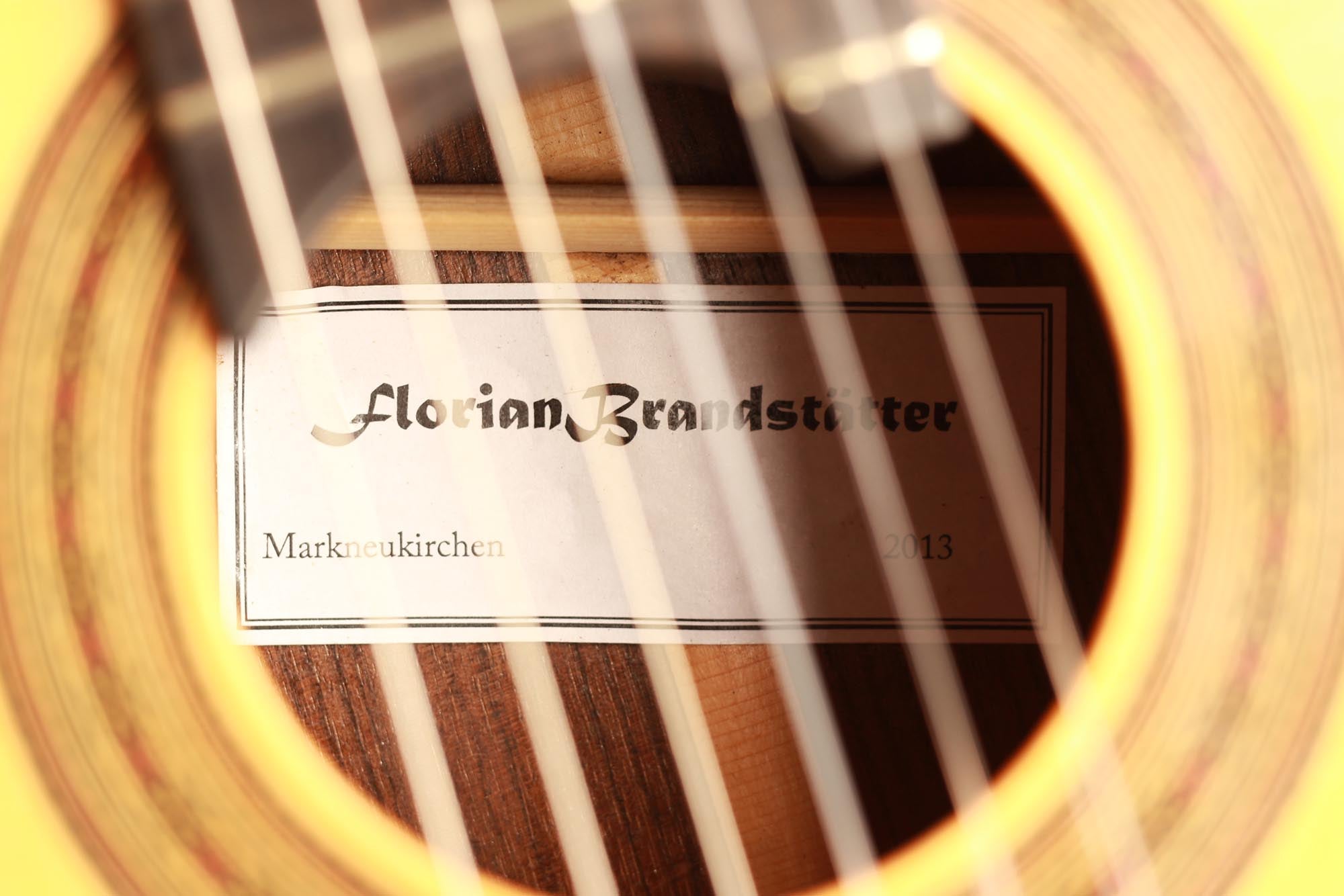 Diese Gitarre wurde von Florian Brandstätter, einem jungen österreichischen Gitarrenbauer gefertigt. Der Boden und Zargen sind aus ostindischem Palisander. Die Decke besteht aus Alpenfichte. Für den Hals wurde Cedro verwendet, welcher sehr leicht ist und eine sehr hohe Stabilität hat. Die Oberfläche wurde mit einer Schellacklackierung veredelt. Im Diskant ist die Gitarre sehr brillant und die Bässe sind sehr stark und kräftig.