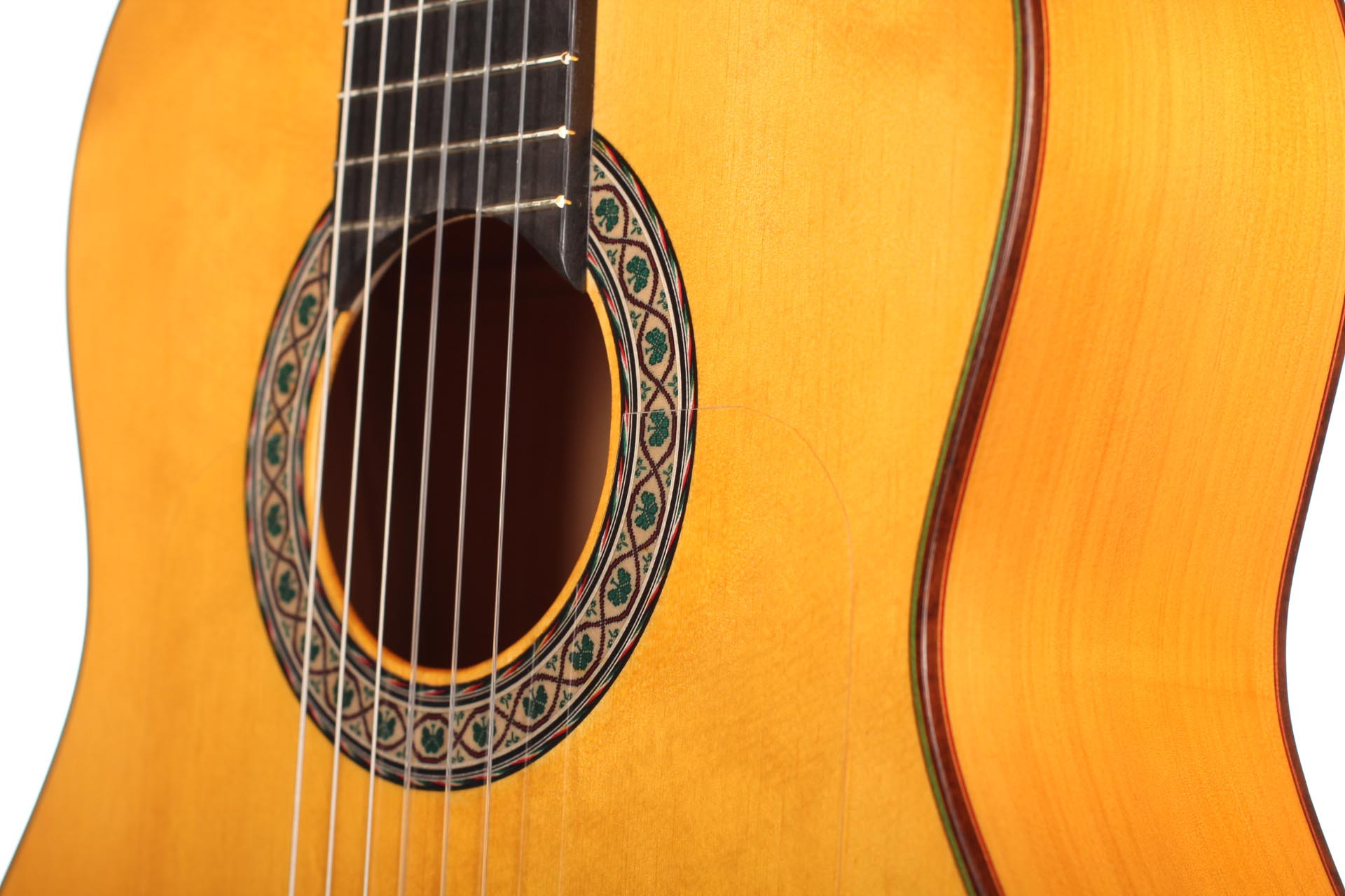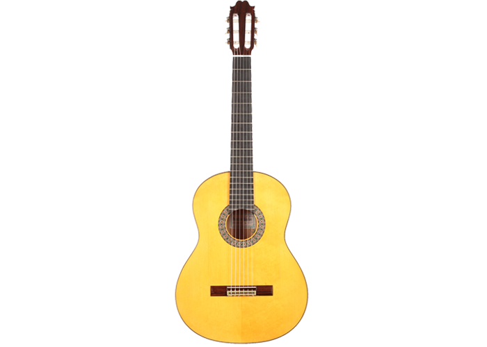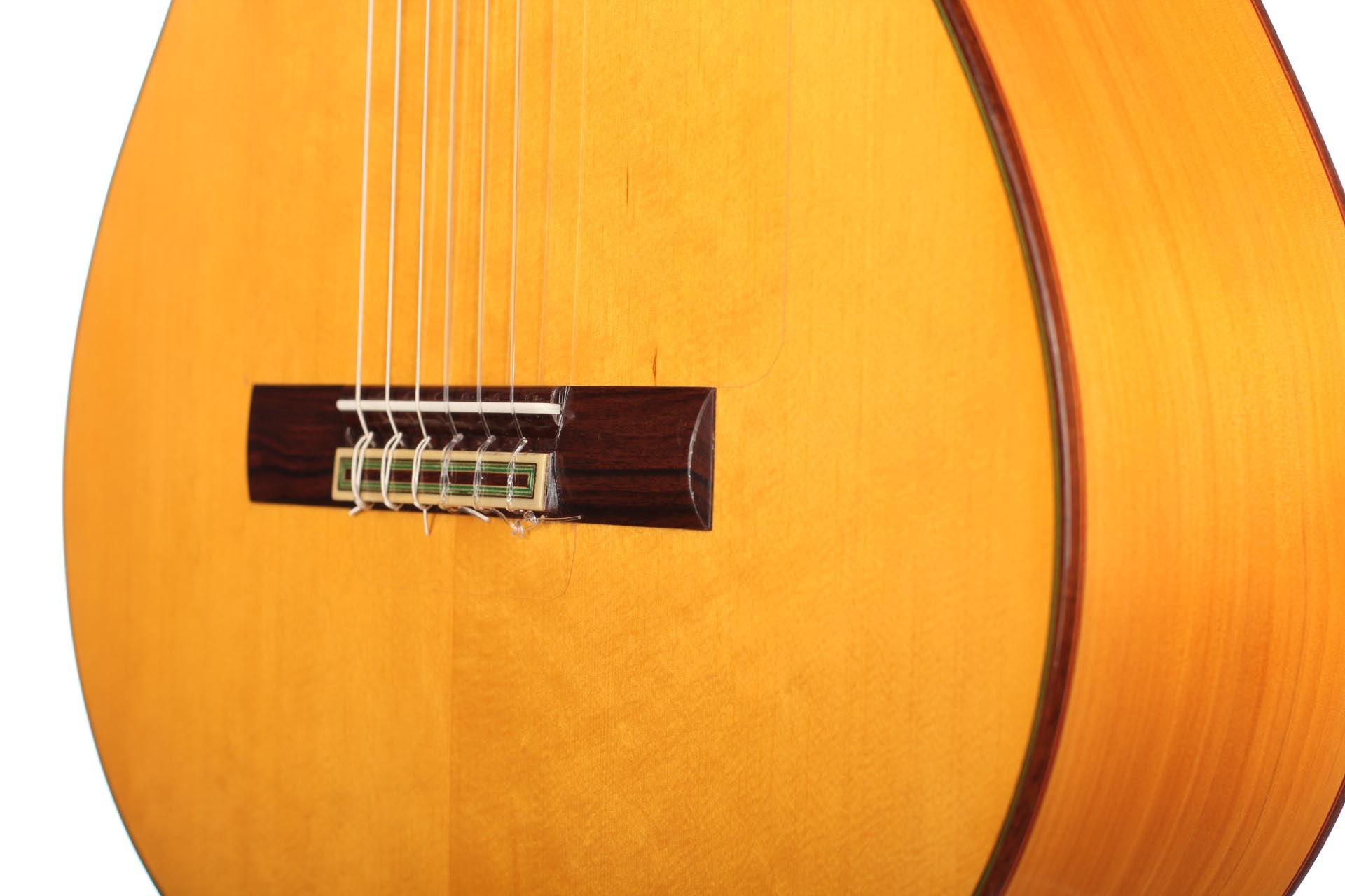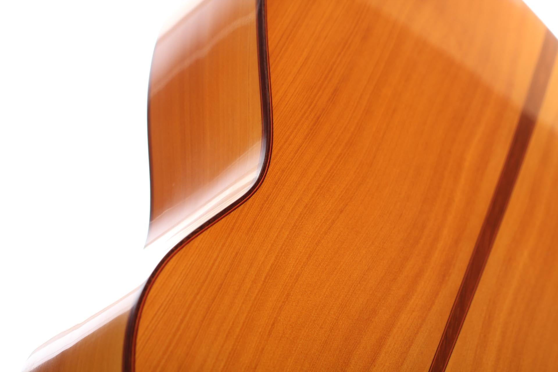 The sound of this flamenco guitar is astonishing, despite being new. In fact, the sound is really mature, which can mostly be found in older high-quality guitars. The basses are bright and powerful. The trebles are vivid, with spectacular brightness and volume. The tuners are made by Fustero. A hard-shell case is included. This guitar is Cites-free (CF).