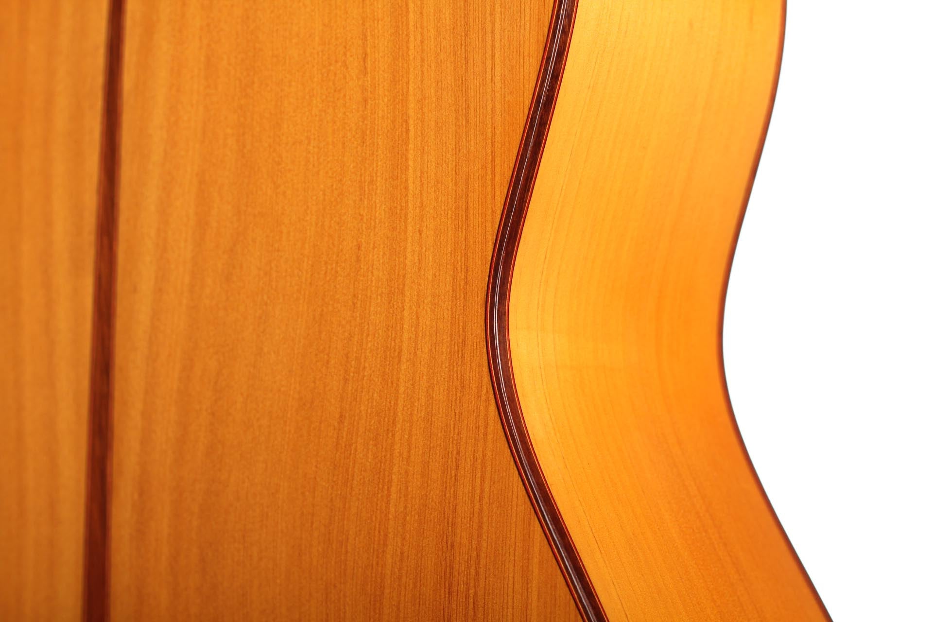 Francisco Sánchez was born in the town of Estepa, Spain, in 1958. Son of a cabinetmaker, he quickly learned the craft of woodworking and the art of the restoration. In 1999 after a big turn in his professional career, he started restoring and building guitars. His skills, his seek of perfection and the patience acquired along his years of woodworking are clearly expressed in each of his guitars. This guitar has a beautiful spruce top and cypress wood back and sides.