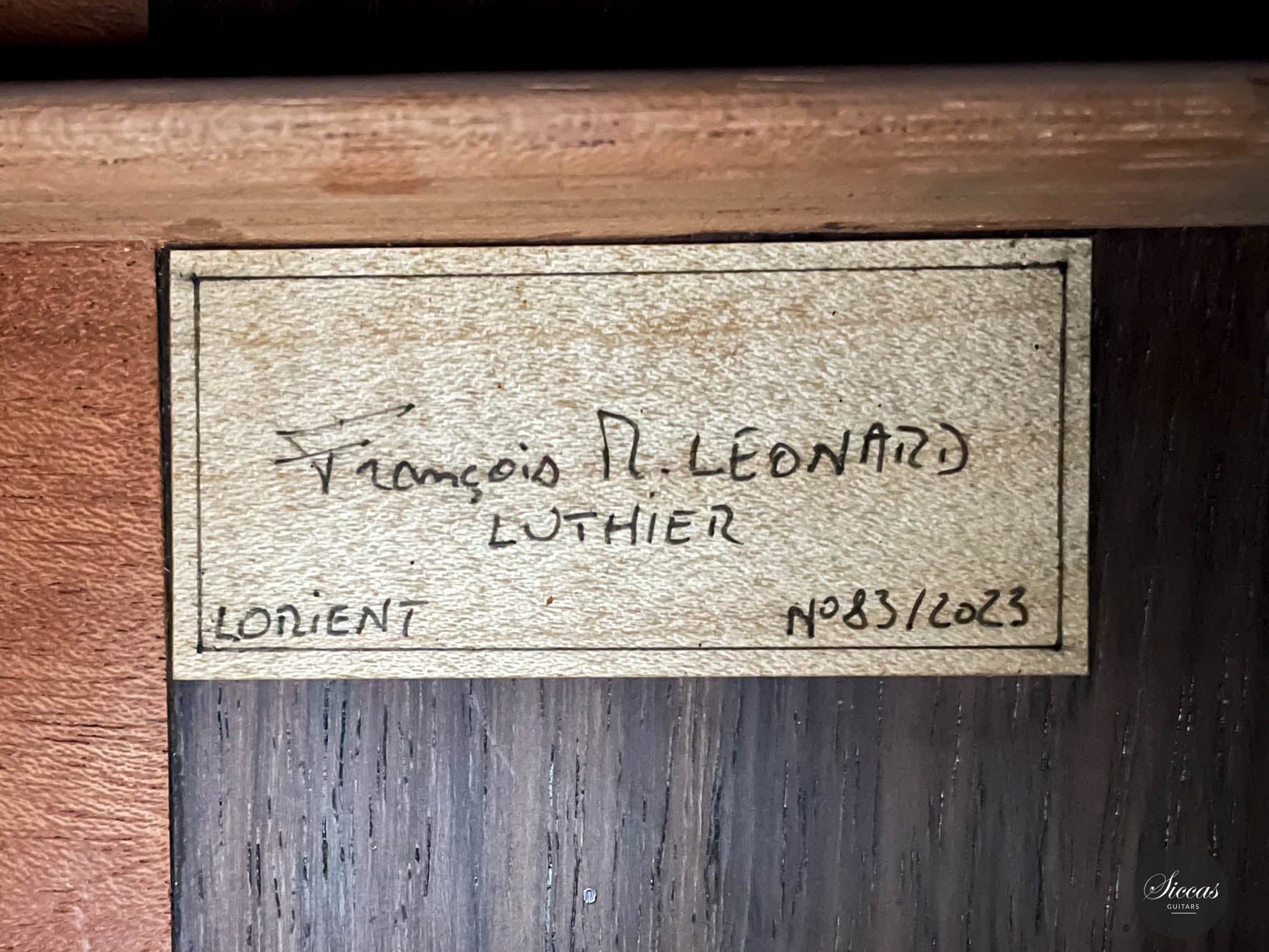 Seit nunmehr fast 20 Jahren baut François Leonard schon klassische Gitarren und lebt und arbeitet seiner Werkstatt in Lorient, Frankreich. Er hatte die Gelegenheit, von vielen Gitarrenbauern in England zu lernen und arbeitete unter anderem auch in der Lakewood-Werkstatt in Deutschland. Durch Dominique Field als gelegentlichen Mentor erhielt er Unterstützung und so ist es keine Überraschung, dass die Ästhetik und das baulich Konzept seiner Gitarren stark von französischen Meistern wie Daniel Friederich und Dominique Field beinflusst sind.