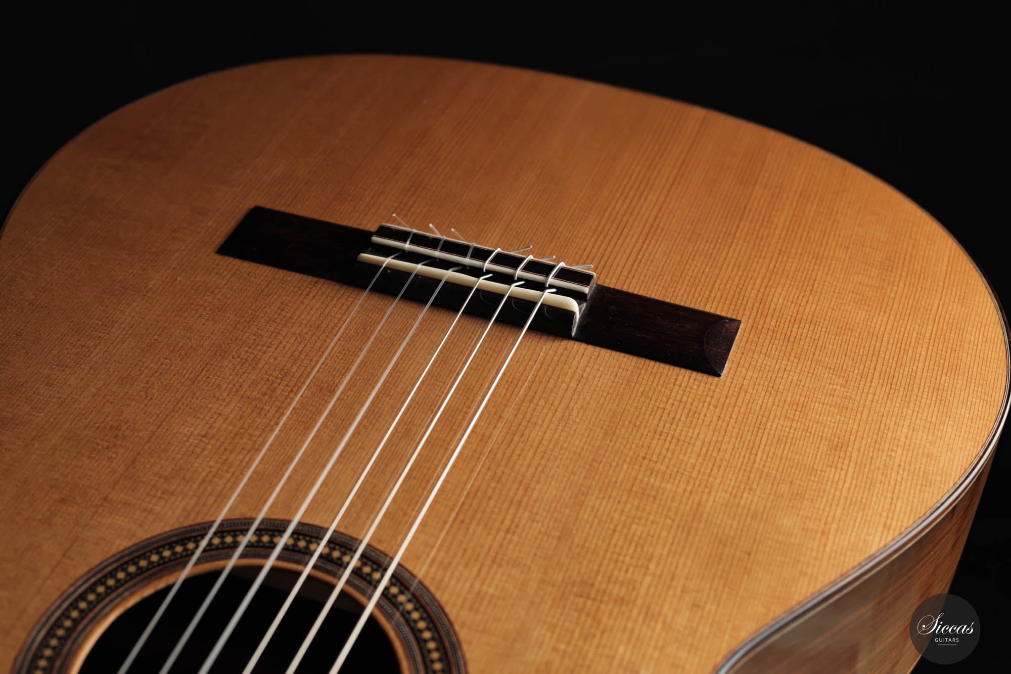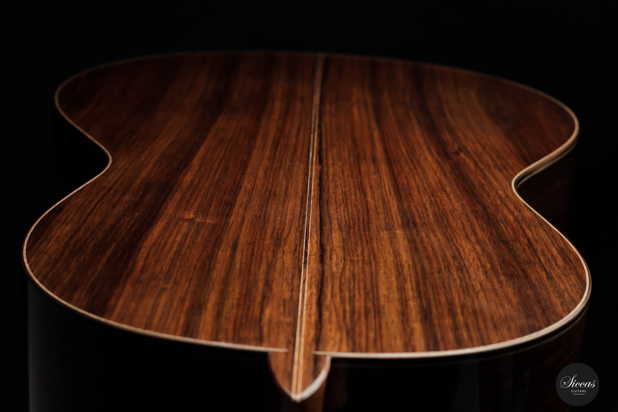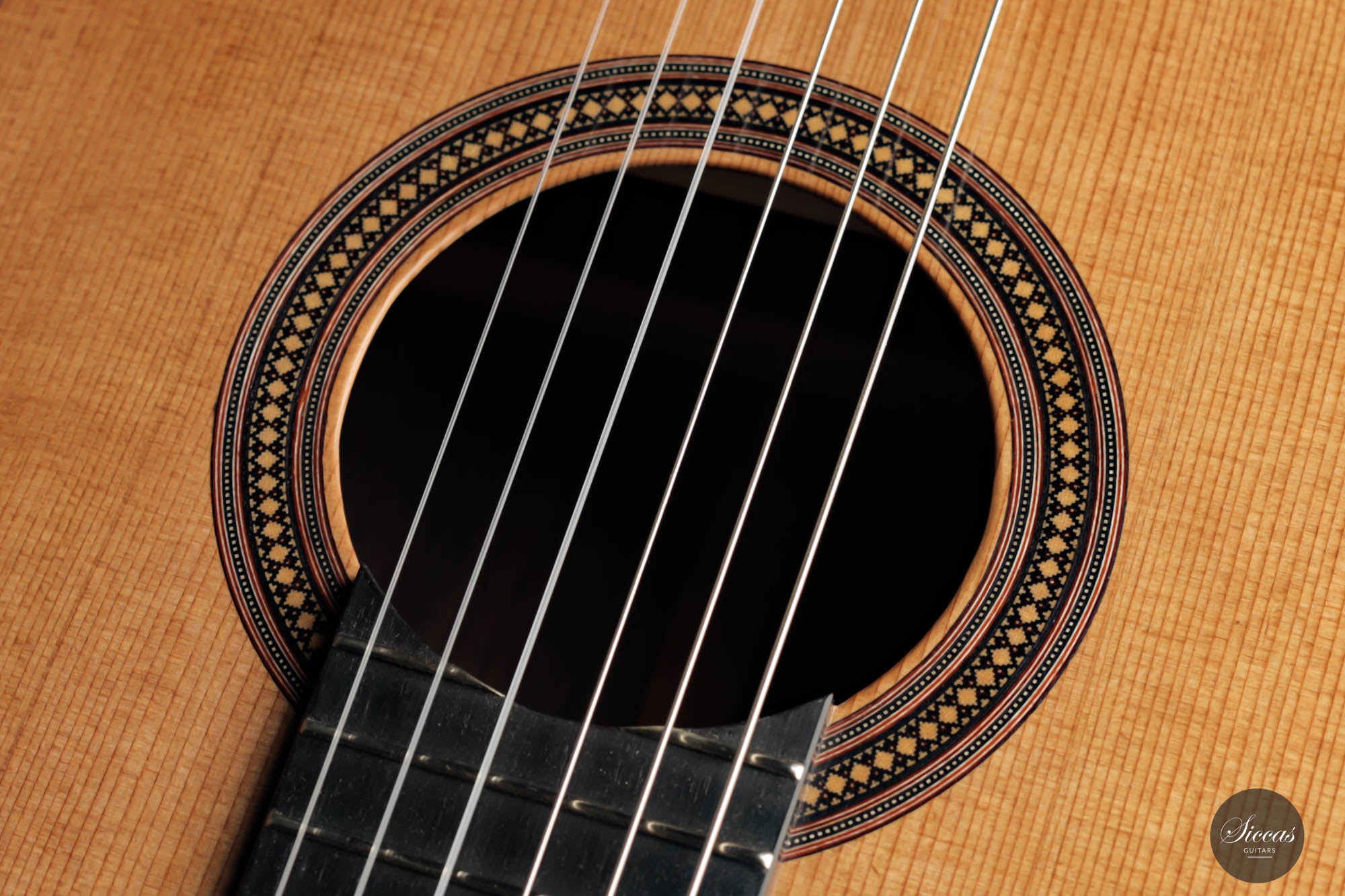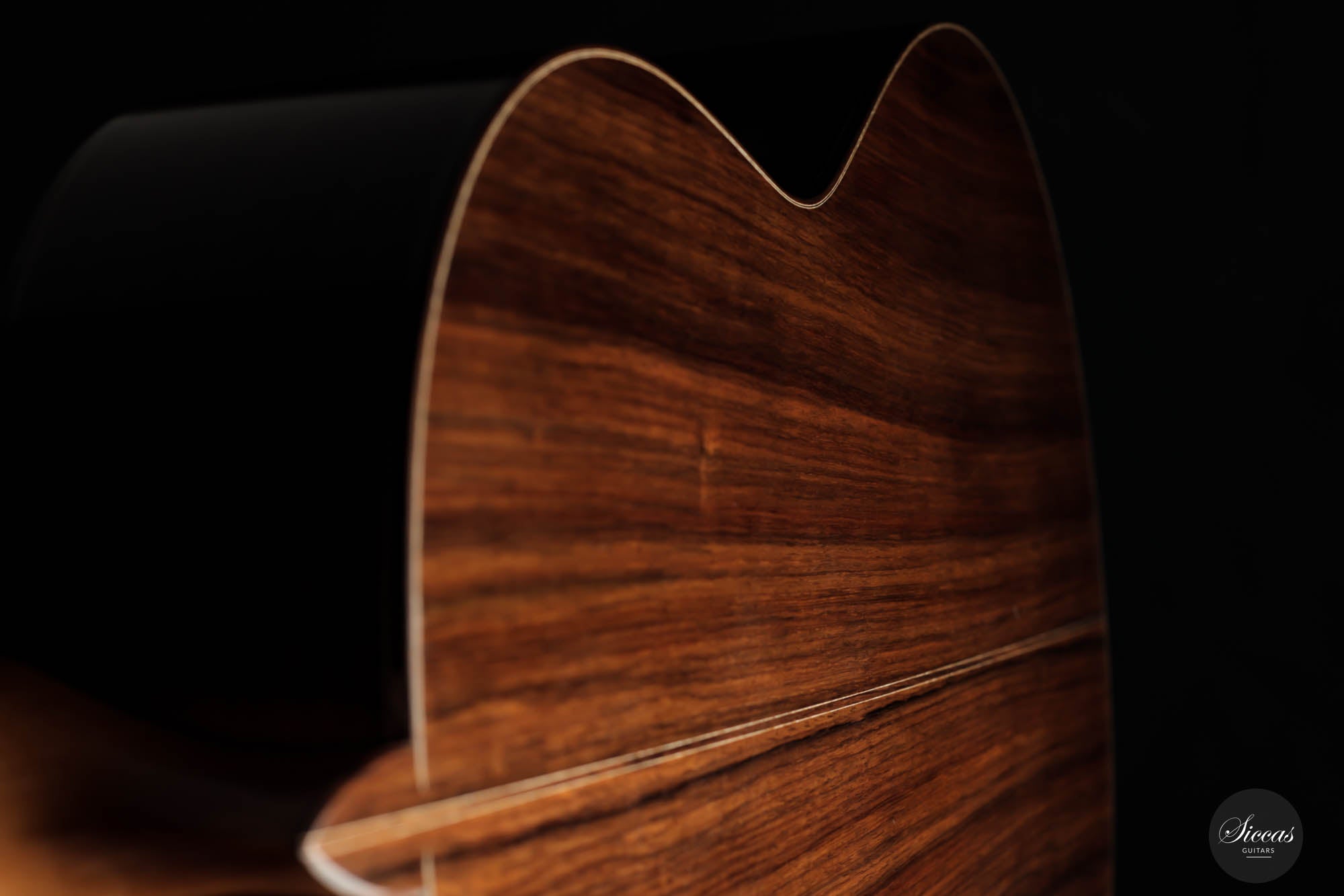 Die 2023 Francois Regis Leonard Lattice Bracing Gitarre ist ein wahres Meisterwerk, gefertigt mit einer Zederndecke und Boden und Zargen aus indischem Palisander. Das Lattice Bracing System schafft eine unglaublich reaktionsschnelle Decke, die einen offenen und reaktionsschnellen Ton liefert, der wirklich erstaunlich ist. Die Höhen sind enorm, mit einem luftigen, abgerundeten und reifen Charakter, der sicher beeindrucken wird. Diese Gitarre gibt jede Nuance und jedes Detail des Spiels des Spielers getreu wieder, mit einer breiten Palette von Klangfarben und dynamischen Bereichen, die es zu einem Vergnügen machen, sie zu spielen. Die Handwerkskunst ist tadellos, und jedes Detail wurde von den geschickten Händen von Francois Regis Leonard gepflegt. Insgesamt ist die 2023 Francois Regis Leonard Lattice Bracing Gitarre ein außergewöhnliches Instrument, das sicher von Gitarristen gesucht wird, die das Beste in Bezug auf Klang, Spielbarkeit und Handwerkskunst verlangen.