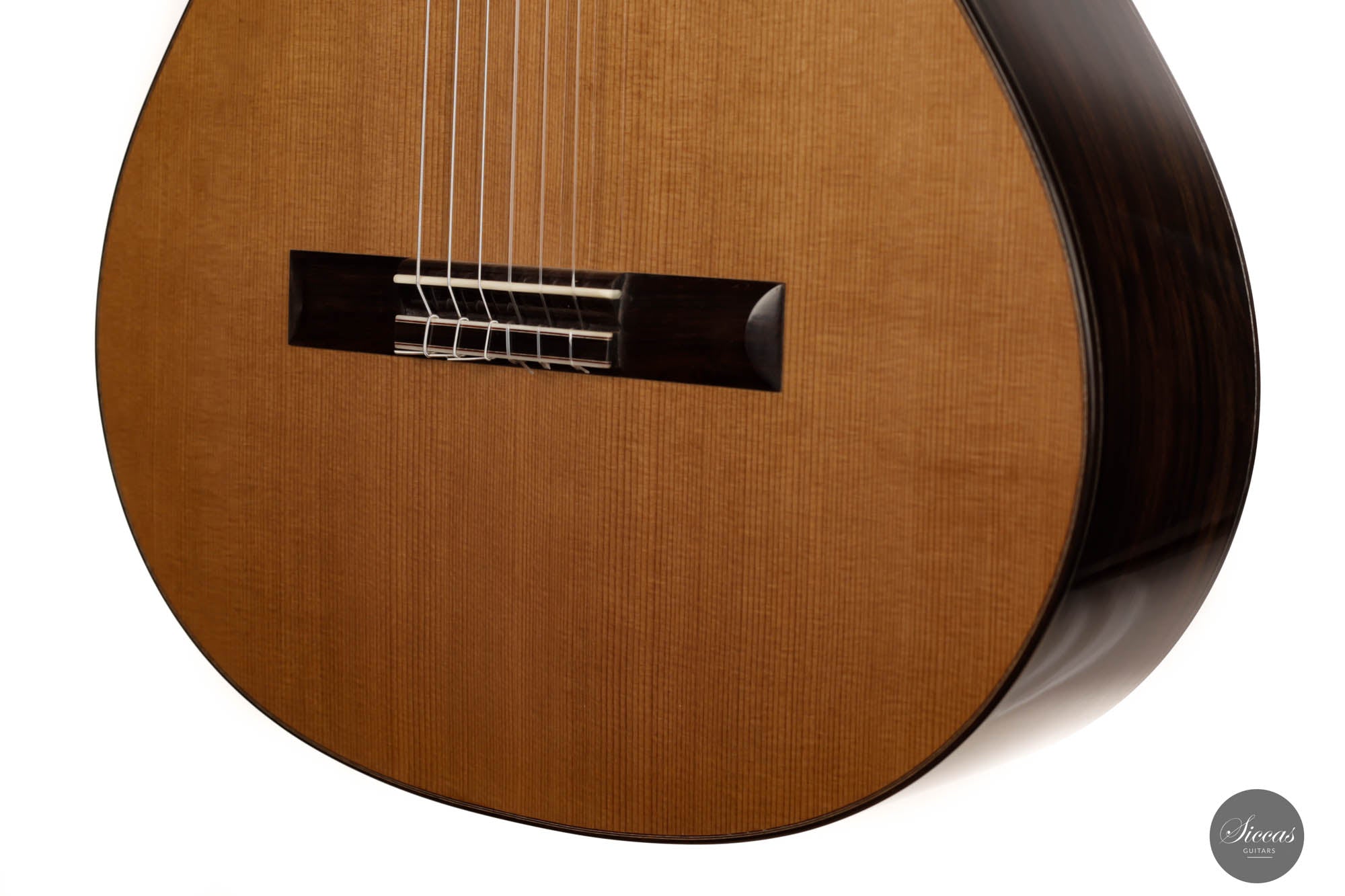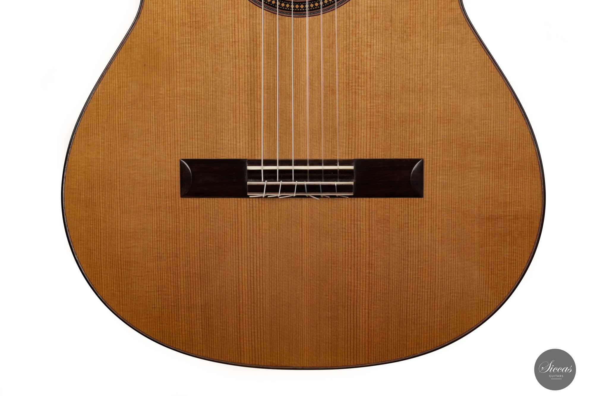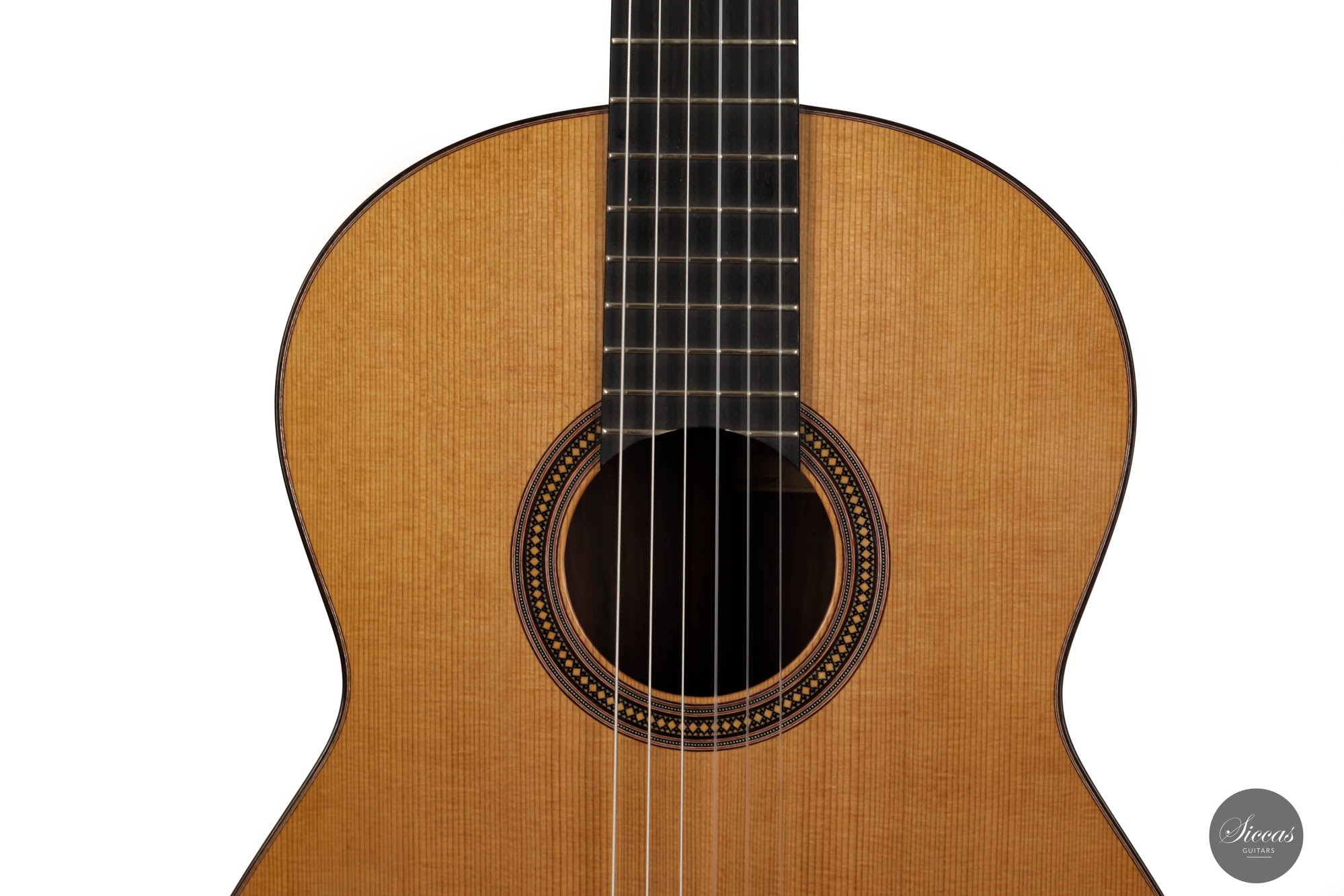 Die 2023 Francois Regis Leonard Lattice Bracing Gitarre ist ein wahres Meisterwerk, gefertigt mit einer Zederndecke und Boden und Zargen aus indischem Palisander. Das Lattice Bracing System schafft eine unglaublich reaktionsschnelle Decke, die einen offenen und reaktionsschnellen Ton liefert, der wirklich erstaunlich ist. Die Höhen sind enorm, mit einem luftigen, abgerundeten und reifen Charakter, der sicher beeindrucken wird. Diese Gitarre gibt jede Nuance und jedes Detail des Spiels des Spielers getreu wieder, mit einer breiten Palette von Klangfarben und dynamischen Bereichen, die es zu einem Vergnügen machen, sie zu spielen. Die Handwerkskunst ist tadellos, und jedes Detail wurde von den geschickten Händen von Francois Regis Leonard gepflegt. Insgesamt ist die 2023 Francois Regis Leonard Lattice Bracing Gitarre ein außergewöhnliches Instrument, das sicher von Gitarristen gesucht wird, die das Beste in Bezug auf Klang, Spielbarkeit und Handwerkskunst verlangen.