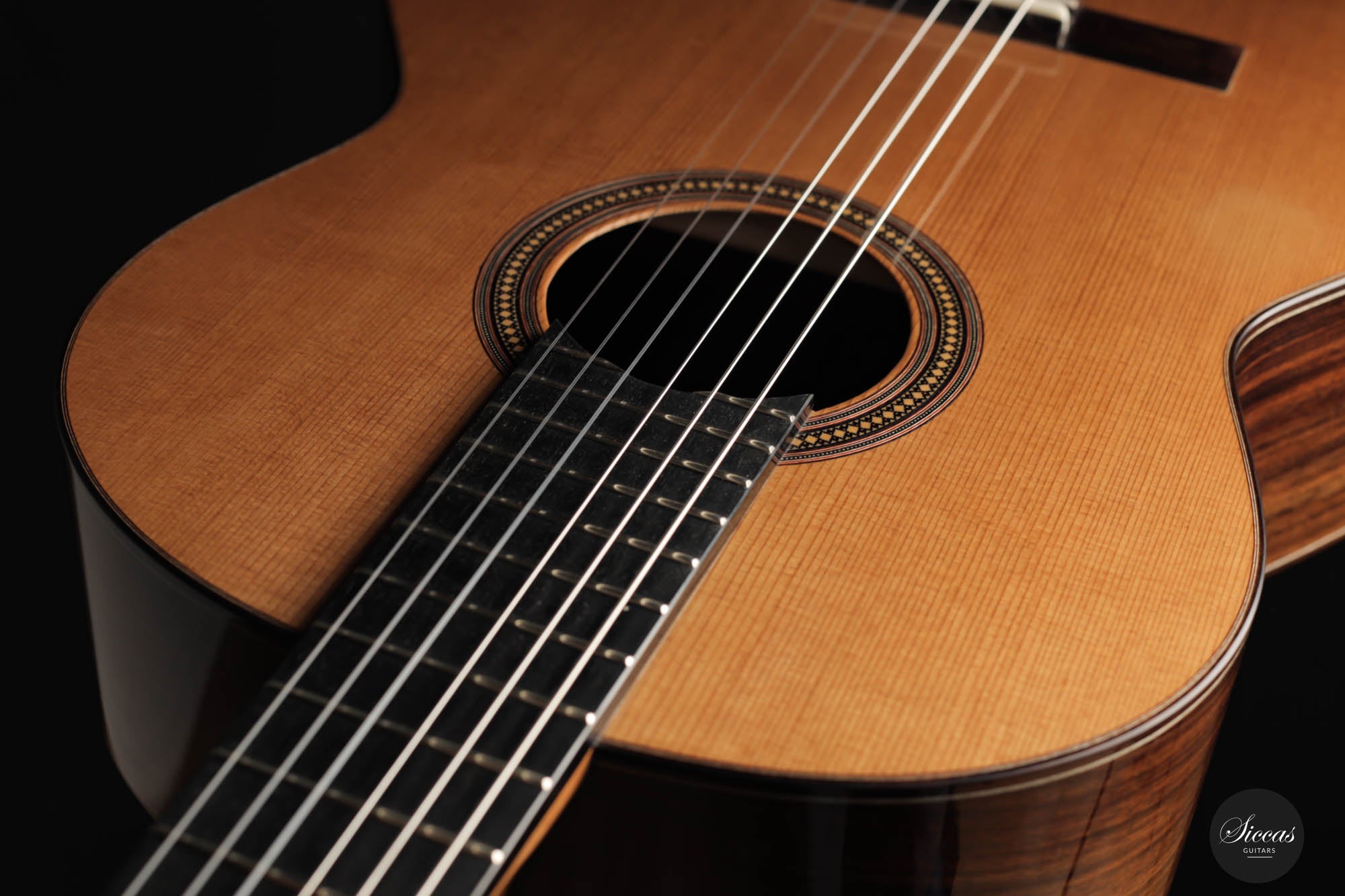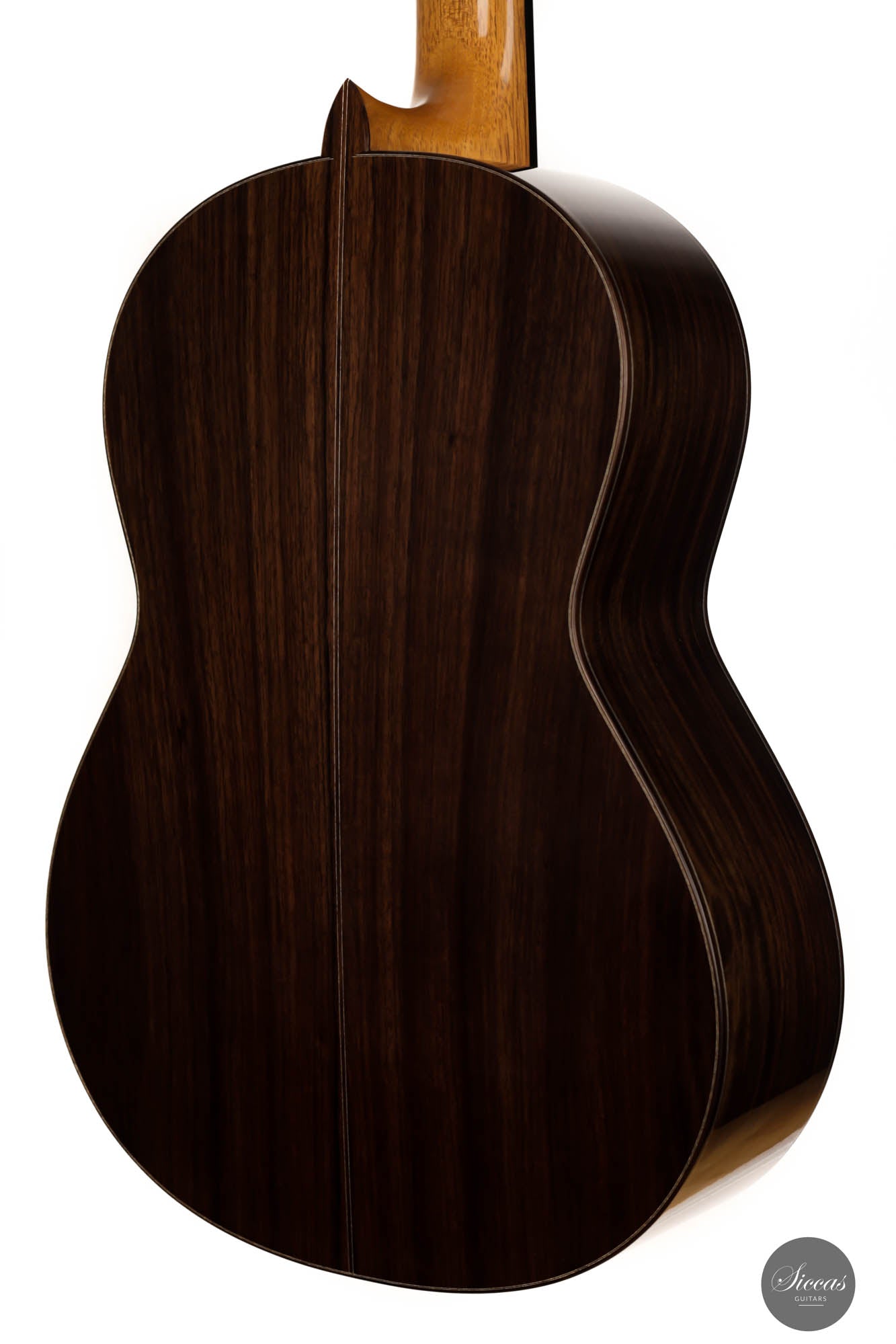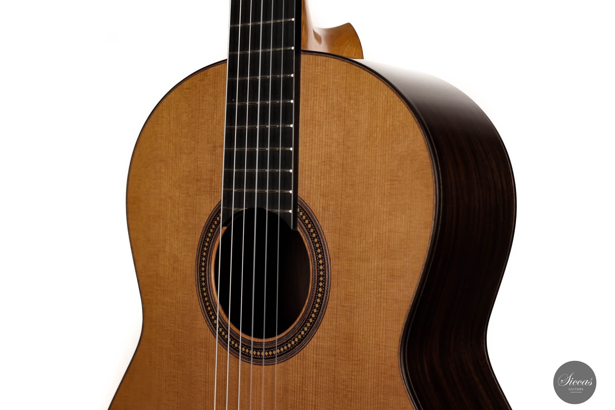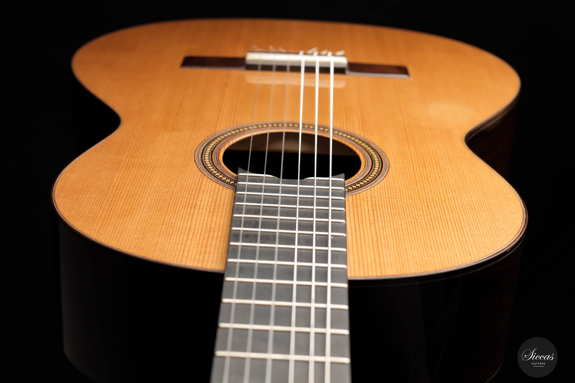 Die 2023 Francois Regis Leonard Lattice Bracing Gitarre ist ein wahres Meisterwerk, gefertigt mit einer Zederndecke und Boden und Zargen aus indischem Palisander. Das Lattice Bracing System schafft eine unglaublich reaktionsschnelle Decke, die einen offenen und reaktionsschnellen Ton liefert, der wirklich erstaunlich ist. Die Höhen sind enorm, mit einem luftigen, abgerundeten und reifen Charakter, der sicher beeindrucken wird. Diese Gitarre gibt jede Nuance und jedes Detail des Spiels des Spielers getreu wieder, mit einer breiten Palette von Klangfarben und dynamischen Bereichen, die es zu einem Vergnügen machen, sie zu spielen. Die Handwerkskunst ist tadellos, und jedes Detail wurde von den geschickten Händen von Francois Regis Leonard gepflegt. Insgesamt ist die 2023 Francois Regis Leonard Lattice Bracing Gitarre ein außergewöhnliches Instrument, das sicher von Gitarristen gesucht wird, die das Beste in Bezug auf Klang, Spielbarkeit und Handwerkskunst verlangen.