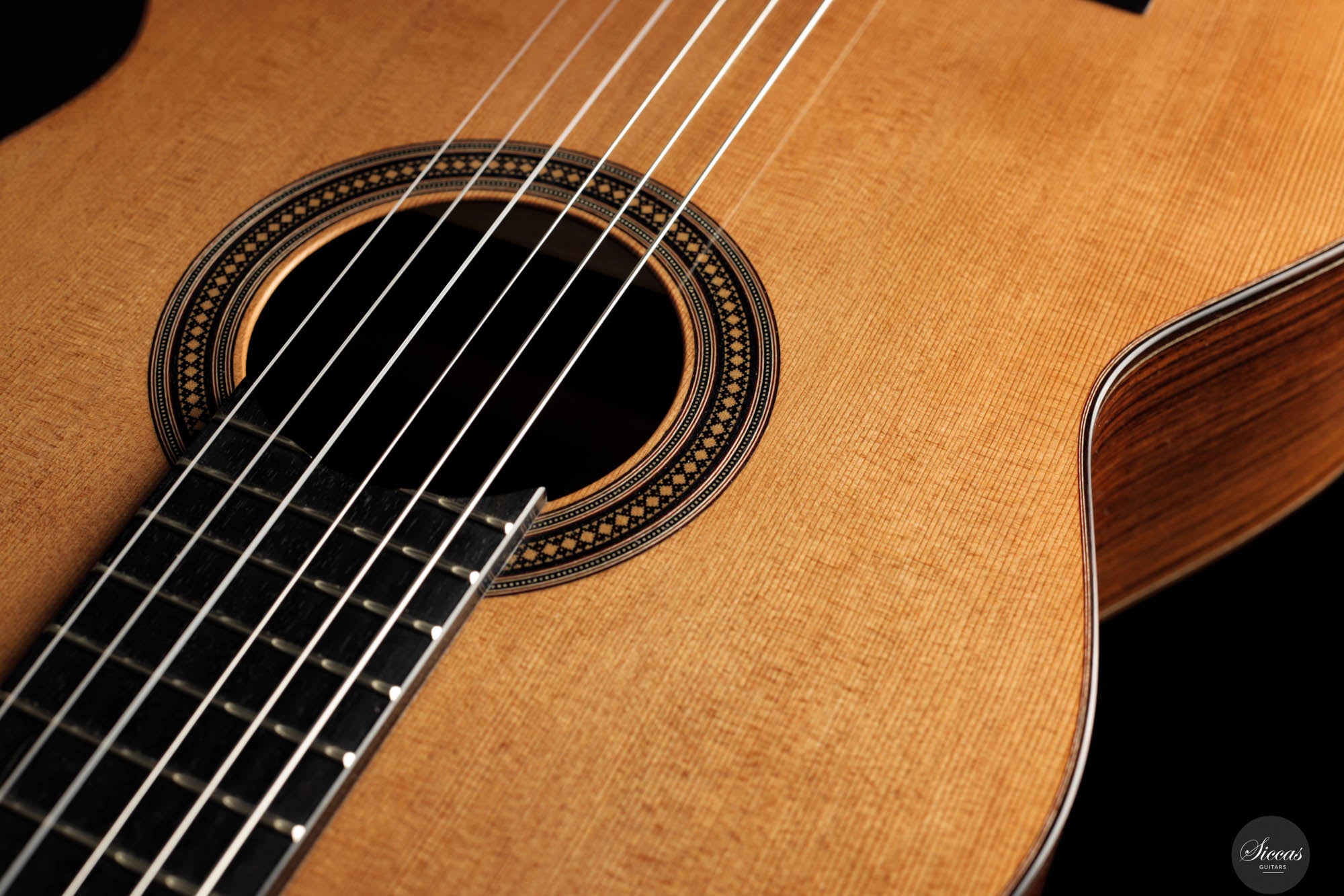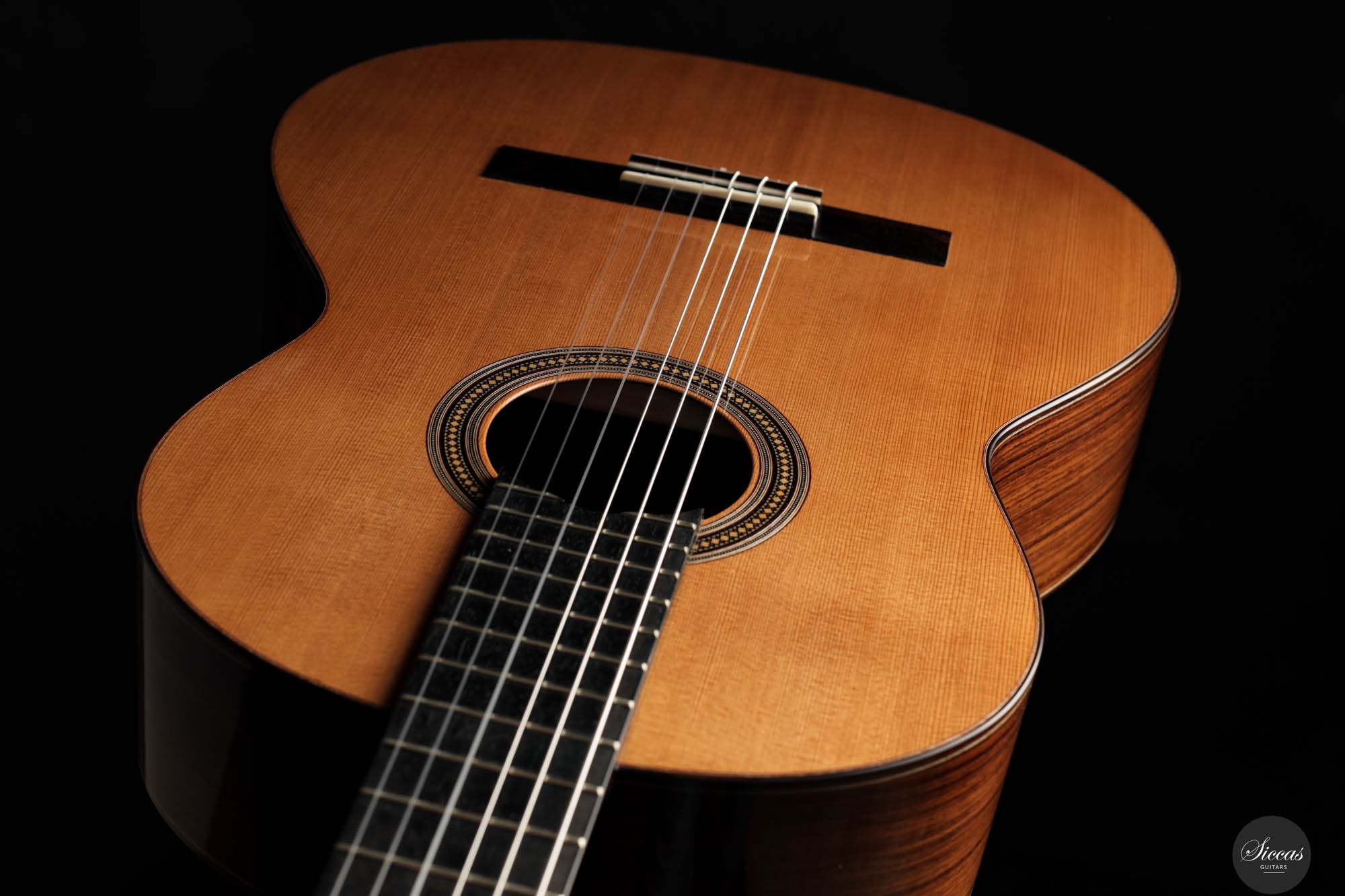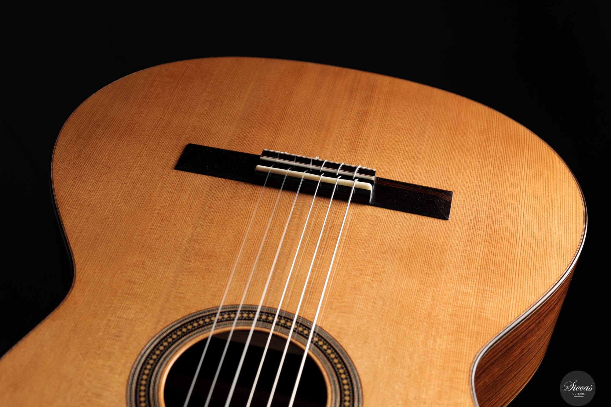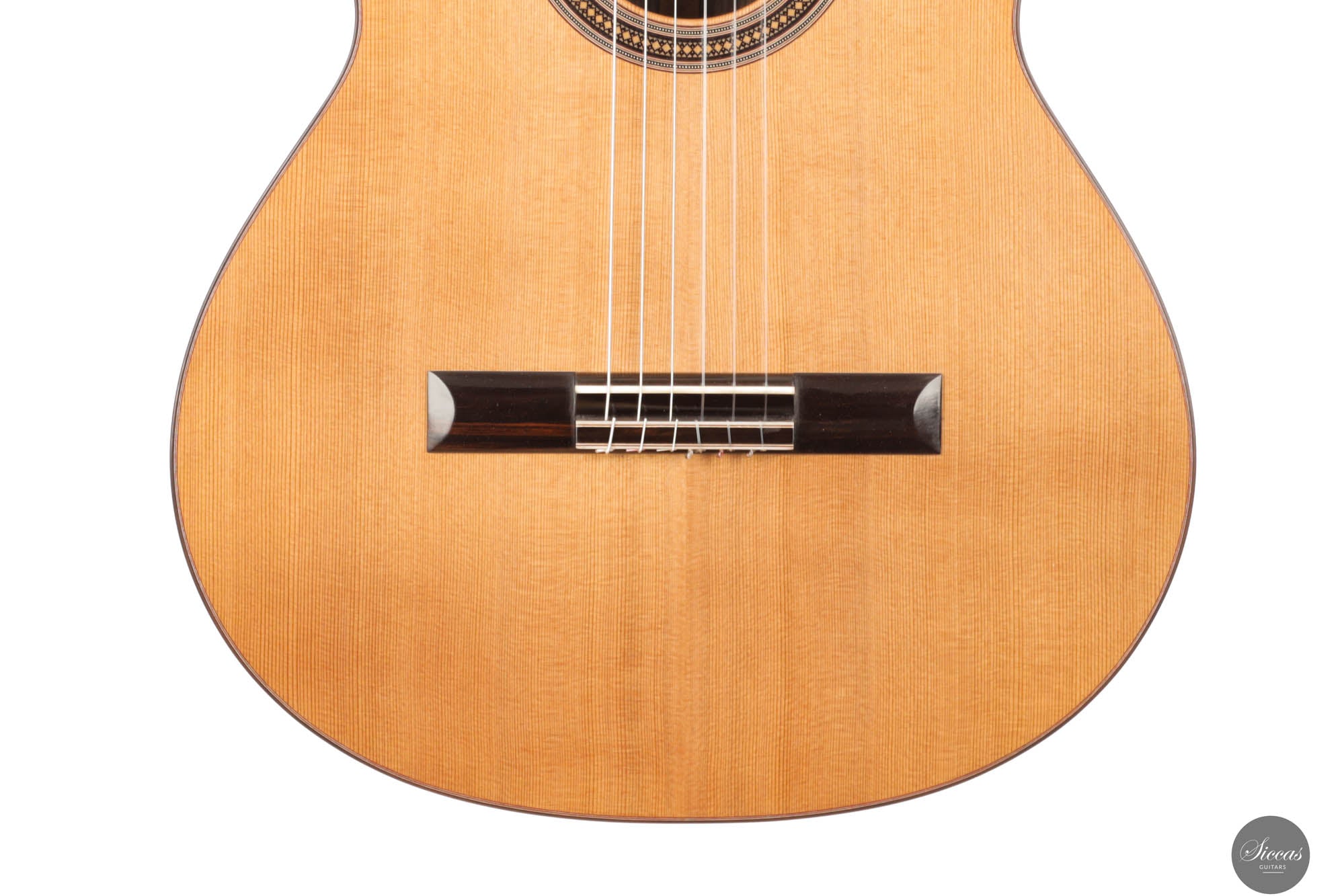 Diese Gitarre, Nummer 96, zeigt Leonards Konstanz in Bezug auf Klang- und Verarbeitungsqualität. Mit einer Zederndecke sowie Rücken und Zargen aus indischem Palisander strahlt dieses Instrument eine Eleganz und klangliche Tiefe aus, die sowohl fesselnd als auch anspruchsvoll ist. Die Gitterbeleistung sorgt für eine besonders reaktionsfähige Decke, die jede Note mit bemerkenswerter Resonanz und einem dynamischen Klangspektrum verstärkt. Mit reich resonanten Höhen und einer breiten Klangpalette lädt die Gitarre zu einer intimen Verbindung mit dem Spieler ein, was präzisen Ausdruck und einen nuancierten Dialog in jeder Aufführung ermöglicht.