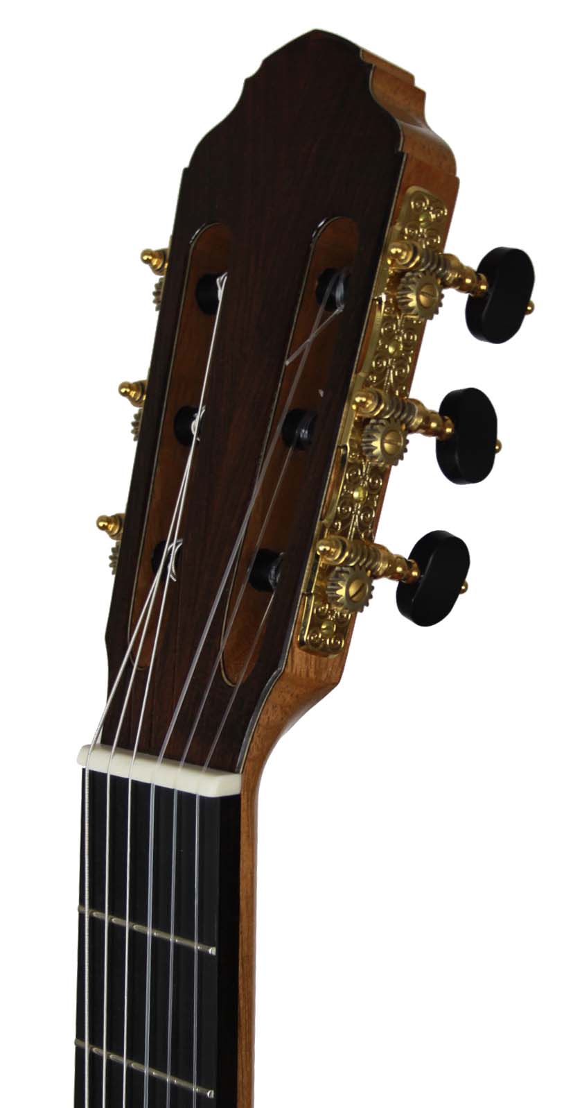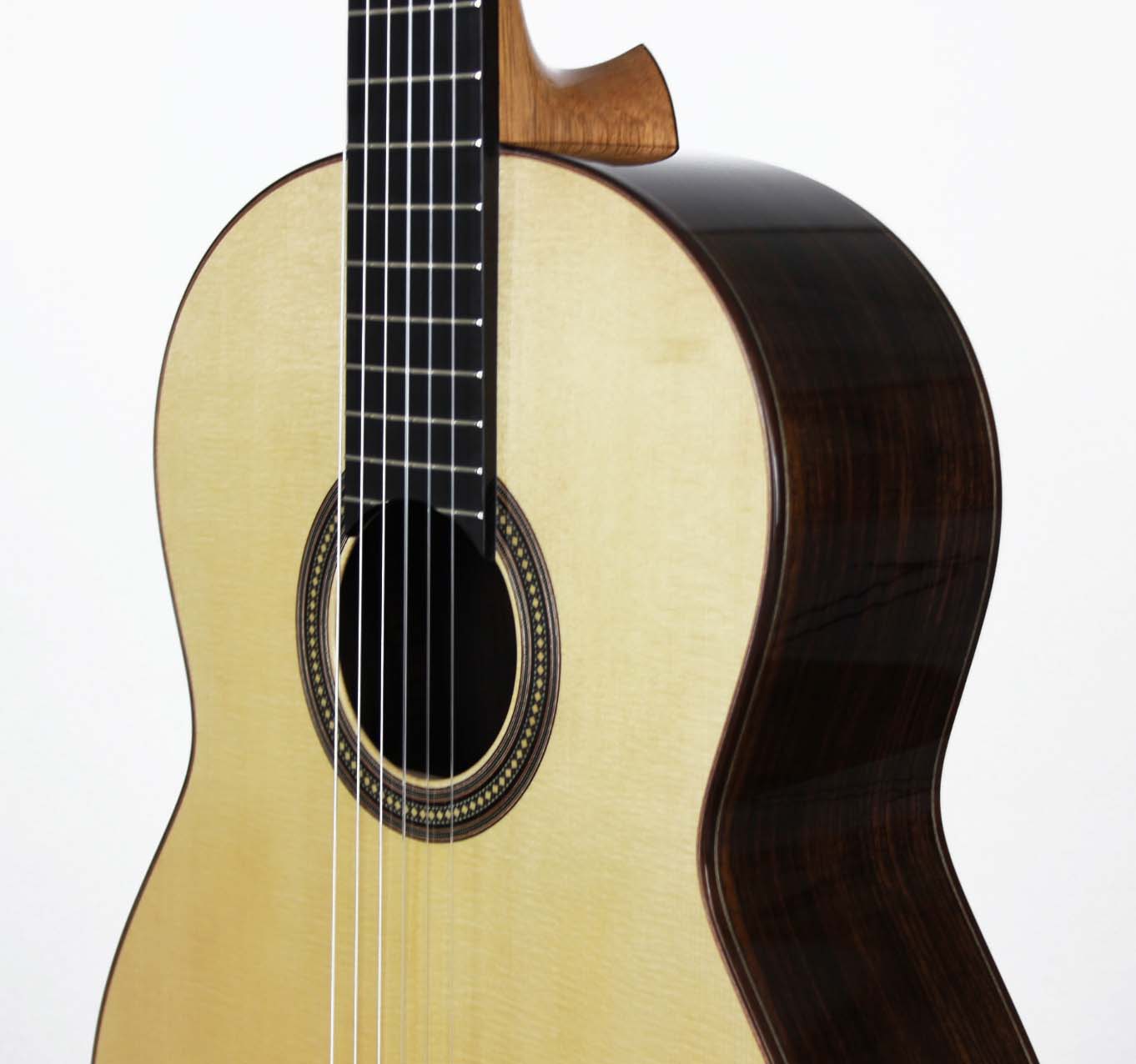 Since a few years he's meeting and exchanging every year with acousticians to add scientific understanding to the intuitive part of the sound perception. The French tradition of making including Daniel Friederich and Dominique Field is among all what guided him in the aesthetic and structural aspect with double sides for example. The premium machine heads are made by Gotoh. Included is a perfect fitting Protege HumiCase.