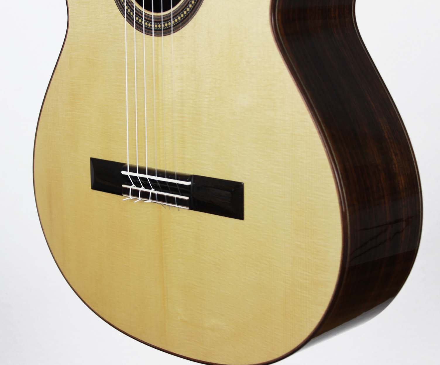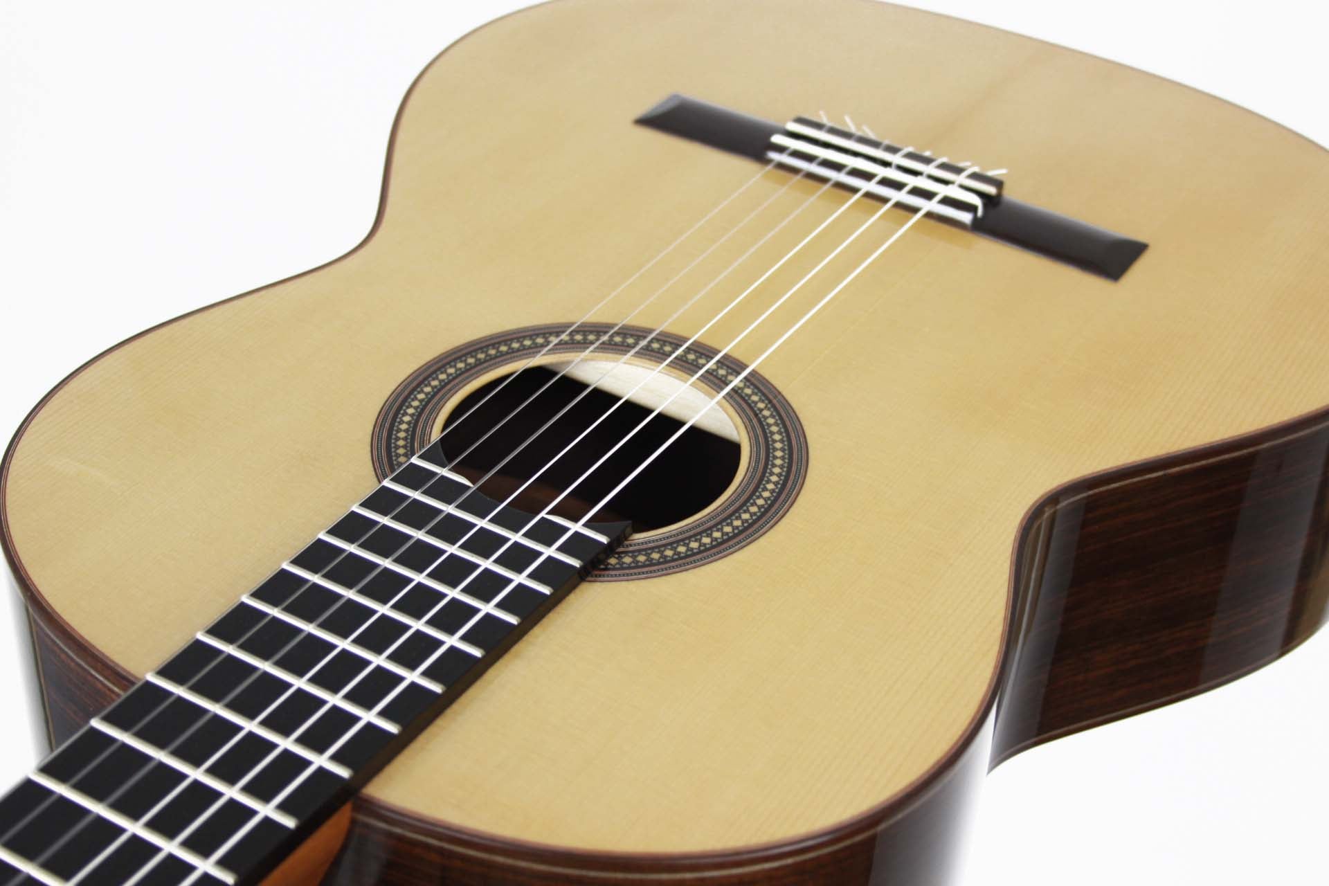 Die klassische Gitarre mit ihren weichen Nylonsaiten und ihrem charakteristischen Timbre ist zum Symbol der Kammermusik, der spanischen Tradition und des Konzertrepertoires geworden. Ihre moderne Form prägte Antonio de Torres im 19. Jahrhundert, indem er den Standard für Korpus, Fächerbeleistung und die 65-Zentimeter-Mensur setzte, die bis heute verwendet werden. Instrumente dieser Kategorie eröffnen eine reiche Palette von den feinen romantischen Miniaturen Tárregas bis zu den majestätischen Konzerten Rodrigos. Hier finden Sie Gitarren, die historische Kontinuität bewahren und zugleich zu neuen Interpretationen anregen.Alle Gitarren der Kollektion ansehen -