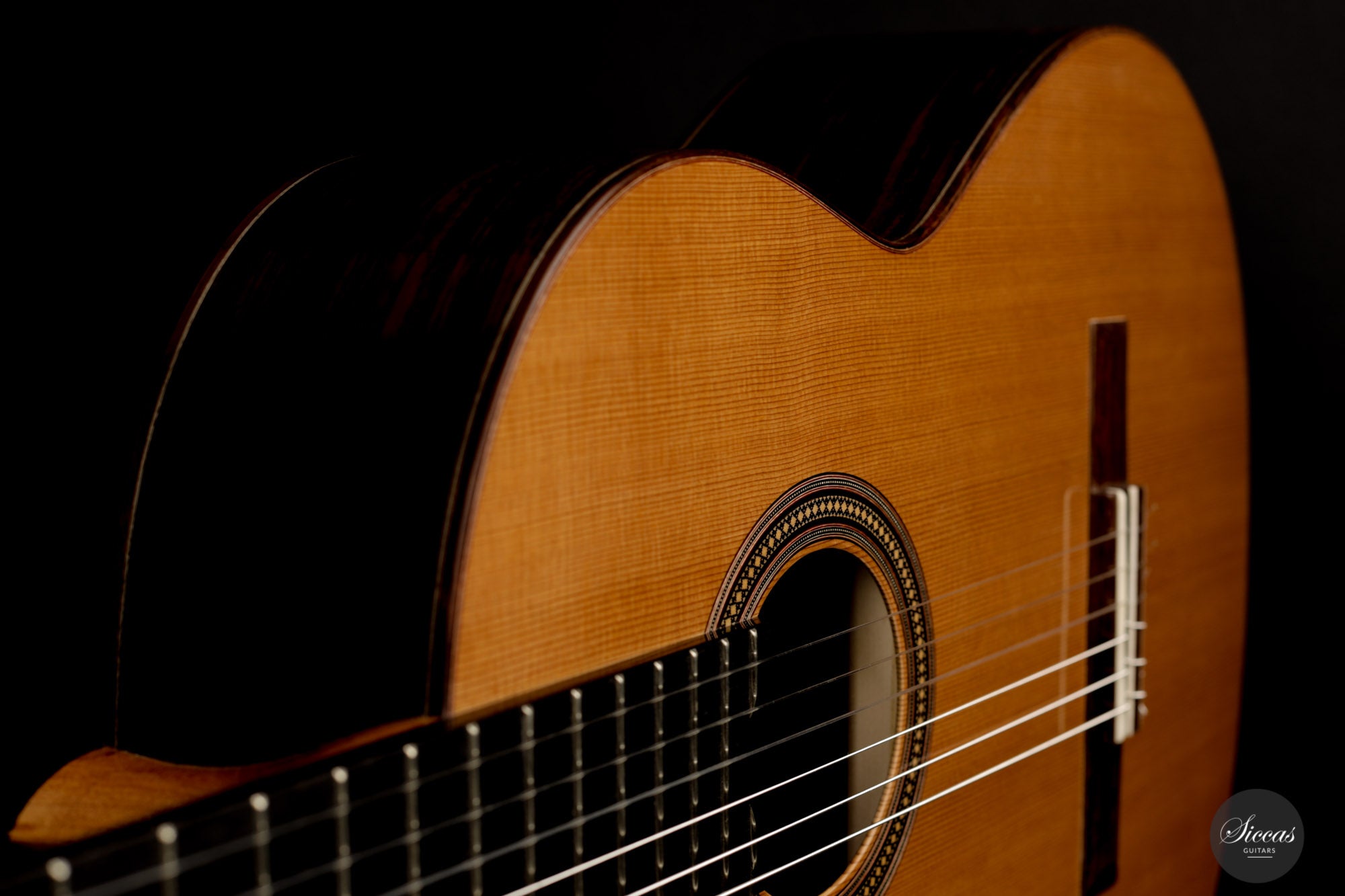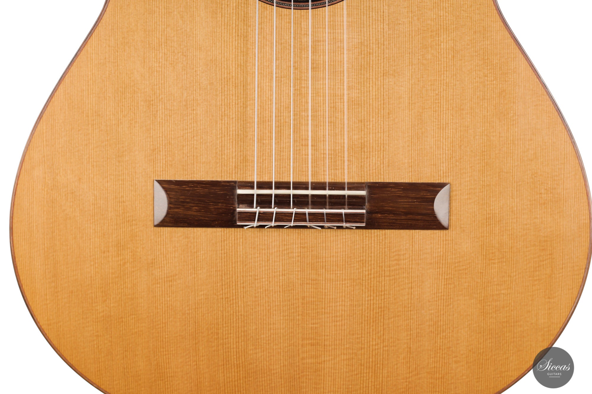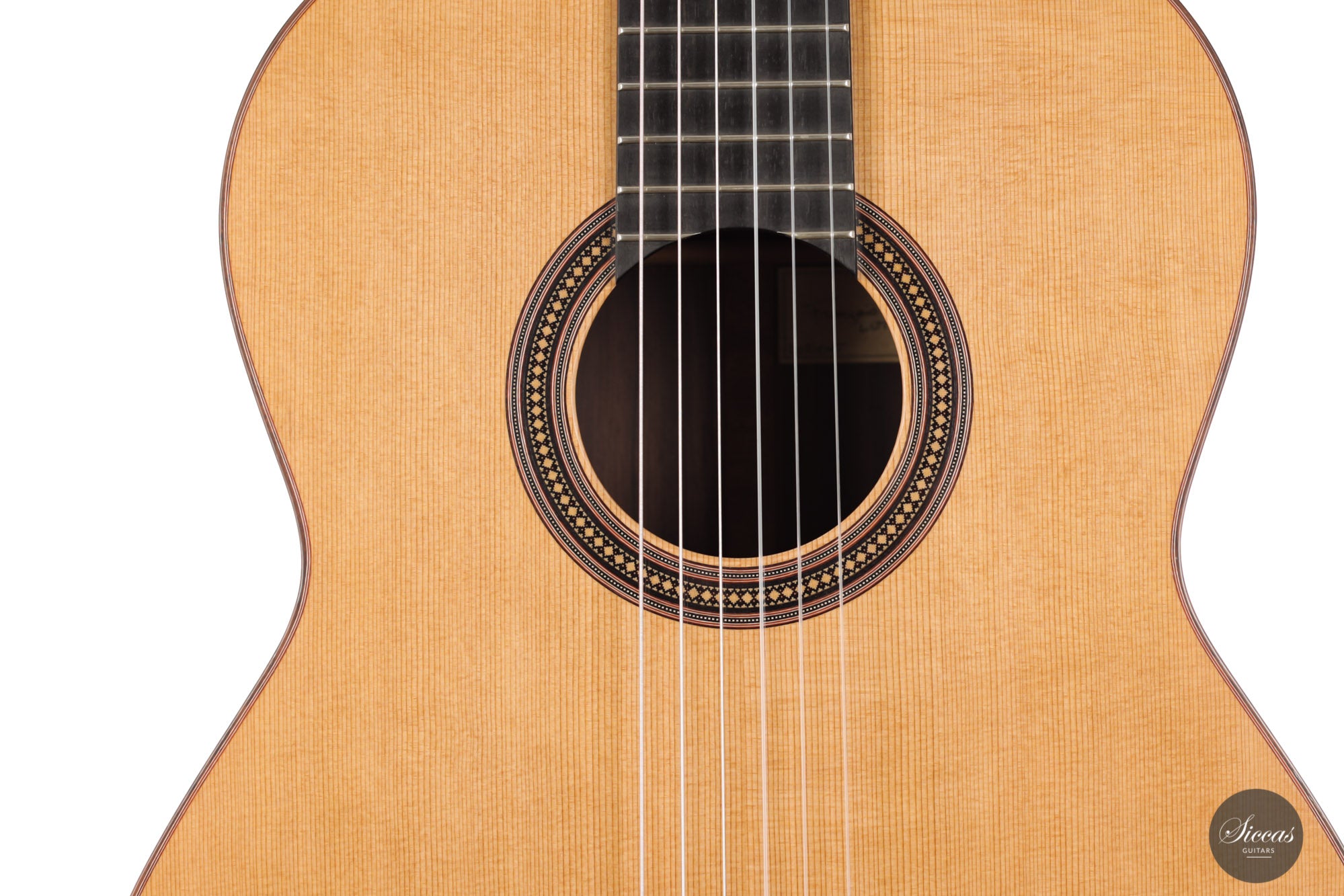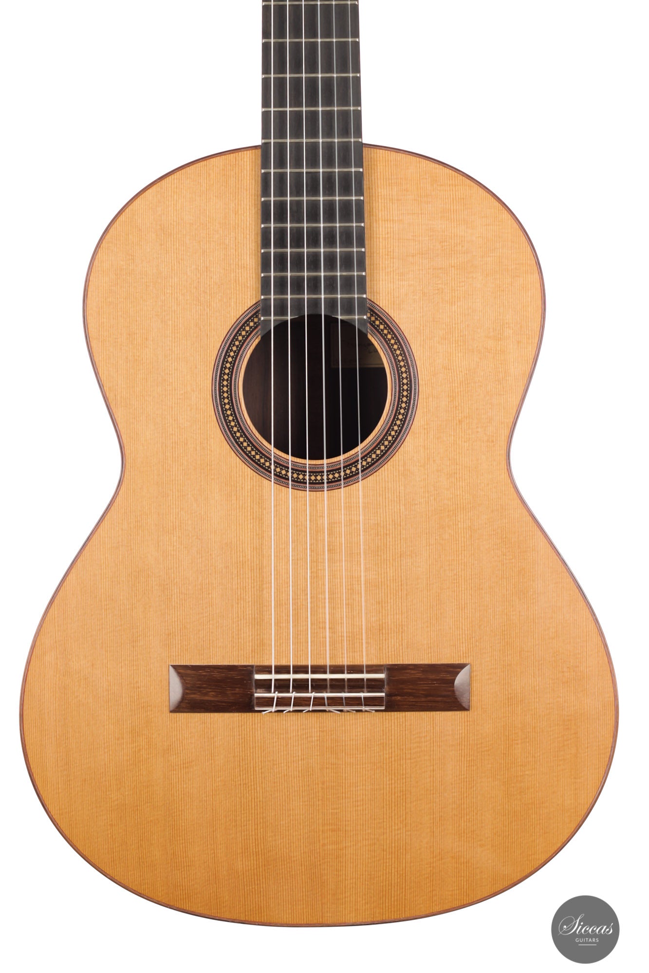 One can find in this instrument all the qualities that characterize a great concert guitar. The volume is impressive, and the sound quality is enchanting. In addition, the wide range of timbres and the fast response of the soundboard make it a truly versatile guitar. Also, its warm, cedar-wood typical tone with optimal clarity and separation achieves a perfect balance. Once again, it is our great pleasure to offer this outstanding guitar, built by one of the most renowned French luthiers of the present day.