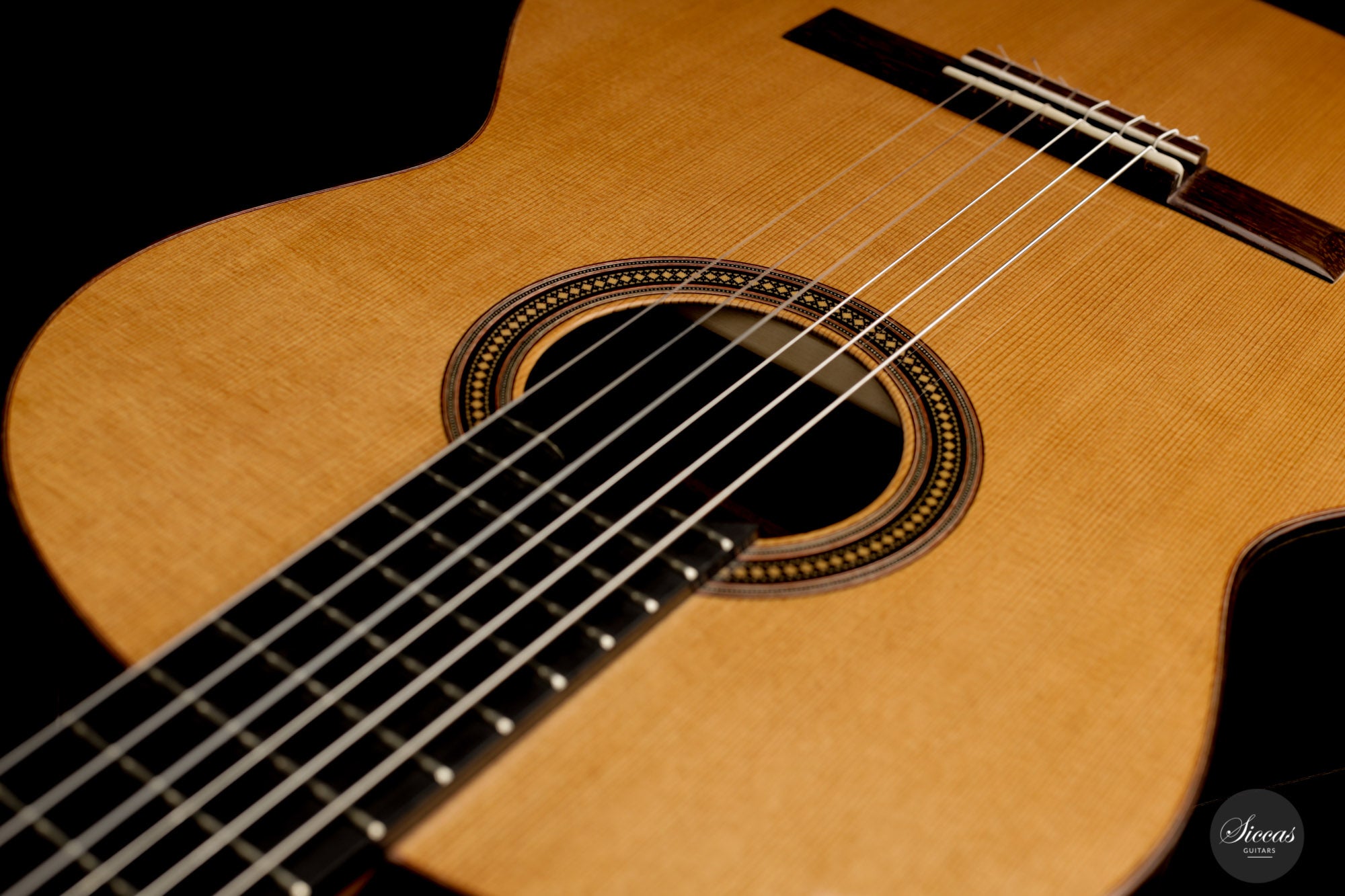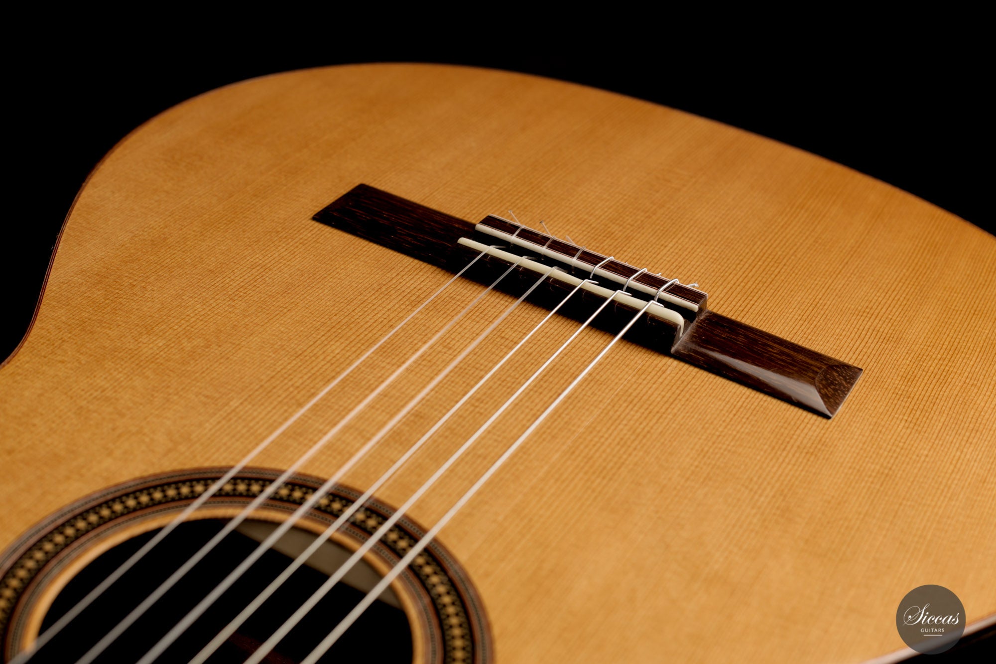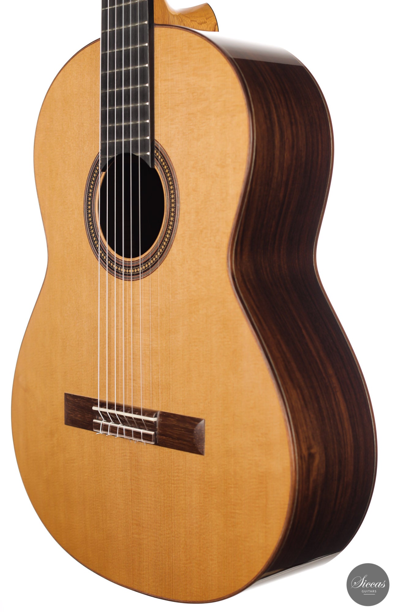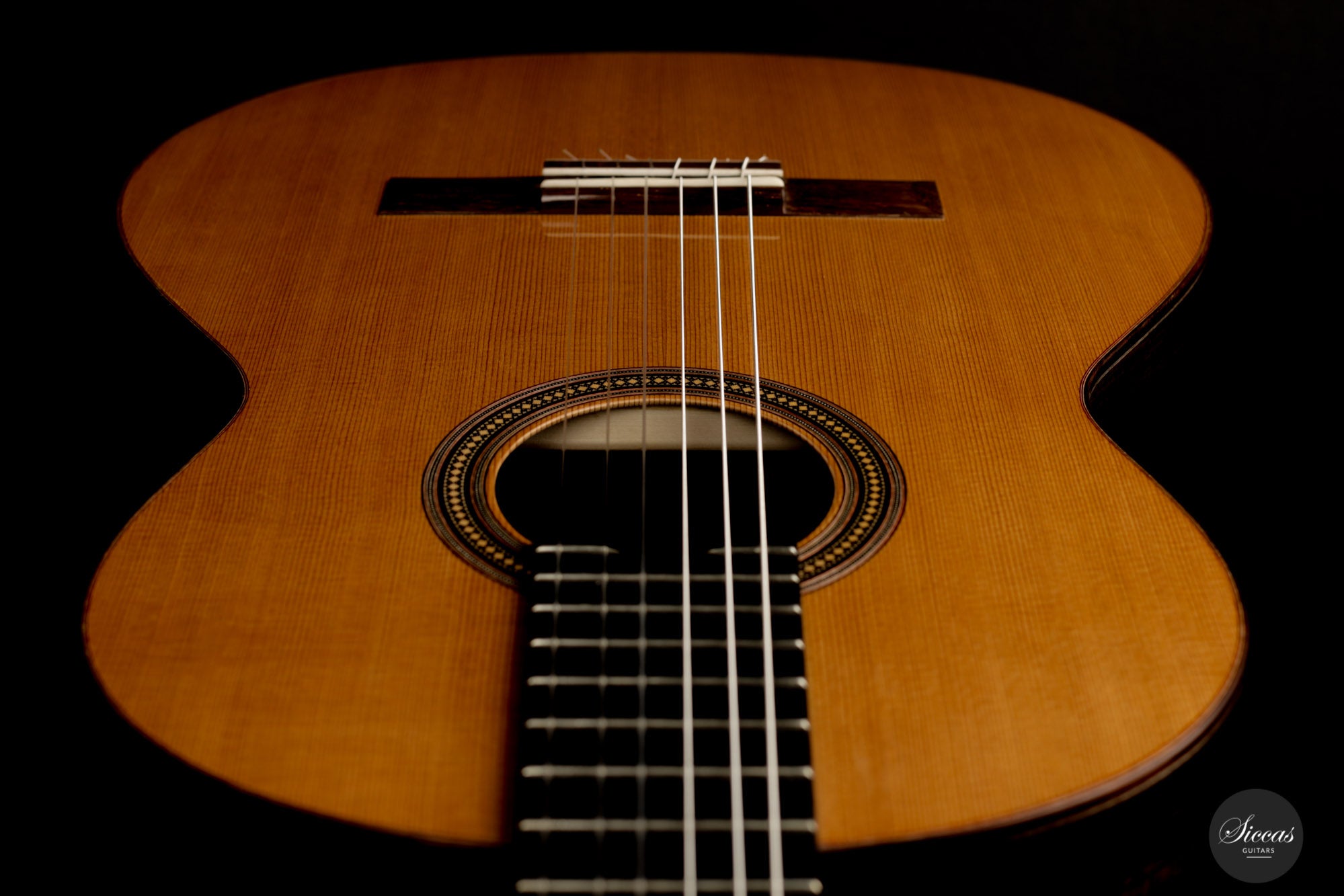 One can find in this instrument all the qualities that characterize a great concert guitar. The volume is impressive, and the sound quality is enchanting. In addition, the wide range of timbres and the fast response of the soundboard make it a truly versatile guitar. Also, its warm, cedar-wood typical tone with optimal clarity and separation achieves a perfect balance. Once again, it is our great pleasure to offer this outstanding guitar, built by one of the most renowned French luthiers of the present day.