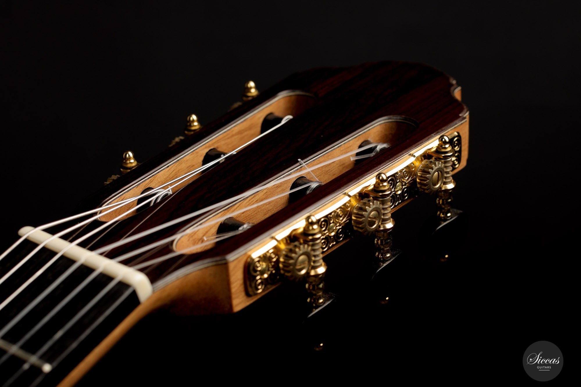 Gitarrenbauer: José Luis RomanillosBaujahr: 1979Decke: SpruceBoden und Zargen: Indian rosewoodDeckenoberfläche: French polishKorpusoberfläche: French polishLuftresonanz: G / G sharpGewicht (g): 1410Mechaniken: RodgersZustand: Excellent