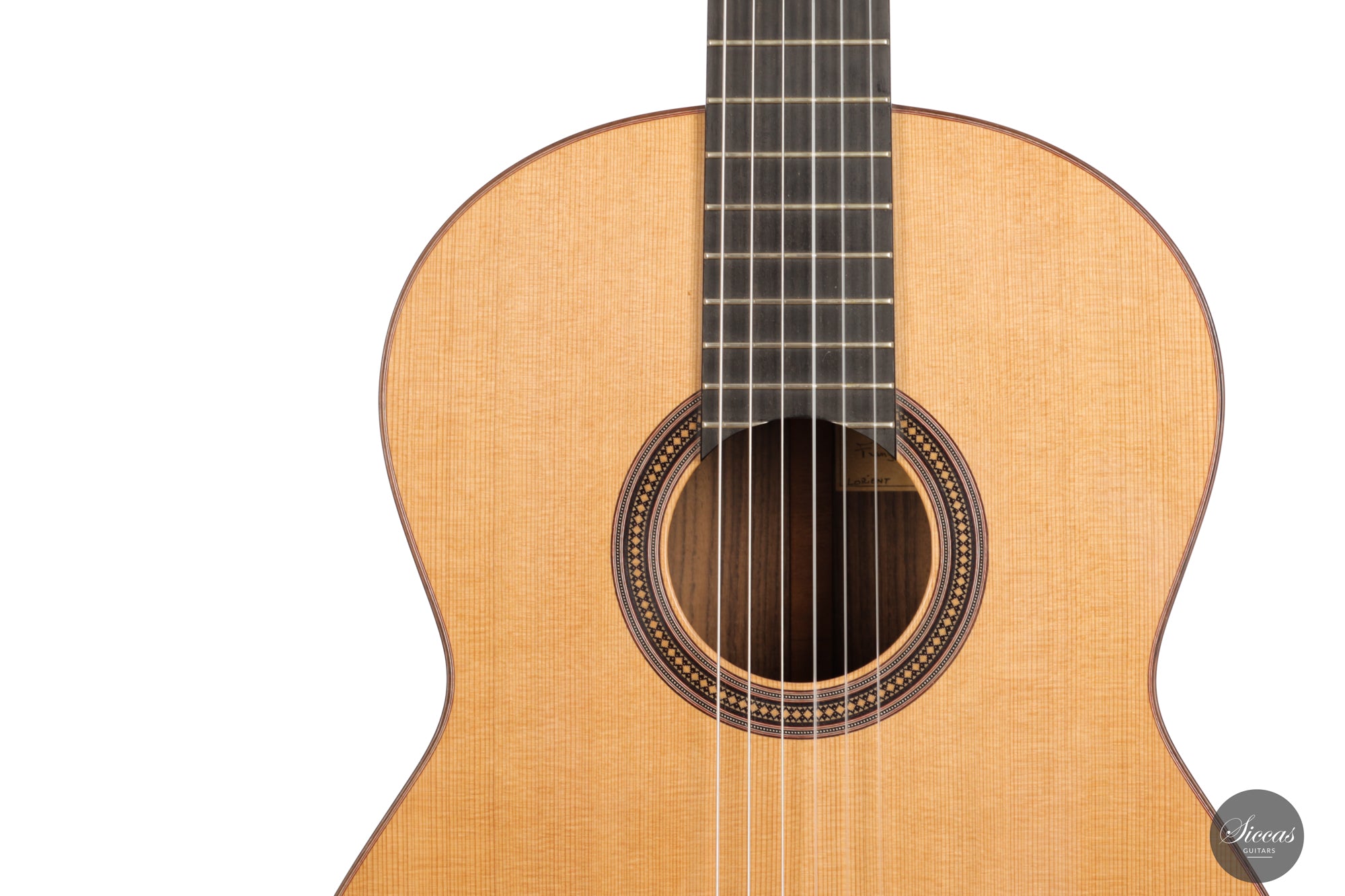 Die klassische Gitarre mit ihren weichen Nylonsaiten und ihrem charakteristischen Timbre ist zum Symbol der Kammermusik, der spanischen Tradition und des Konzertrepertoires geworden. Ihre moderne Form prägte Antonio de Torres im 19. Jahrhundert, indem er den Standard für Korpus, Fächerbeleistung und die 65-Zentimeter-Mensur setzte, die bis heute verwendet werden. Instrumente dieser Kategorie eröffnen eine reiche Palette von den feinen romantischen Miniaturen Tárregas bis zu den majestätischen Konzerten Rodrigos. Hier finden Sie Gitarren, die historische Kontinuität bewahren und zugleich zu neuen Interpretationen anregen.