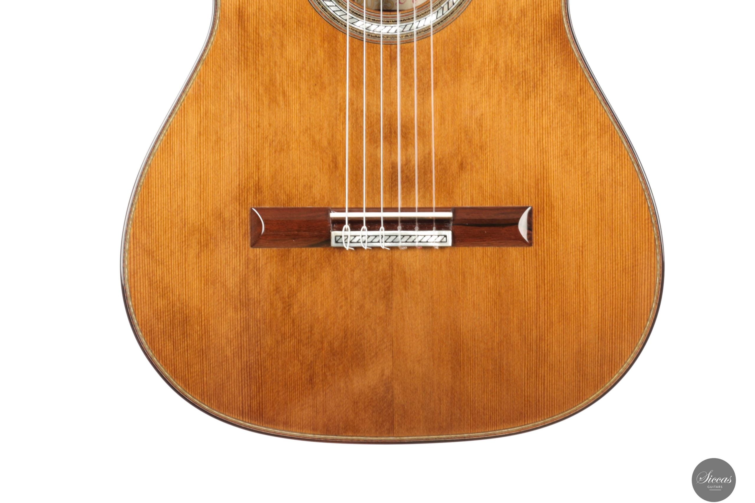 Gerardo orientiert sich beim Bau seiner Gitarren stark an den klassischen spanischen Konstruktionsprinzipien. Diese Gitarre verfügt über eine siebenfache Fächerbeleistung der Decke, wobei die äußersten Leisten durch Öffnungen in der unteren Harmonieleiste geführt werden. Zusätzlich verlaufen vier weitere Leisten im oberen Bereich vom Halsfuß aus fächerförmig in Richtung Schallloch und verstärken so gezielt den Bereich unter dem Griffbrett.