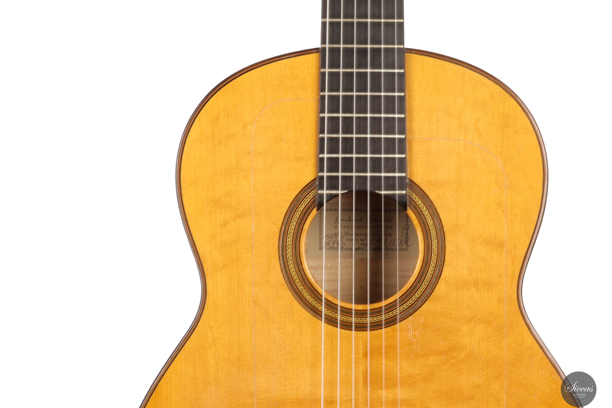 Gerhard Schnabl begann seine berufliche Laufbahn in jungen Jahren als Lehrling im Tischlerhandwerk. Er änderte jedoch schnell seinen Kurs und begann, gezupfte Instrumente zu bauen, um 1968 an der Handwerkskammer Nürnberg zum Meisterluthier zu werden. 1975 eröffnete er seine eigene Werkstatt in Bubenreuth und zog später in die benachbarte Stadt Bräuningshof, wo er bis heute Gitarren baut. Sein Handwerk zeichnet sich durch eine konsequente traditionelle Bauweise aus, und seine Gitarren wurden von bekannten Künstlern wie Manuel Barrueco und Frank Burgarten gespielt.