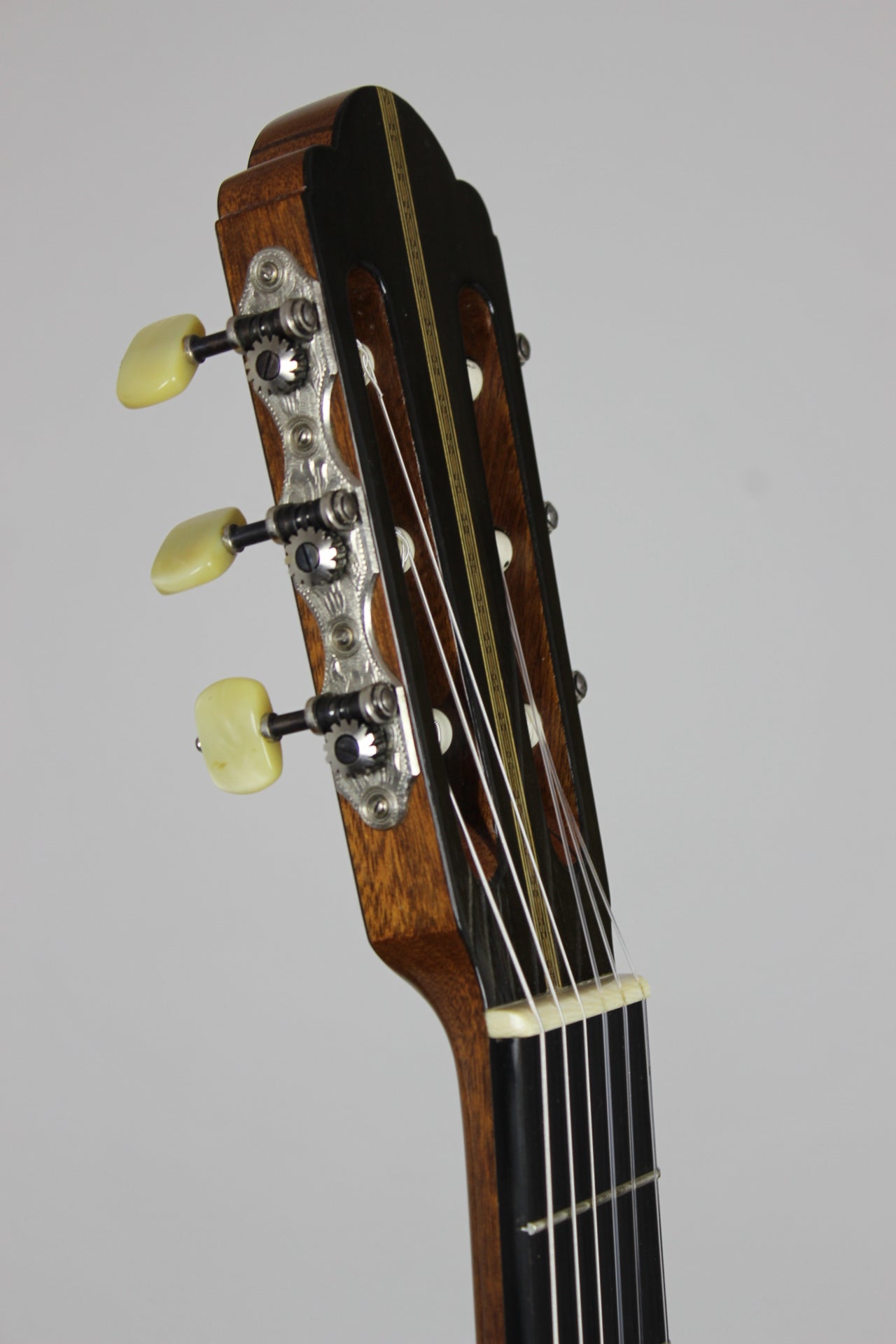 Gerold Hannabach (1928-2015) was born in Schönbach, Czechoslovakia into a family with a long tradition in the building of music instruments. In 1948 he did his apprenticeship in the workshop of Arnold Hoyer in Bubenreuth. After that he opened an own workshop for classical guitars and for resale in 1953.In later years Gerold Hannabach taught at the School for Music Instrument manufacture in Bubenreuth. He has crafted many instruments for solo artists and in recent years focused solely on the manufacture of custom classical guitars and ukuleles. This guitar was made by Hannabach in 1968. The machine heads are original by Landstorfer/Reischl. It's in good condition and has no repairs or cracks.