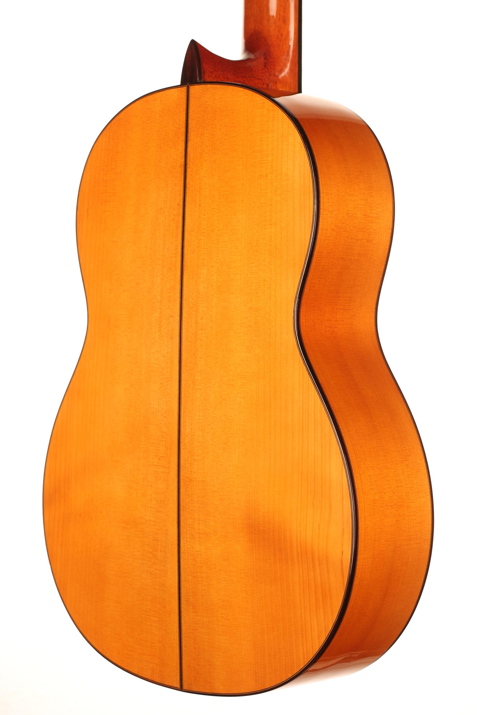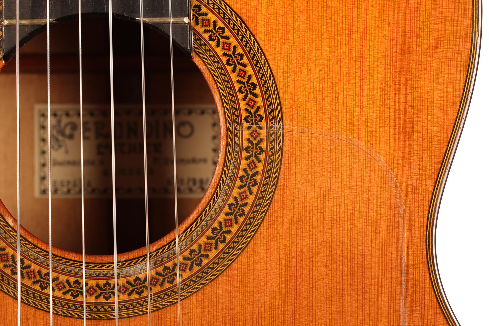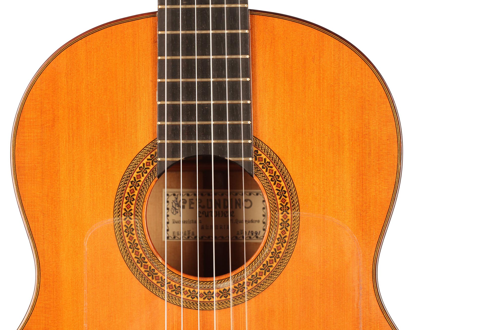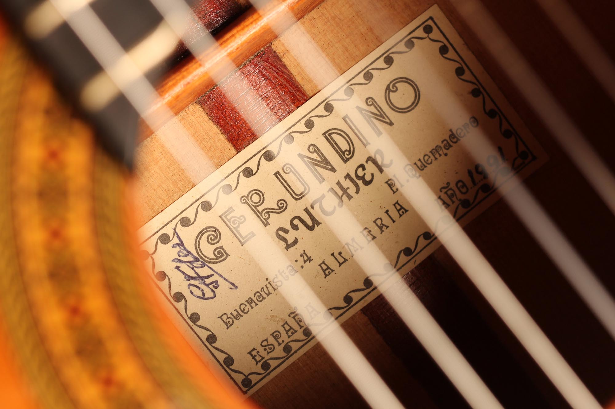 Gerundino Fernandez (1931-2006) gilt als einer der größten Flamencogitarrenbauer des späten 20. Jahrhunderts. Seine Gitarren sind absolut fantastisch und kombinieren eine große Klangkomplexität, Farbmöglichkeiten und haben eine sehr perkussive Ansprache. Dieses großartige Instrument wurde 1991 gebaut und hat eine feine Zederndecke. Es ist in gutem Zustand und erstaunlich gut zu spielen.