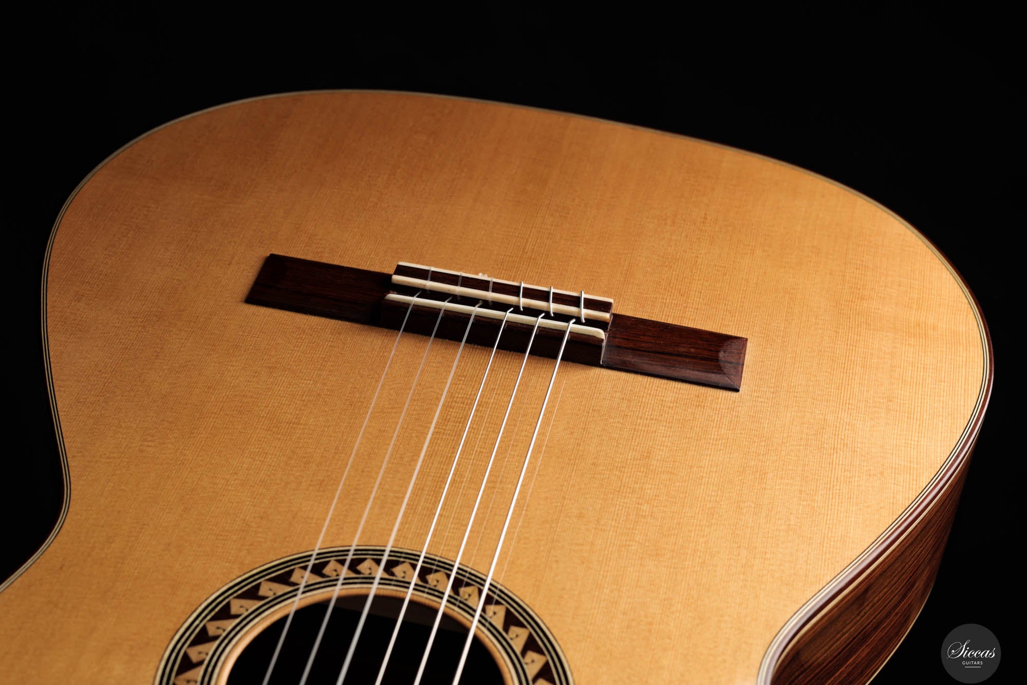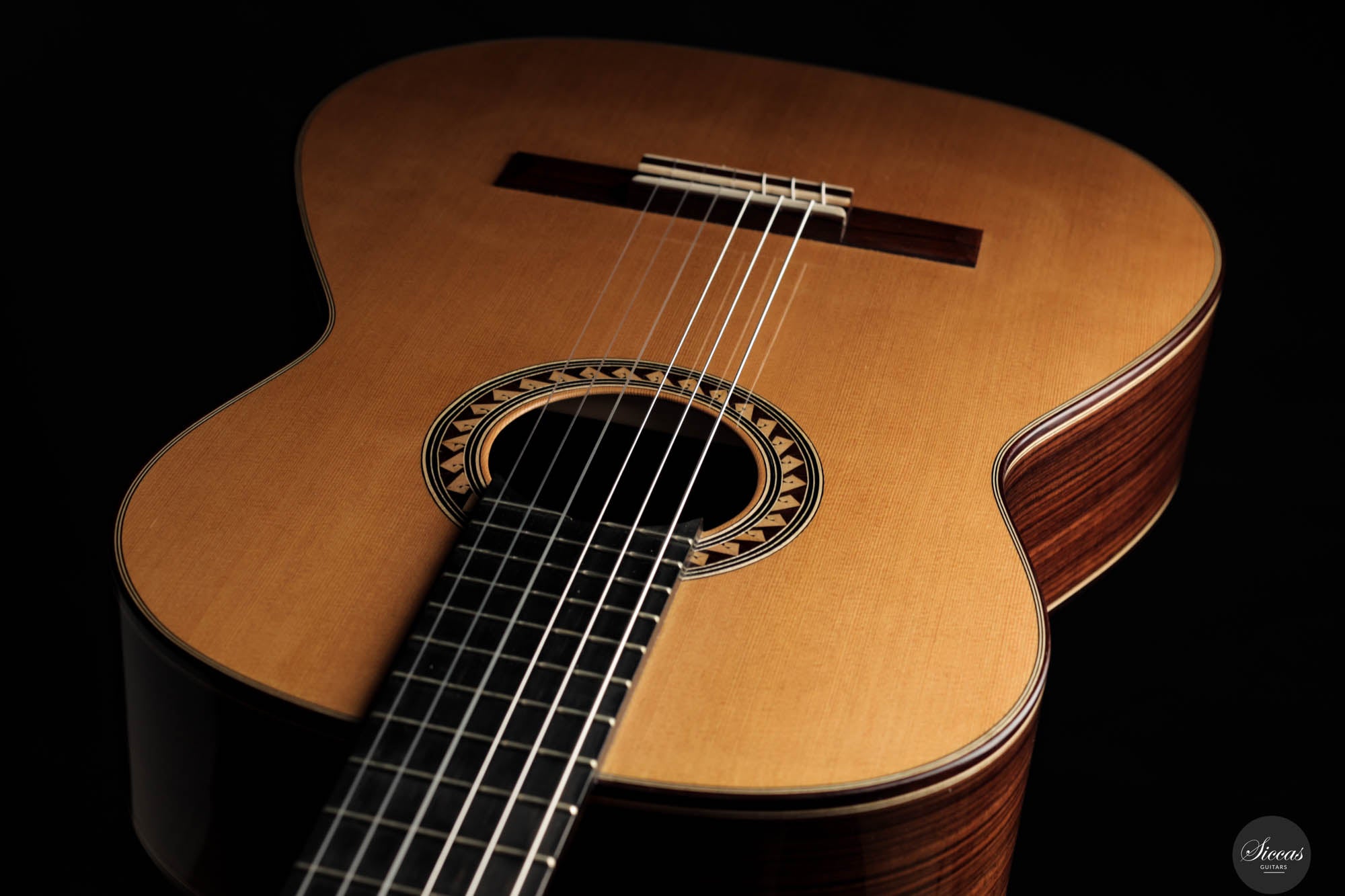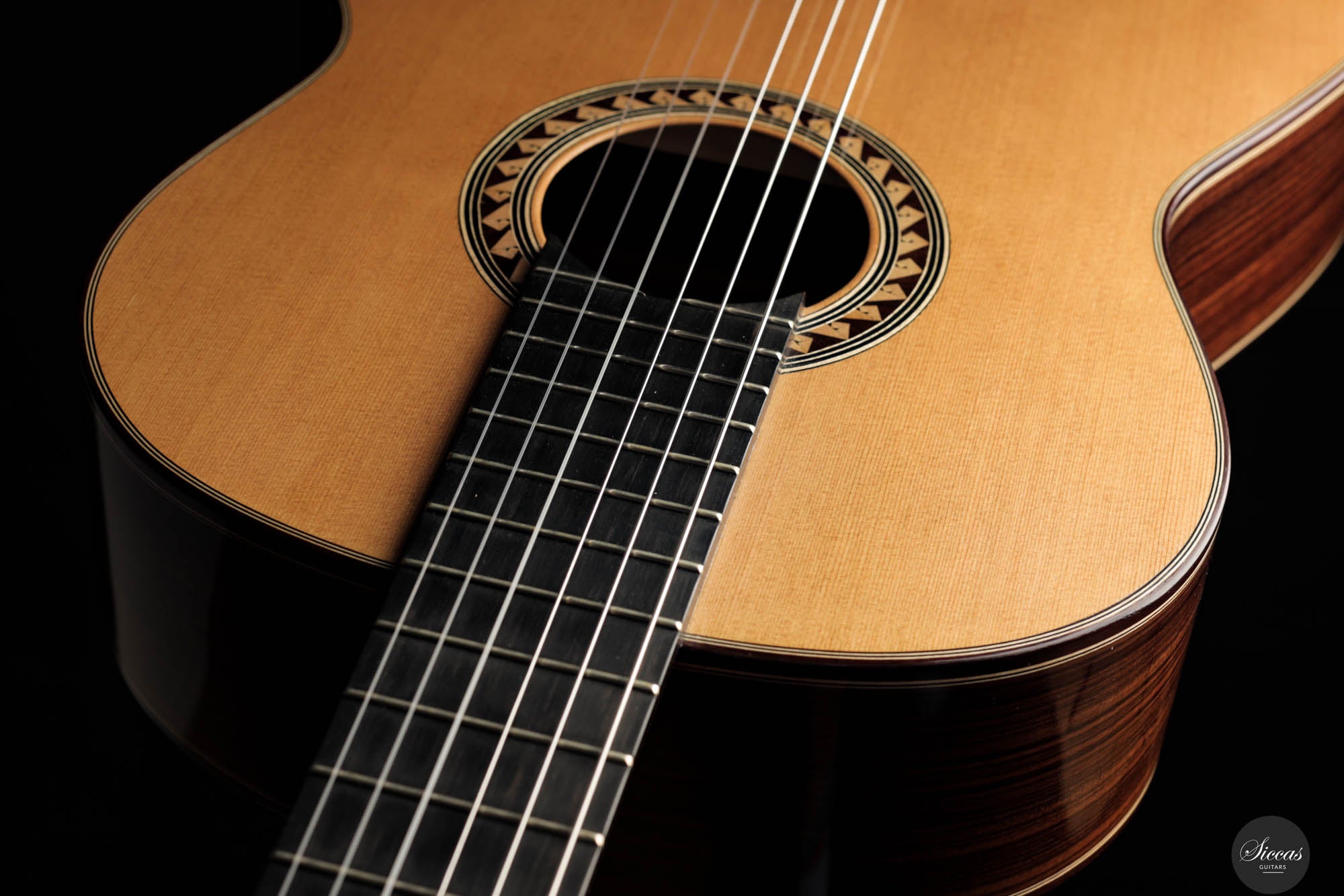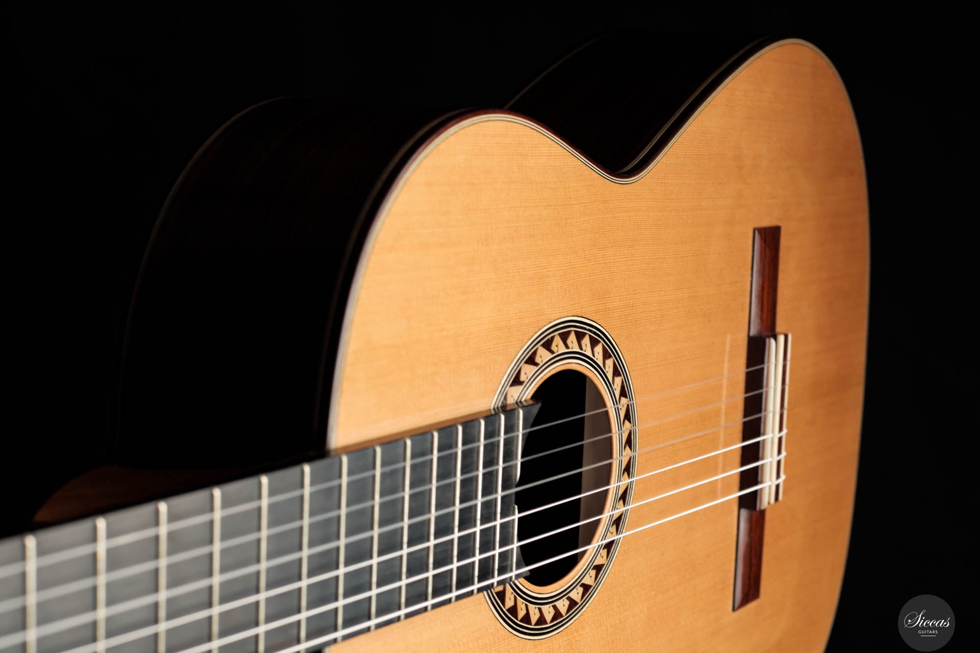 Die klassische Gitarre mit ihren weichen Nylonsaiten und ihrem charakteristischen Timbre ist zum Symbol der Kammermusik, der spanischen Tradition und des Konzertrepertoires geworden. Ihre moderne Form prägte Antonio de Torres im 19. Jahrhundert, indem er den Standard für Korpus, Fächerbeleistung und die 65-Zentimeter-Mensur setzte, die bis heute verwendet werden. Instrumente dieser Kategorie eröffnen eine reiche Palette von den feinen romantischen Miniaturen Tárregas bis zu den majestätischen Konzerten Rodrigos. Hier finden Sie Gitarren, die historische Kontinuität bewahren und zugleich zu neuen Interpretationen anregen.