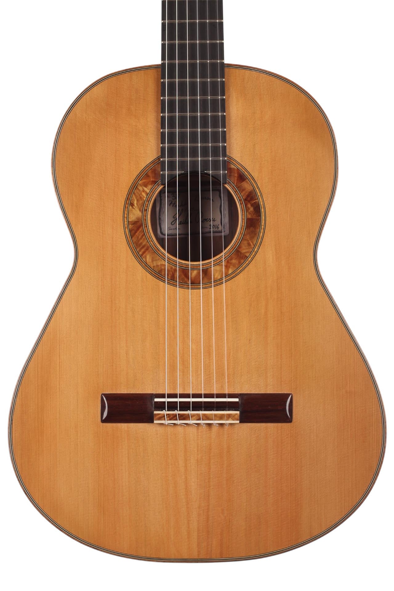 Der schwedische Gitarrenbauer Heikki Rousu baut seit 1990 Gitarren und hat mittlerweile über 300 Instrumente gebaut. Diese Gitarre wurde 2016 gebaut und hat eine Decke aus Zeder. Für Boden und Zargen wurde Madagaskarpalisander gewählt. Das Instrument wurde mit einer Schellackhandpolitur veredelt. Die Mechaniken sind von Rubner. Ein Hartschalenkoffer von Hiscox ist inklusive.