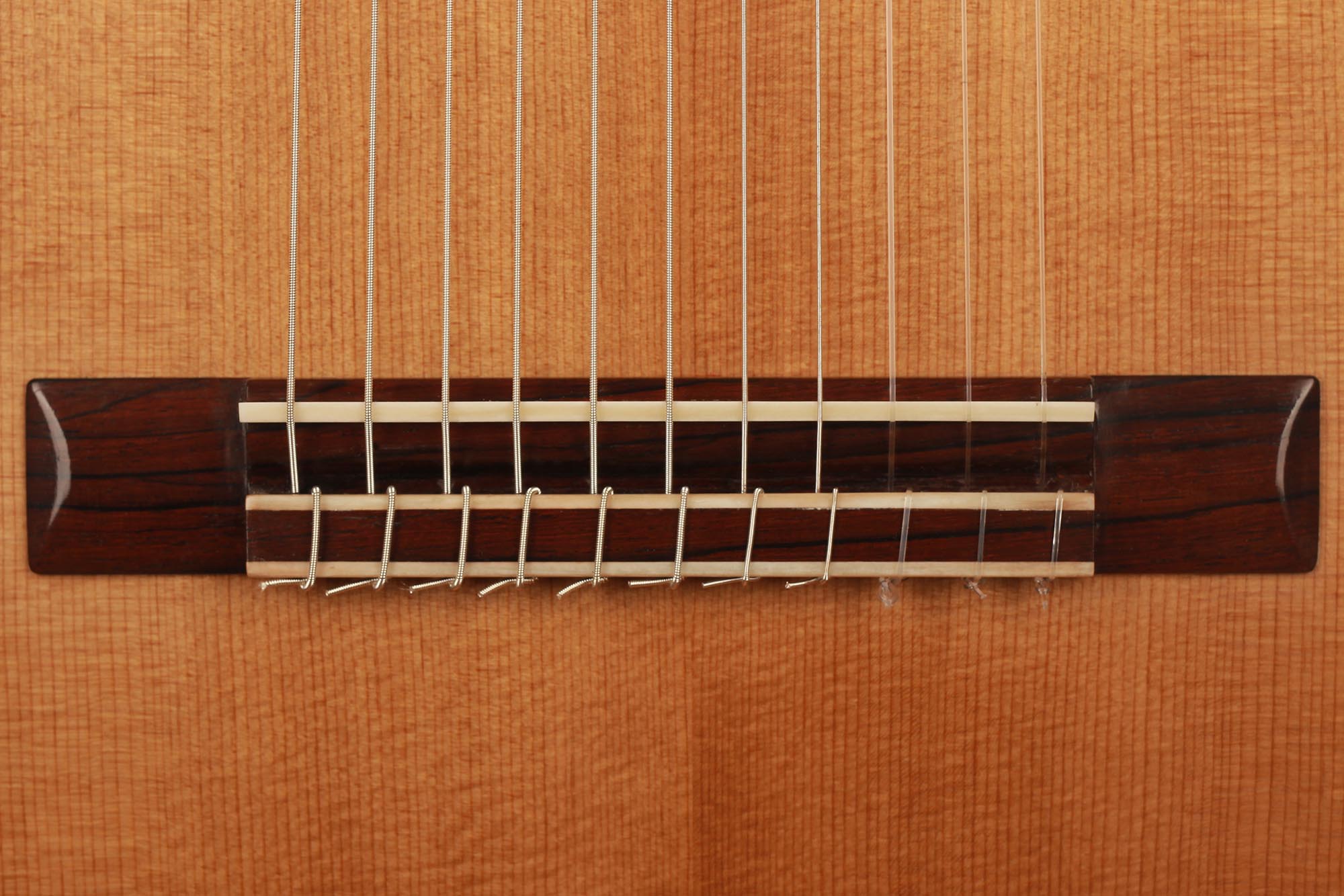 This beautiful Swedish guitar was built by the luthier Heikki Rousu. He has been building guitars since 1990 and has crafted more than 300 instruments by now. This special instrument is an eleven-string guitar, also known as alto guitar or Bolin guitar. This extended-range classical guitar was developed by the Swedish luthier Georg Bolin in the 1960s and has been largely popularized by guitarists Per-Olof Johnson and Göran Söllscher.
