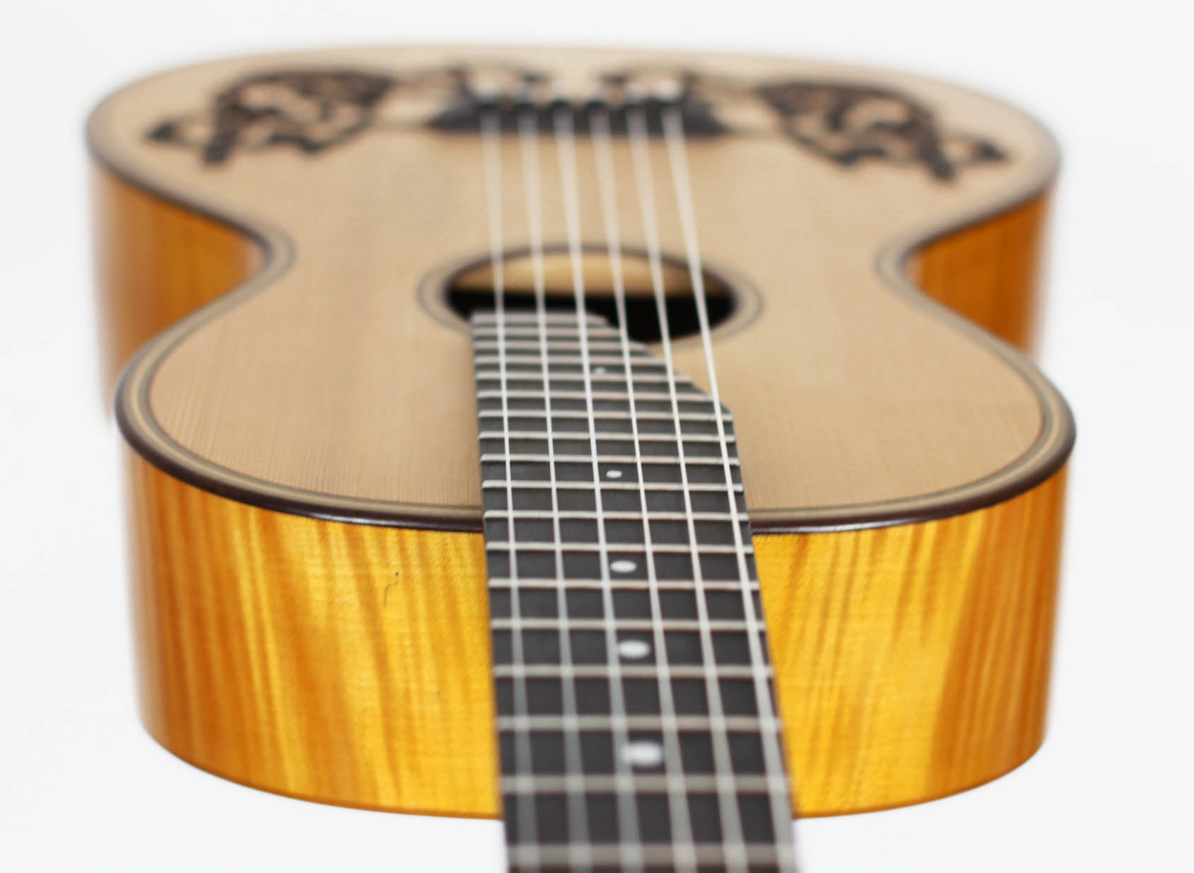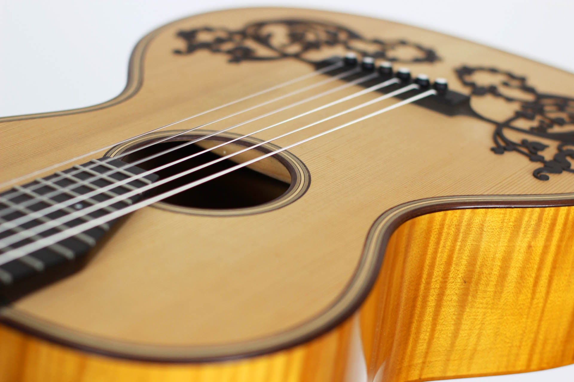 Die klassische Gitarre mit ihren weichen Nylonsaiten und ihrem charakteristischen Timbre ist zum Symbol der Kammermusik, der spanischen Tradition und des Konzertrepertoires geworden. Ihre moderne Form prägte Antonio de Torres im 19. Jahrhundert, indem er den Standard für Korpus, Fächerbeleistung und die 65-Zentimeter-Mensur setzte, die bis heute verwendet werden. Instrumente dieser Kategorie eröffnen eine reiche Palette von den feinen romantischen Miniaturen Tárregas bis zu den majestätischen Konzerten Rodrigos. Hier finden Sie Gitarren, die historische Kontinuität bewahren und zugleich zu neuen Interpretationen anregen.Alle Produkte der Kollektion ansehen -