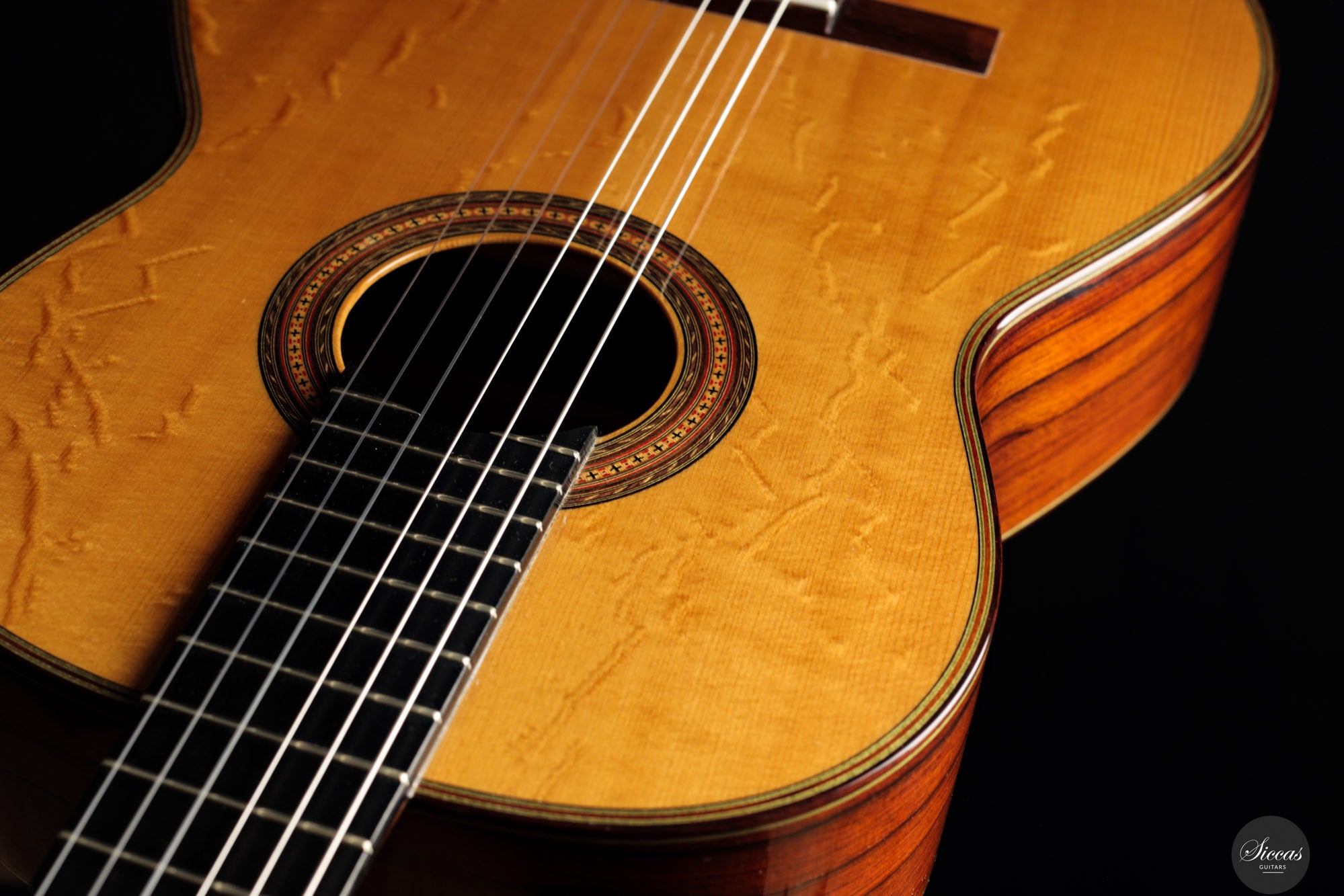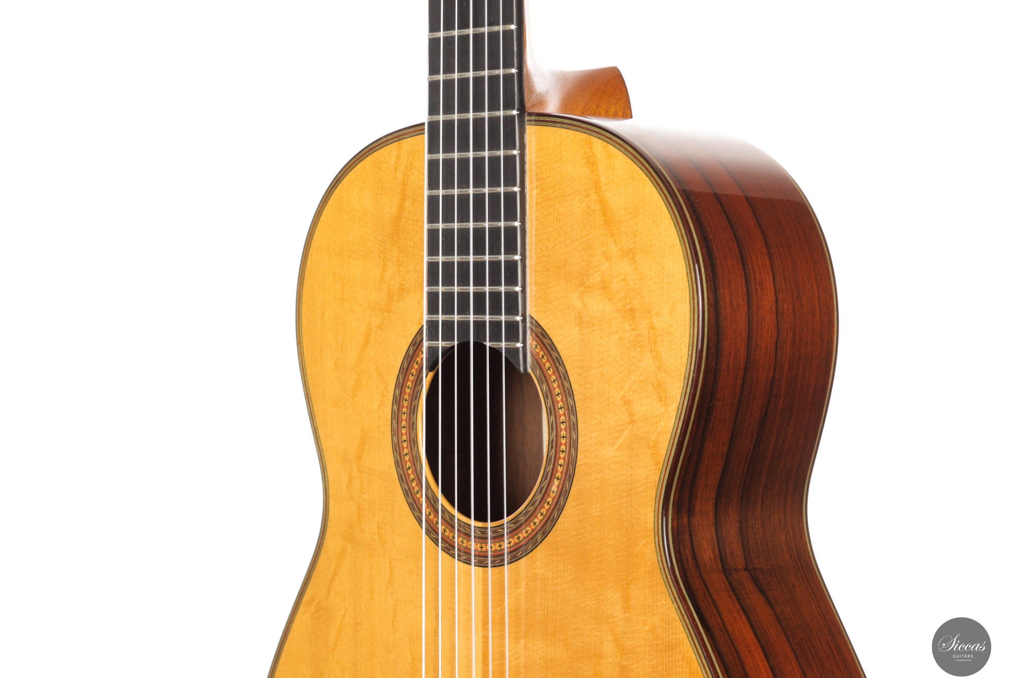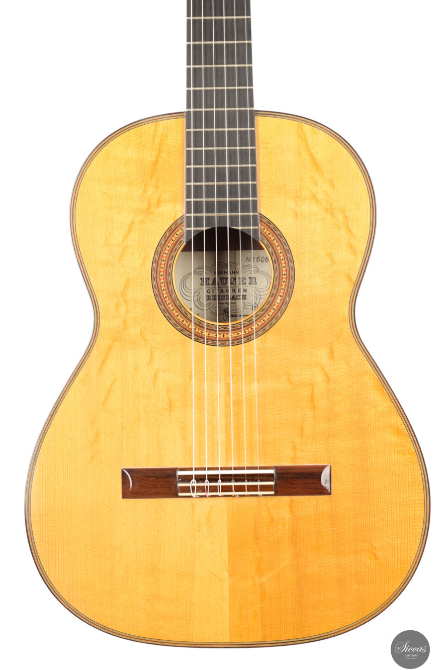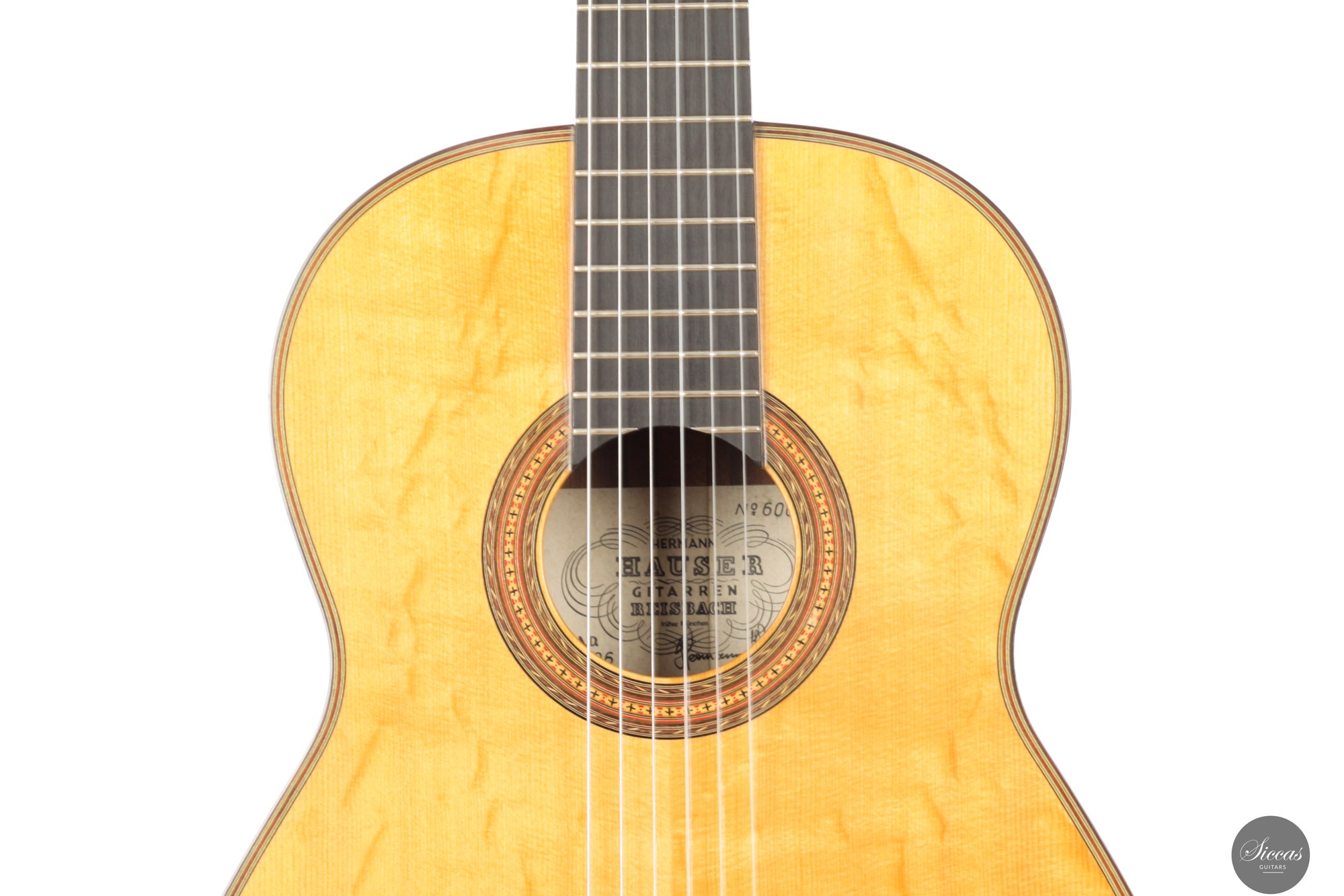 Hermann Hauser III, geboren 1958, führt die traditionsreiche Linie der Familie Hauser fort, die mit Hermann Hauser I begann. Dessen Instrumente wurden von Legenden wie Miguel Llobet und Andrés Segovia gespielt, der seine Hauser-Gitarre als „die größte Gitarre unserer Epoche“ bezeichnete. Seit 1974 arbeitet Hermann Hauser III eigenständig in der Familienwerkstatt in Reisbach, Deutschland, und verbindet tiefen Respekt für die Methoden seiner Vorfahren mit einer eigenen, verfeinerten Herangehensweise. Seine Gitarren entstehen in streng limitierter Zahl, wobei jedes Instrument hunderte von Arbeitsstunden verkörpert. Sie gelten weltweit als Inbegriff von klanglicher Reinheit, Balance und Raffinesse. Bedeutende Künstler wie Pepe Romero haben Hauser III als einen der führenden Gitarrenbauer unserer Zeit gewürdigt.Über die Gitarre: