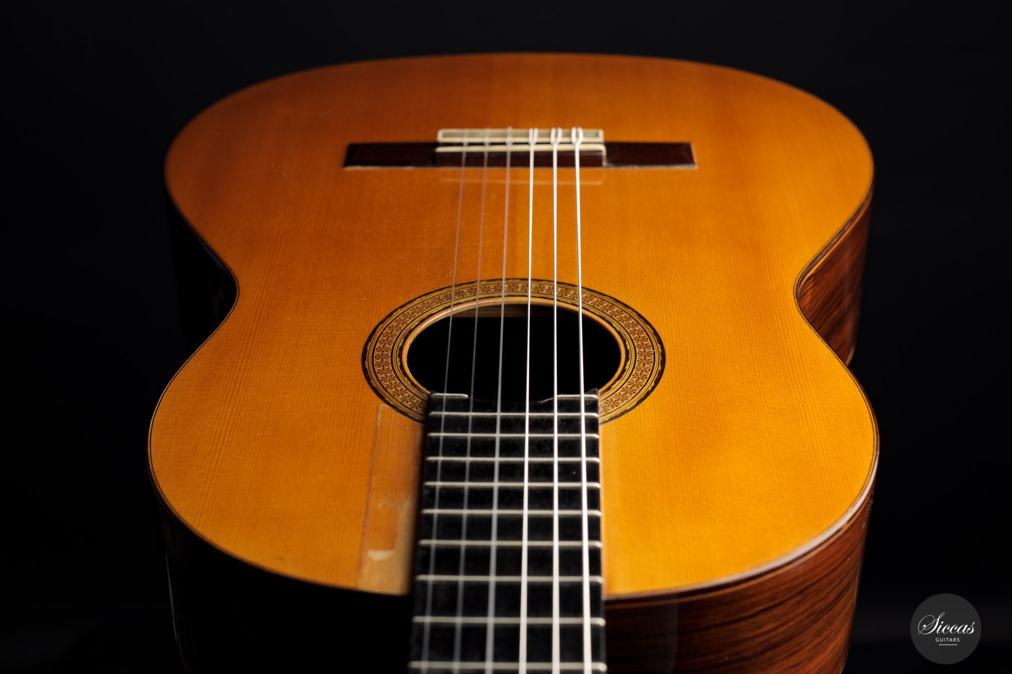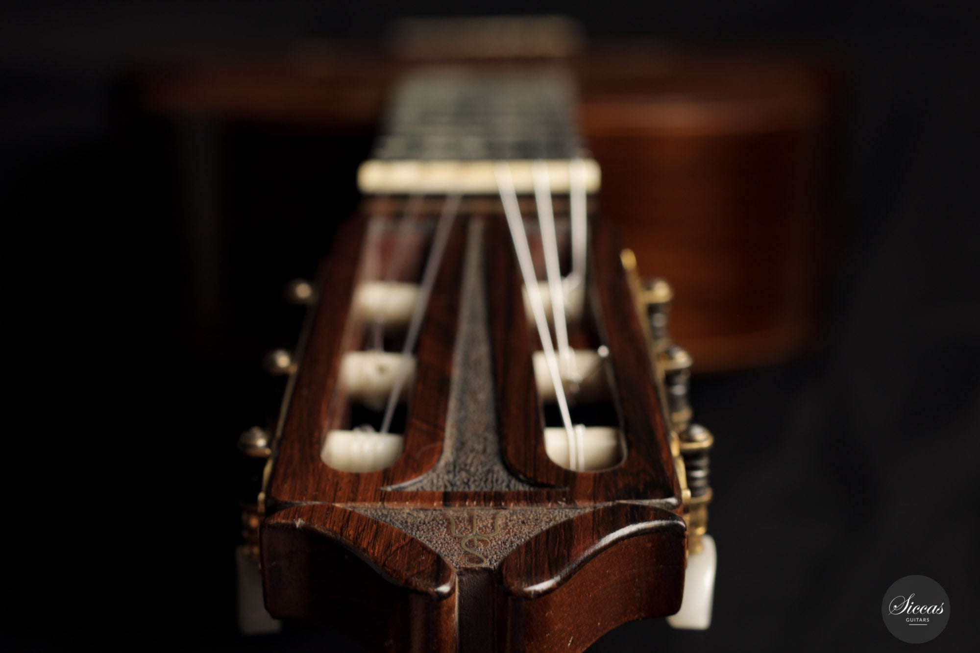 This most impressive guitar with spruce top and Brazilian rosewood back and sides (CITES certified) from 1961, number 193, belonged to Regino Sainz de la Maza. It bears the maestro's initials engraved on the headstock, making it probably Hernandez y Aguado's most remarkable and important guitar. Regino Sainz de la Maza (1896-1981) was a world-famous Spanish guitarist to whom the composer Joaquin Rodrigo dedicated his most famous work, the Concierto de Aranjuez, which was premiered by Sainz de la Maza in 1940.
