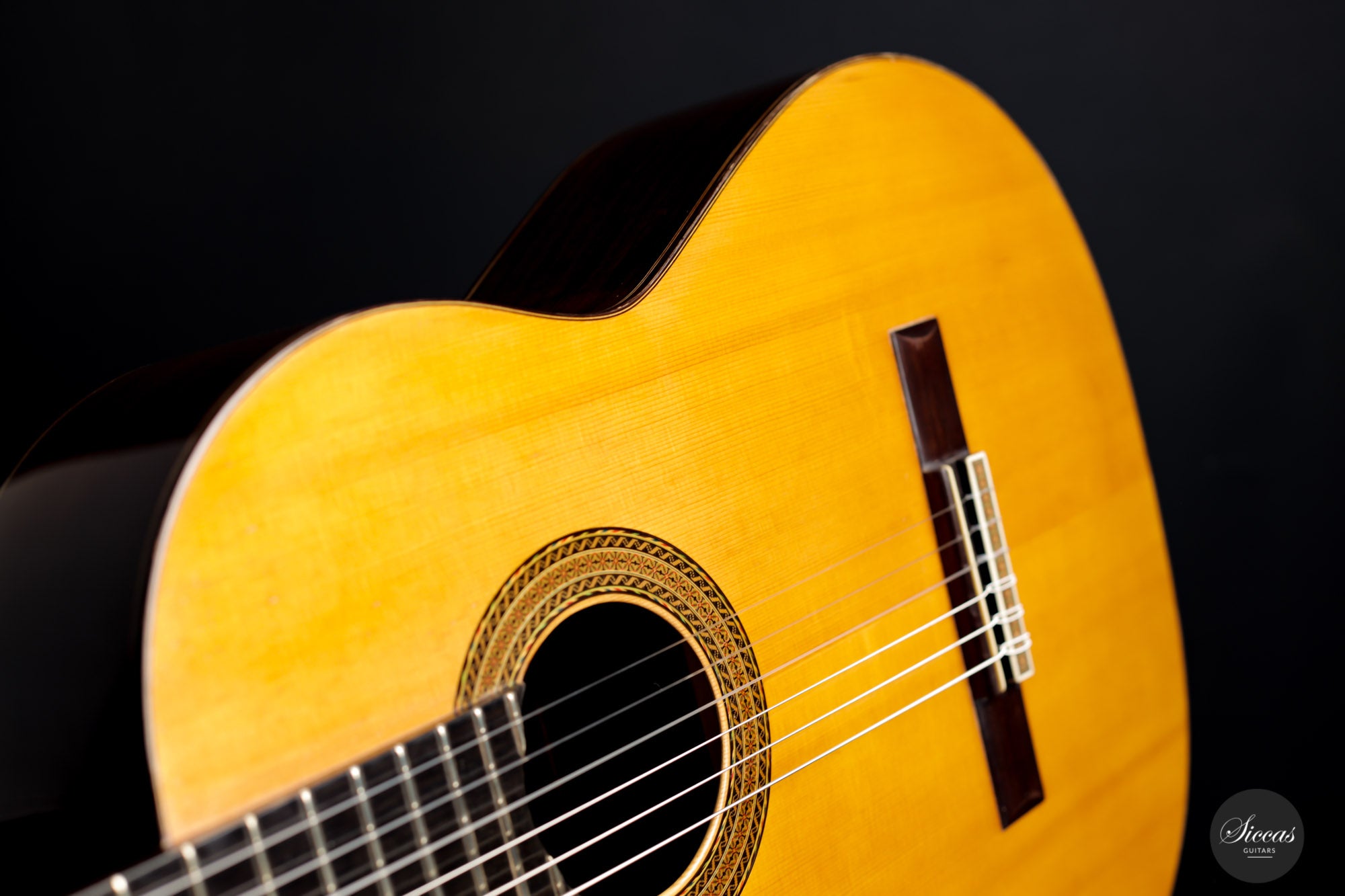 Dieses Meisterwerk wurde 1966 gebaut und ist trägt die Nummer 311. Sie wurde auf dem Etikett und auf der Innenseite des Instruments mit einem eleganten grünen Bleistift signiert. Nicht nur ist sie in einem verblüffend guten Zustand mit nur oberflächlichen Spielspuren, auch der originale Obersattel und die Stegeinlage sind erhalten geblieben. Der Obersattell ist faszinierend, da Hernandez y Aguado ihn immer zweifarbig gestalteten, indem ein Stück Knochen mit Ebenholz unterlegt wurde.