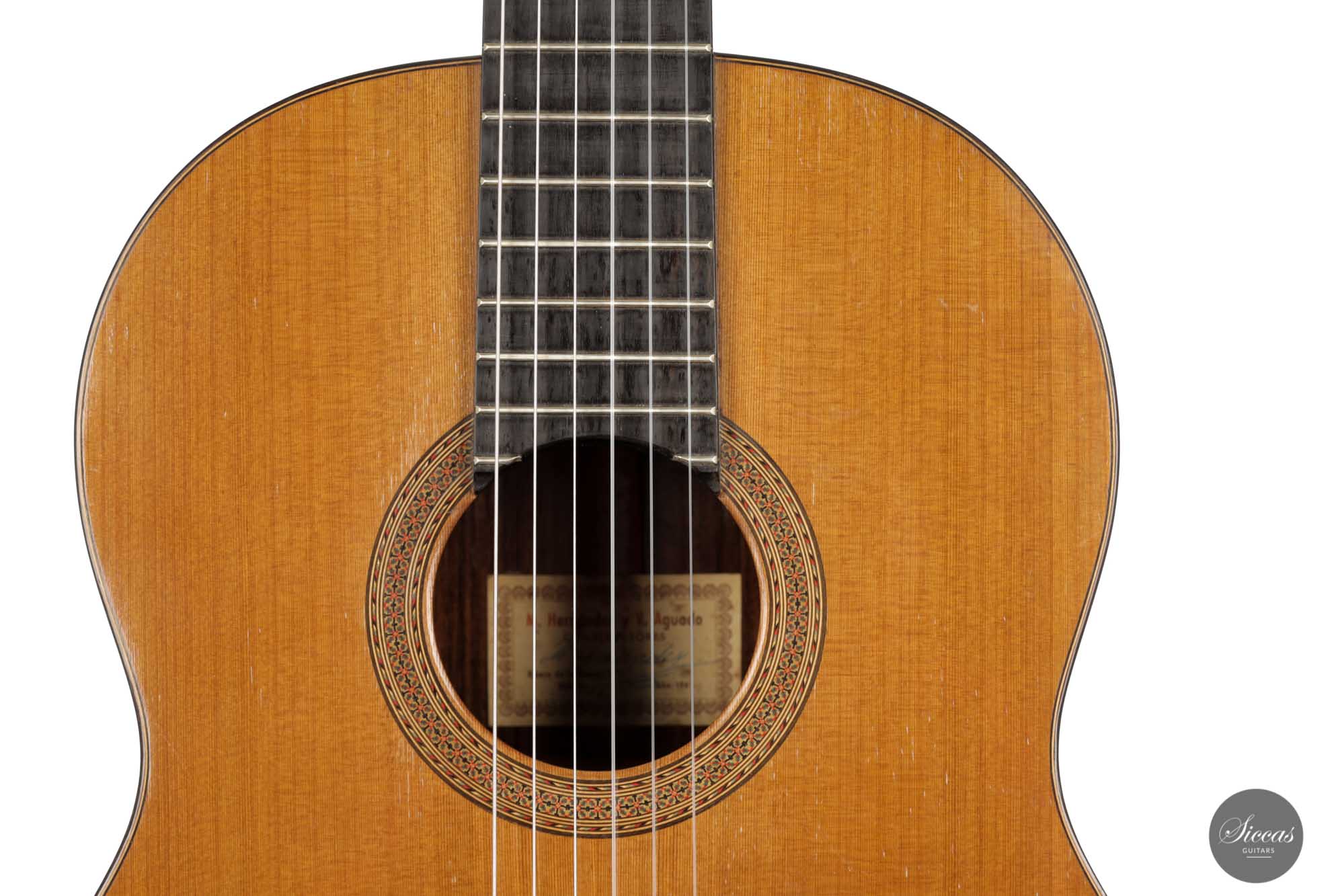 Die beiden Freunde Santiago Diaz Martinez, besser bekannt als Manuel Hernandez, und Victoriano Aguado Rodriguez lernten sich in einer Klavierfabrik kennen. Nach der Schließung der Fabrik gründeten sie eine eigene Firma, die sich zunächst auf die Restaurierung von Möbeln und Klavieren konzentrierte. Die beiden ersten gebauten Gitarren, die auch von Regio Sainz de la Maza gespielt und begutachtet wurden, waren eine sehr ermutigende Erfahrung und die beiden Freunde beschlossen, weiterhin Gitarren zu bauen. 1948 schloss sich Modesto Borreguero, der in der Werkstatt des berühmten Gitarristen Manuel Ramirez gearbeitet hatte, Manuel Hernandez und Victoriano Aguado Rodriguez an und sie konzentrierten sich zunehmend auf die Herstellung von Gitarren – mit großem Erfolg. Berühmte Künstler wie John Williams, Julian Bream und Atahualpa Yupanqui spielten „HyA“ -Gitarren.