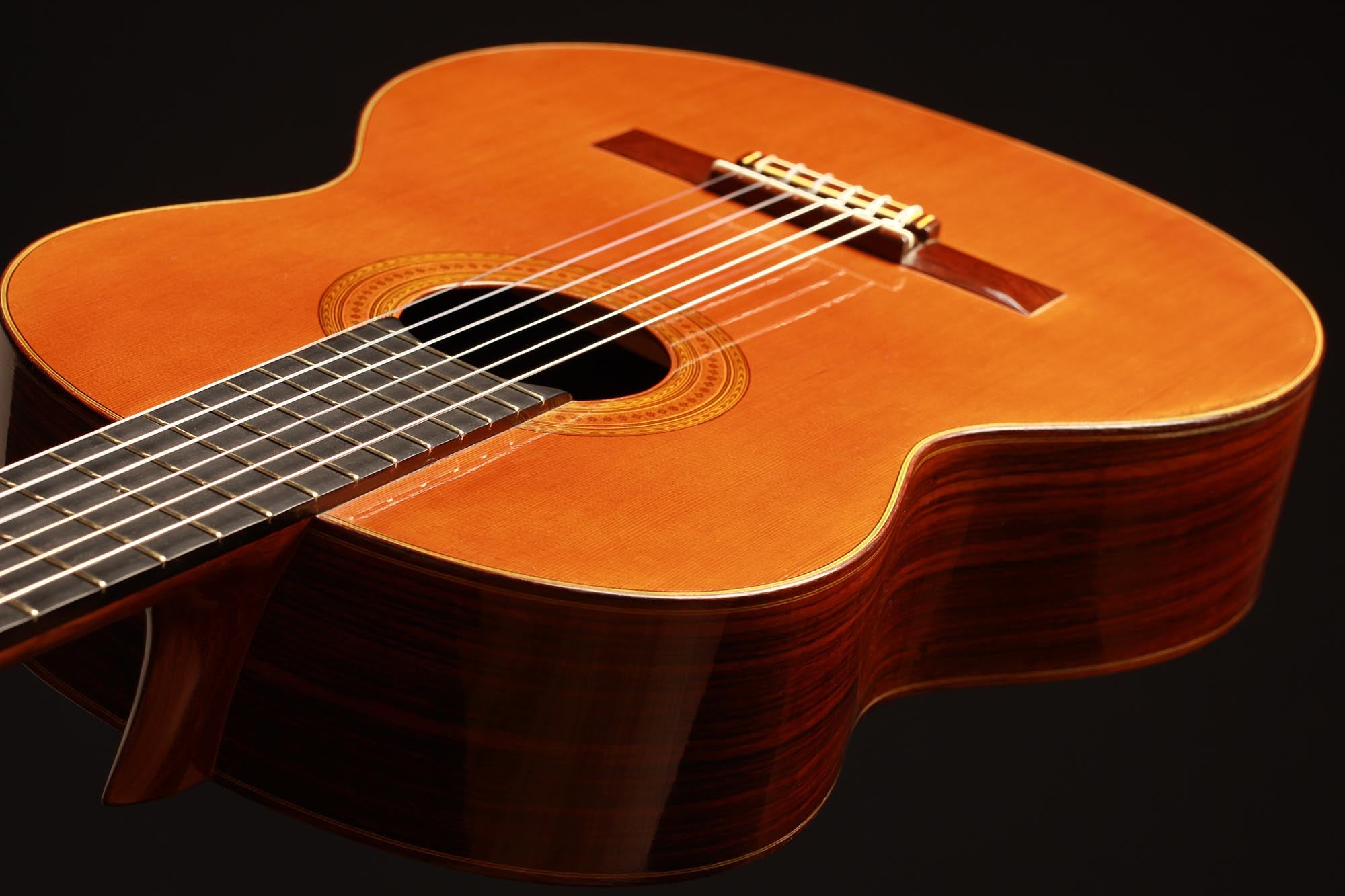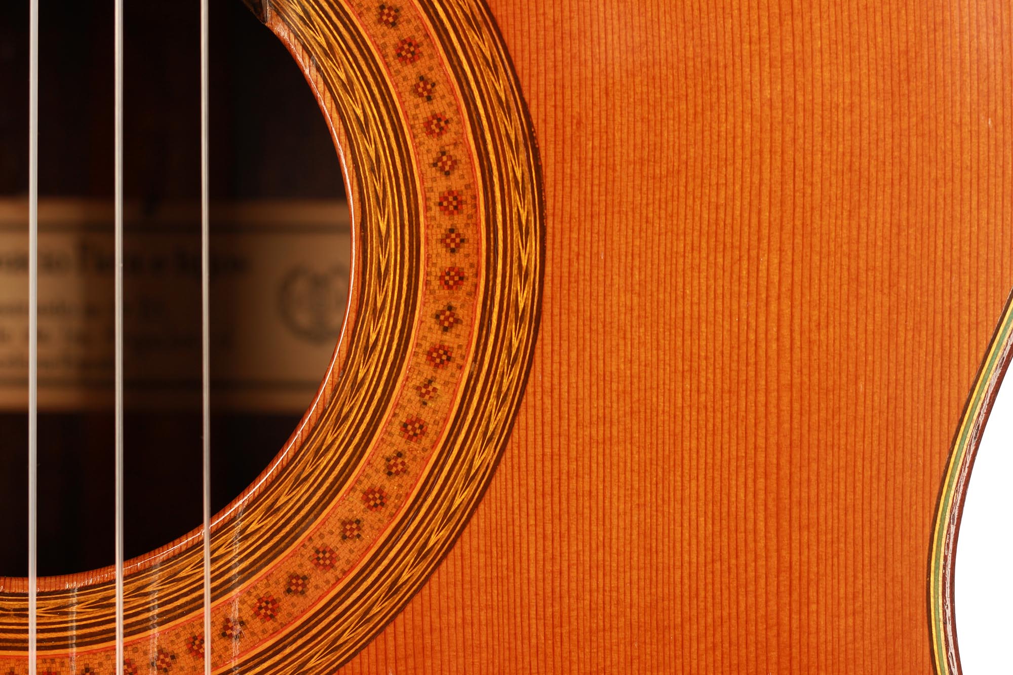 Dieses Instrument aus dem Jahr 1973 ist in einem sehr guten Zustand und weist keinerlei Risse oder Reparaturen auf. Sie hat auch nur wenige oberflächliche Gebrauchsspuren, die sich vor allem am Boden befinden; die Zederndecke ist makellos. Alle Qualitäten, die den Ruf der Fleta Gitarren begründen sind in dieser Gitarre eindeutig wiederzufinden. Sie hat einen ausdruckstarken kräftigen Klang, der durch einen schönen lyrischen Diskant und tiefen warmen Bässen geprägt wird.