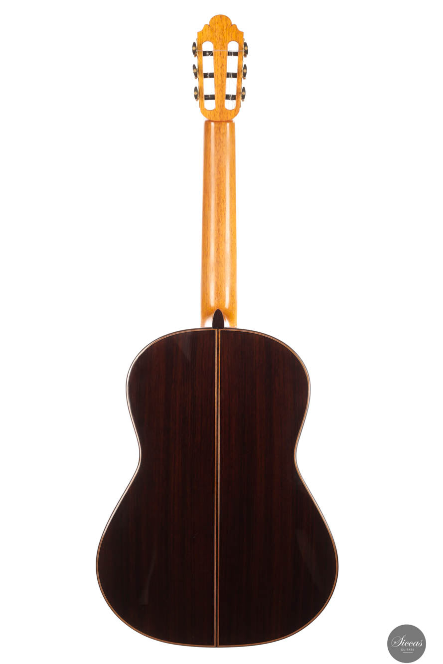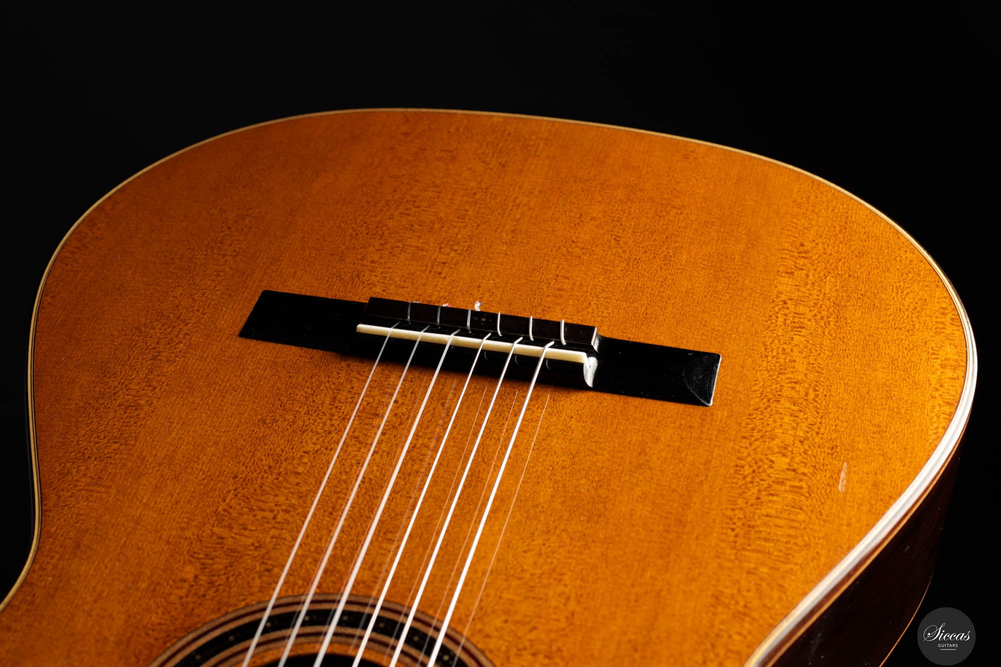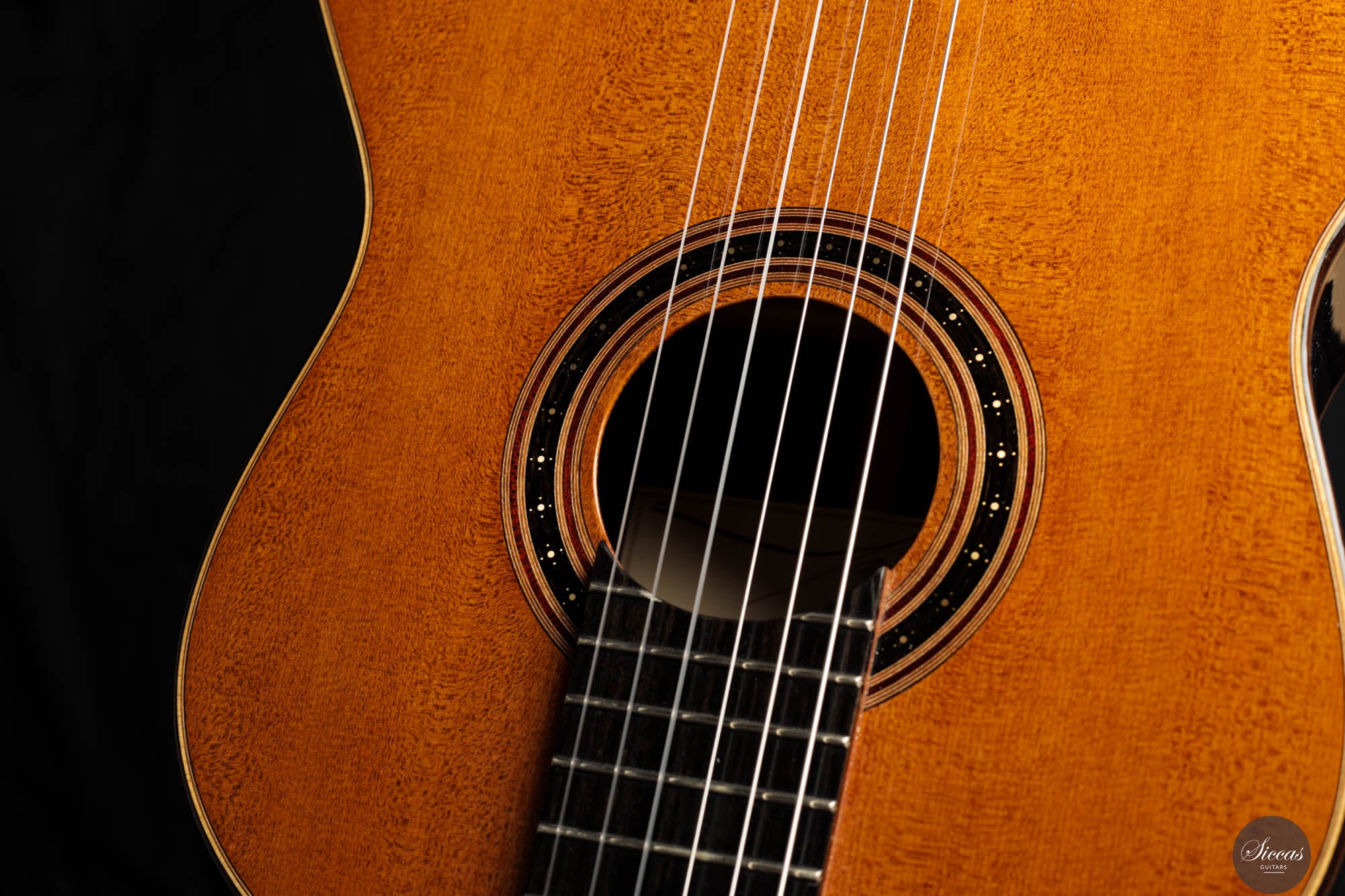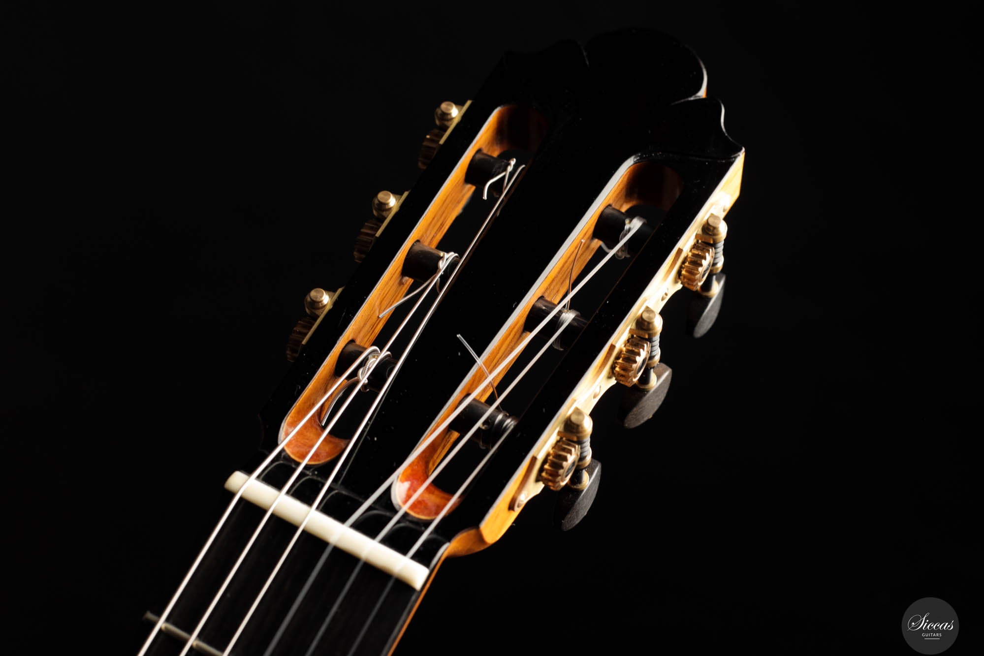 This instrument is a marvel to play, offering exceptional playability that can captivate any guitarist. It features a tiny, strategically placed cleat near the heel on the side, a subtle addition that Jakob incorporates routinely as a preventative measure against potential structural issues. This detail underscores his meticulous approach to durability without compromising the guitar’s aesthetic or sound quality. For enthusiasts and professional musicians alike, owning a Jakob Lebisch guitar means experiencing the blend of artistry and engineering that makes his guitars not just instruments, but true works of art. This particular guitar, free from any structural problems, is a dream to play and a testament to Jakob’s innovative craftsmanship and visionary approach to guitar building.