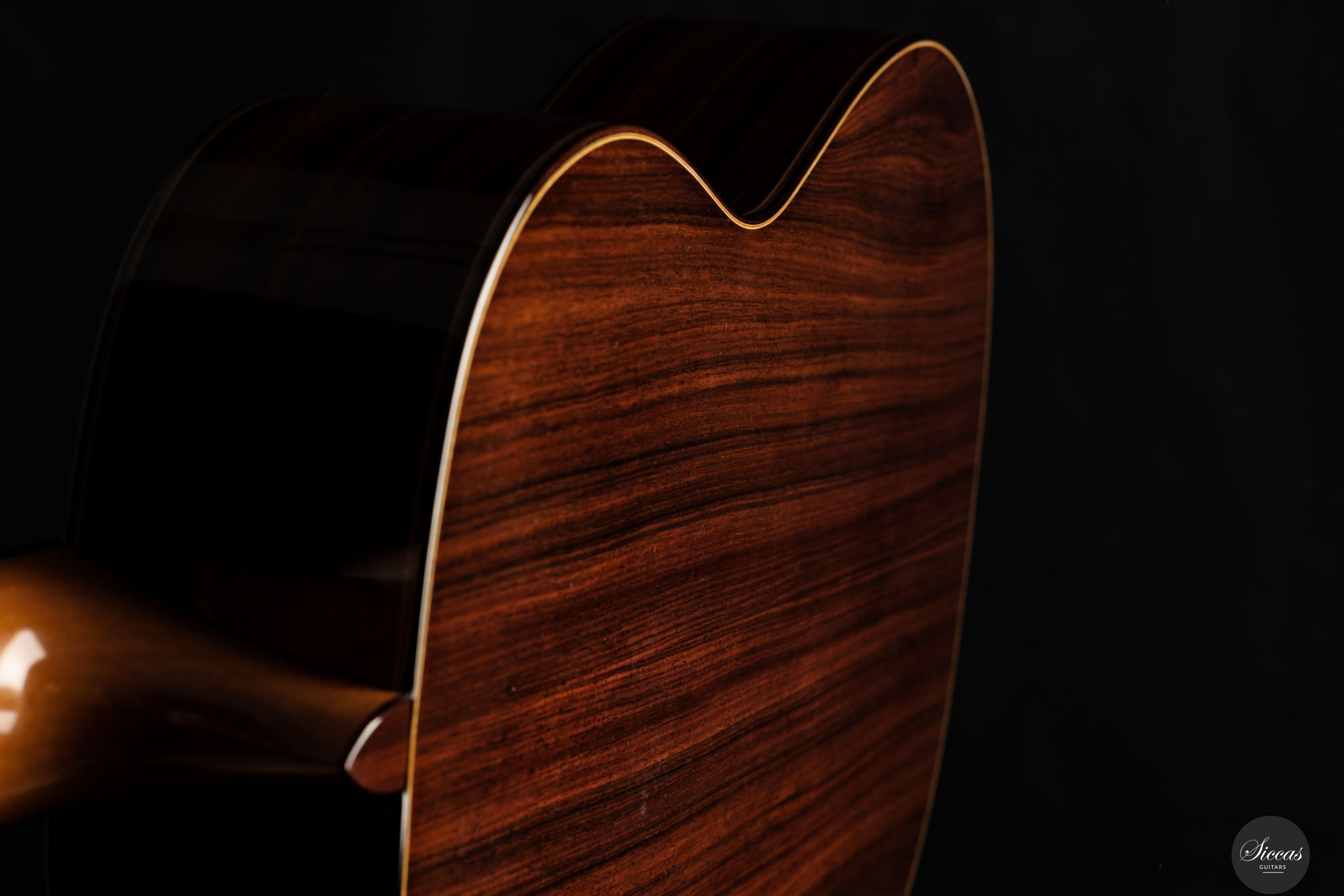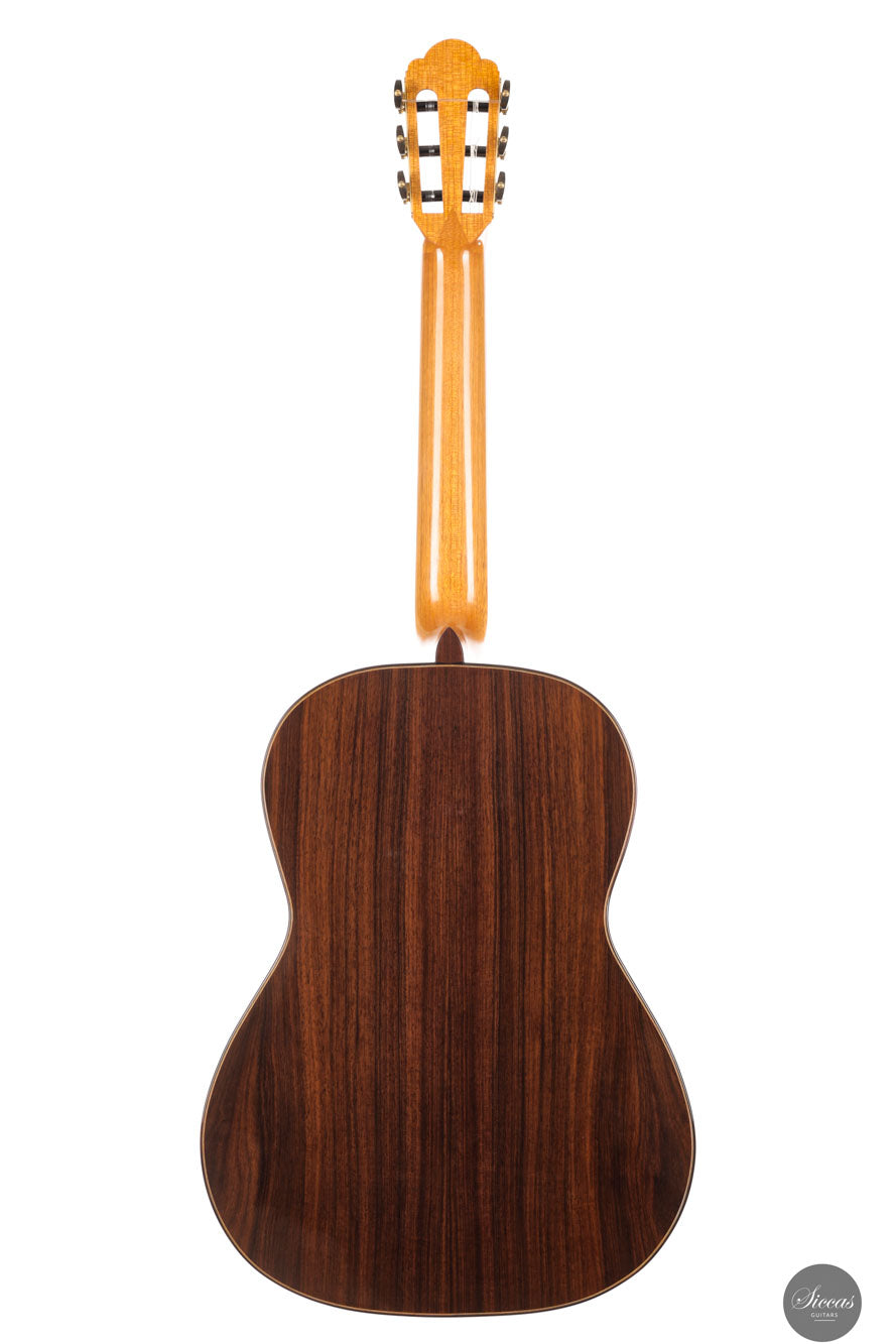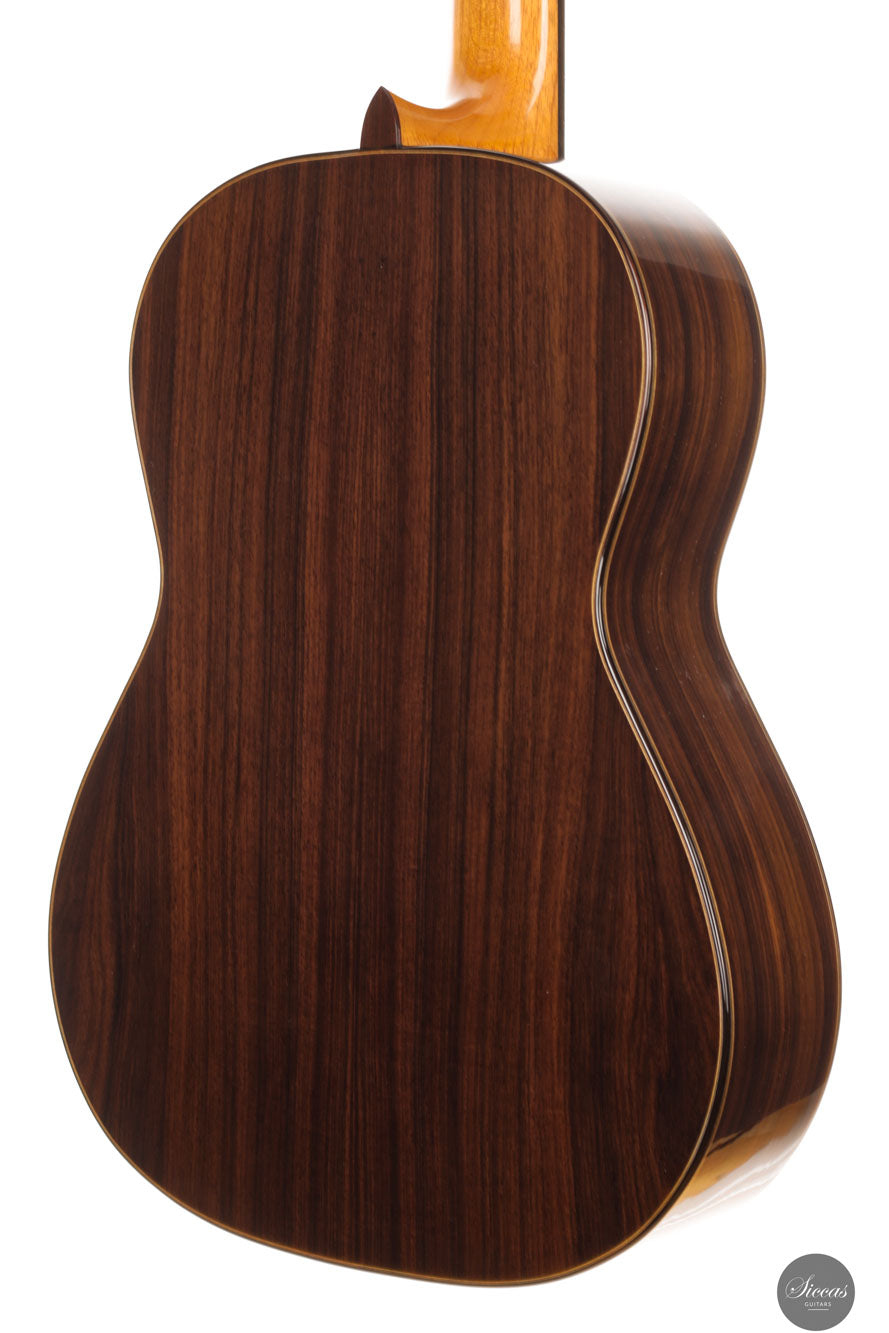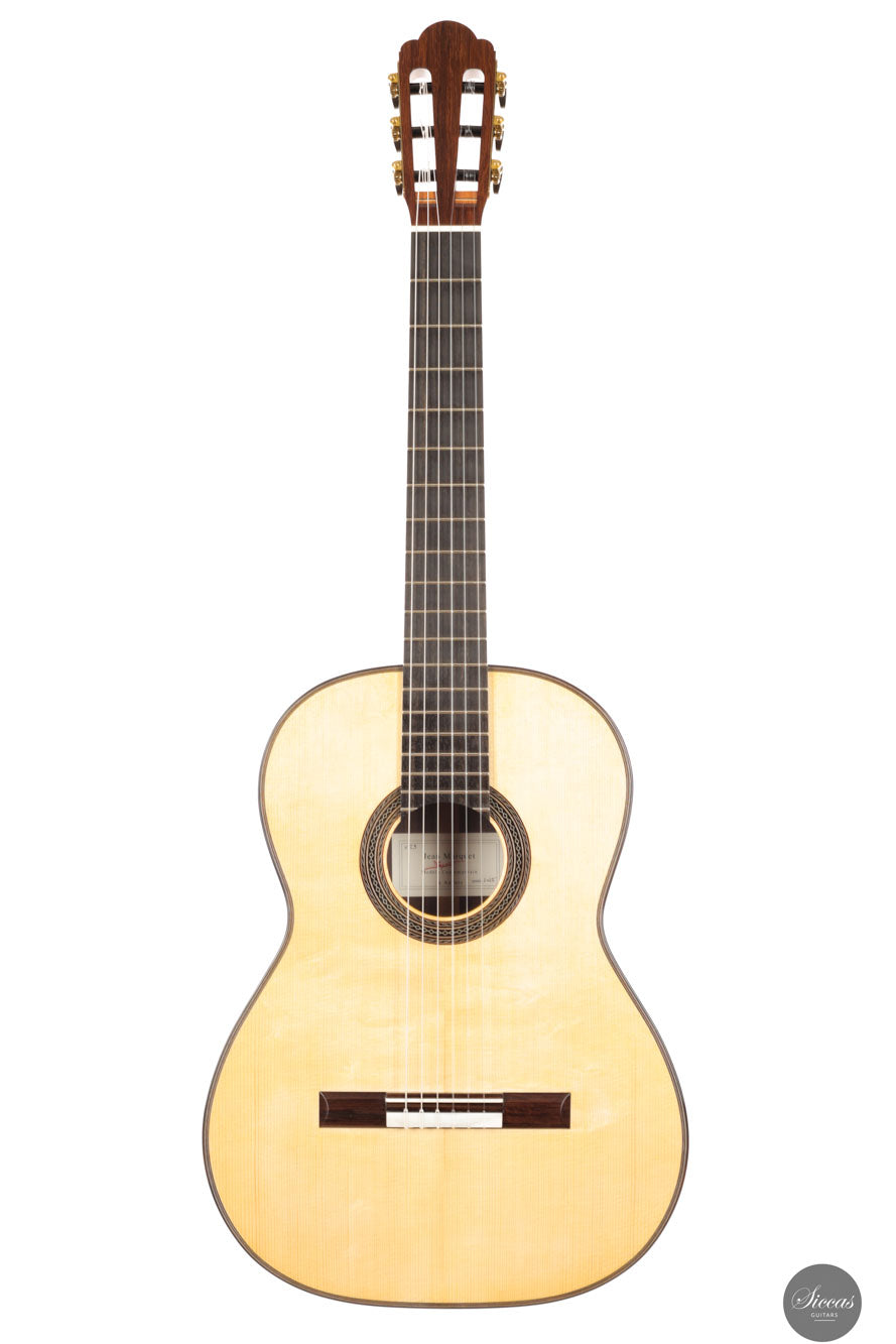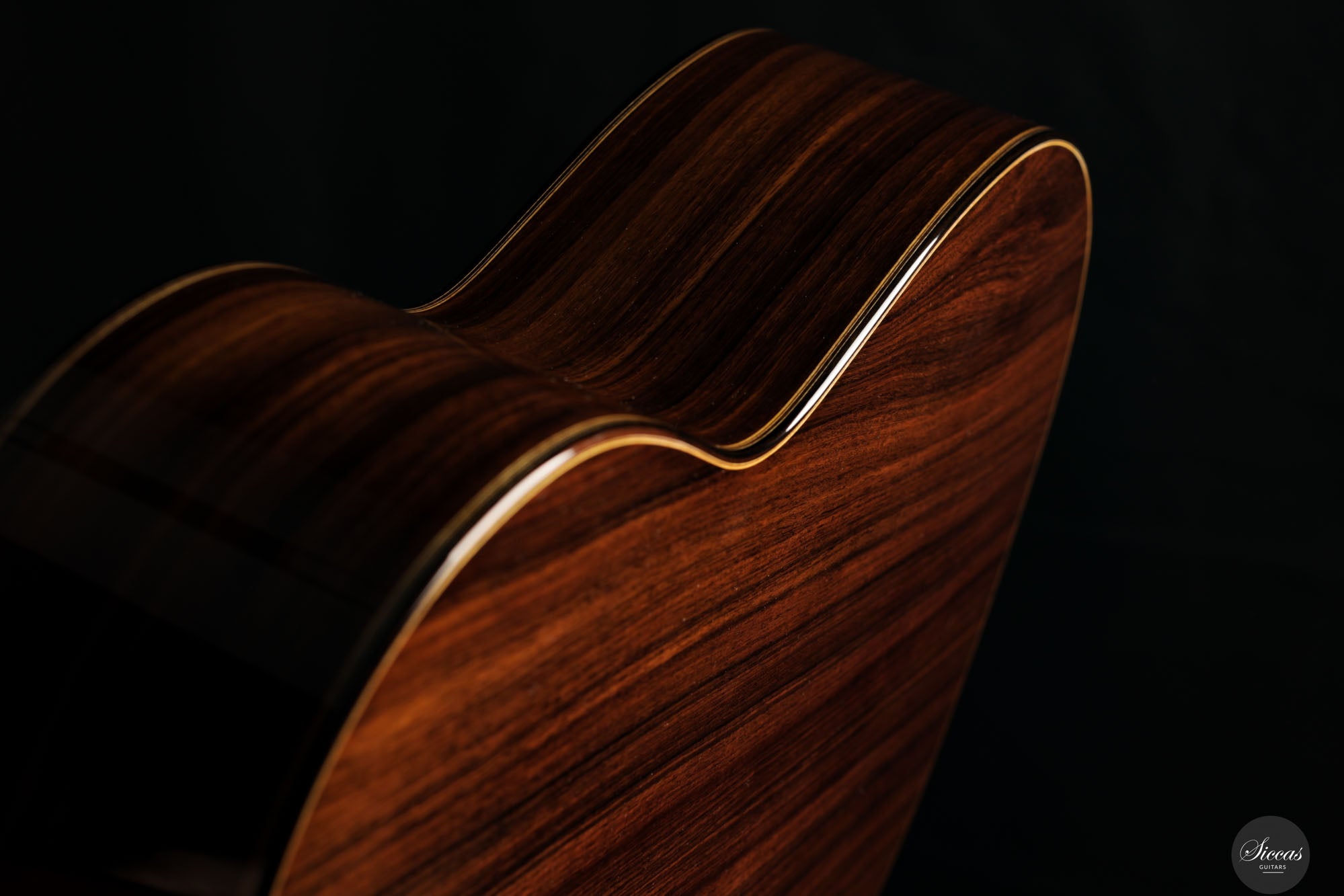 Das Modèle Contemporain beginnt mit einer sorgfältig abgestimmten Fichtendecke, die 2001 von Gerhard Oldiges bezogen wurde, um den idealen Kompromiss zwischen Flexibilität und Stärke zu erreichen. Um die Projektion und den Dynamikbereich zu verbessern, sind Boden und Zargen aus indischem Palisander sorgfältig verstärkt, was auch die Resonanz und die strukturelle Stabilität erhöht. Durch Jean's meisterhafte Handwerkskunst entsteht so ein Instrument mit einer schnellen, intuitiven Ansprache, die fast unmittelbar auf die Berührung des Spielers reagiert. Die Diskantsaiten schweben mit einer klaren, singenden Qualität, während der Mitteltonbereich eine reiche, farbenfrohe Klangpalette bietet, die zur Erkundung von Klanglandschaften einlädt. Das Sustain ist lang und gleichmäßig, sodass die Töne wunderschön nachklingen, und das Instrument bewahrt außergewöhnliche Trennung und Kompromiss über alle Register hinweg.
