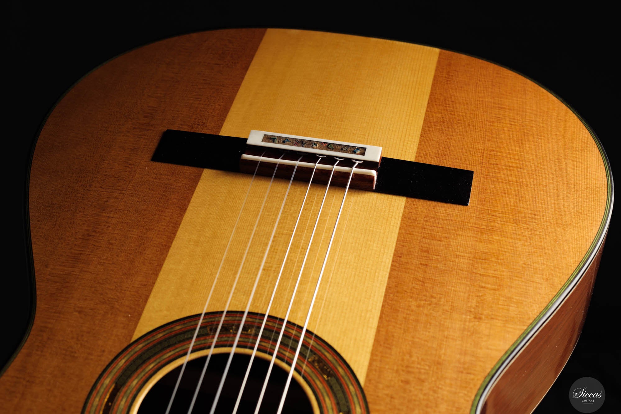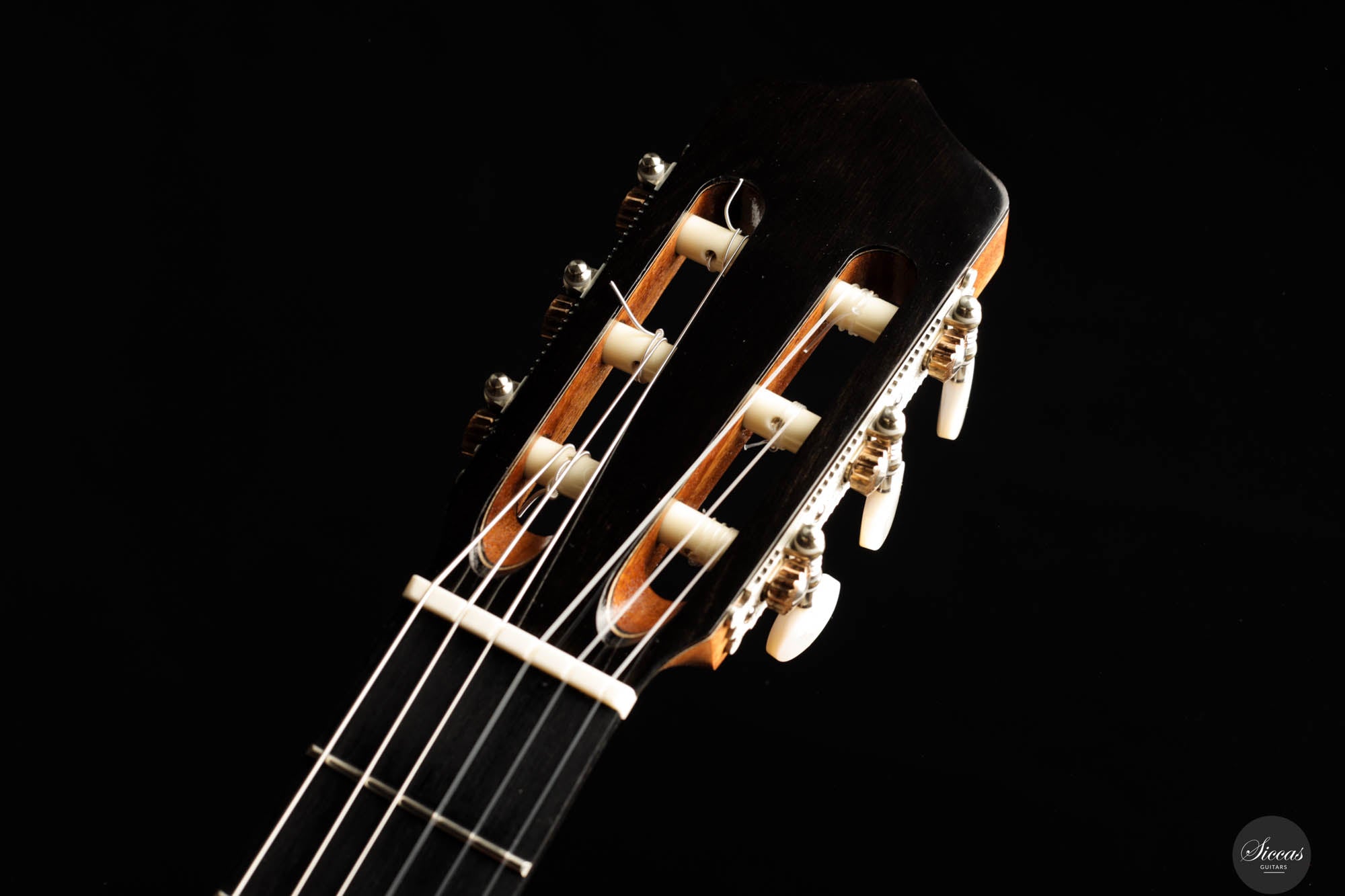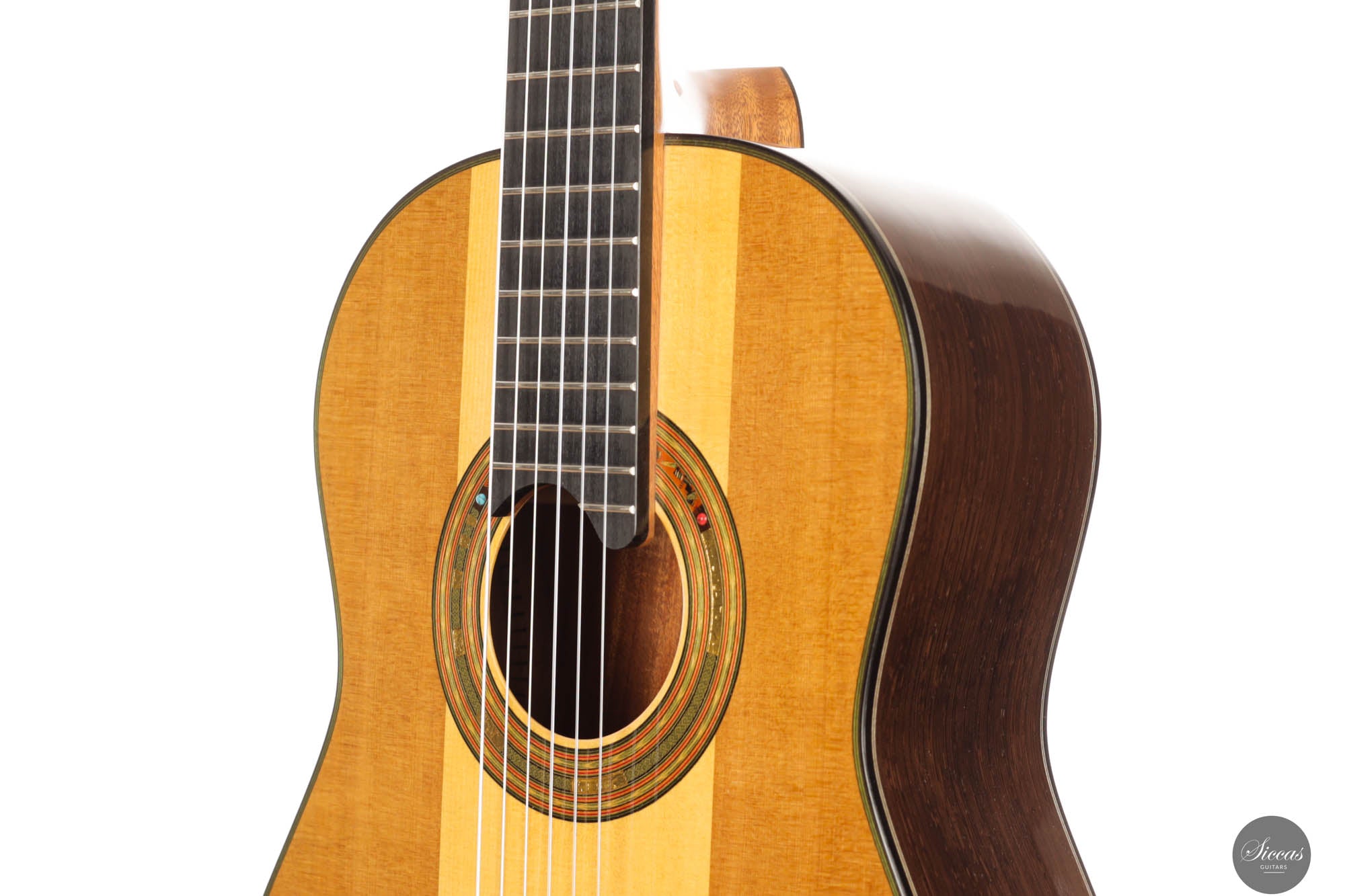 Akustisch verkörpert dieses Instrument den Geist und den charakteristischen Klang des Coclea Thucea-Designs. Rücken und Seiten sind mit Mahagoni verstärkt, eine Wahl, die nicht nur die strukturelle Stabilität der Gitarre erhöht, sondern auch ihre Klangprojektion deutlich verbessert. Die Höhen sind sanft und abgerundet und bieten große Klarheit, während das Gesamtvolumen der Gitarre bemerkenswert ist. Entworfen für die Konzertbühne, erfüllt diese Gitarre alle Erwartungen an ein hochkarätiges Instrument und macht sie zu einem echten Juwel sowohl für Performer als auch für Sammler.