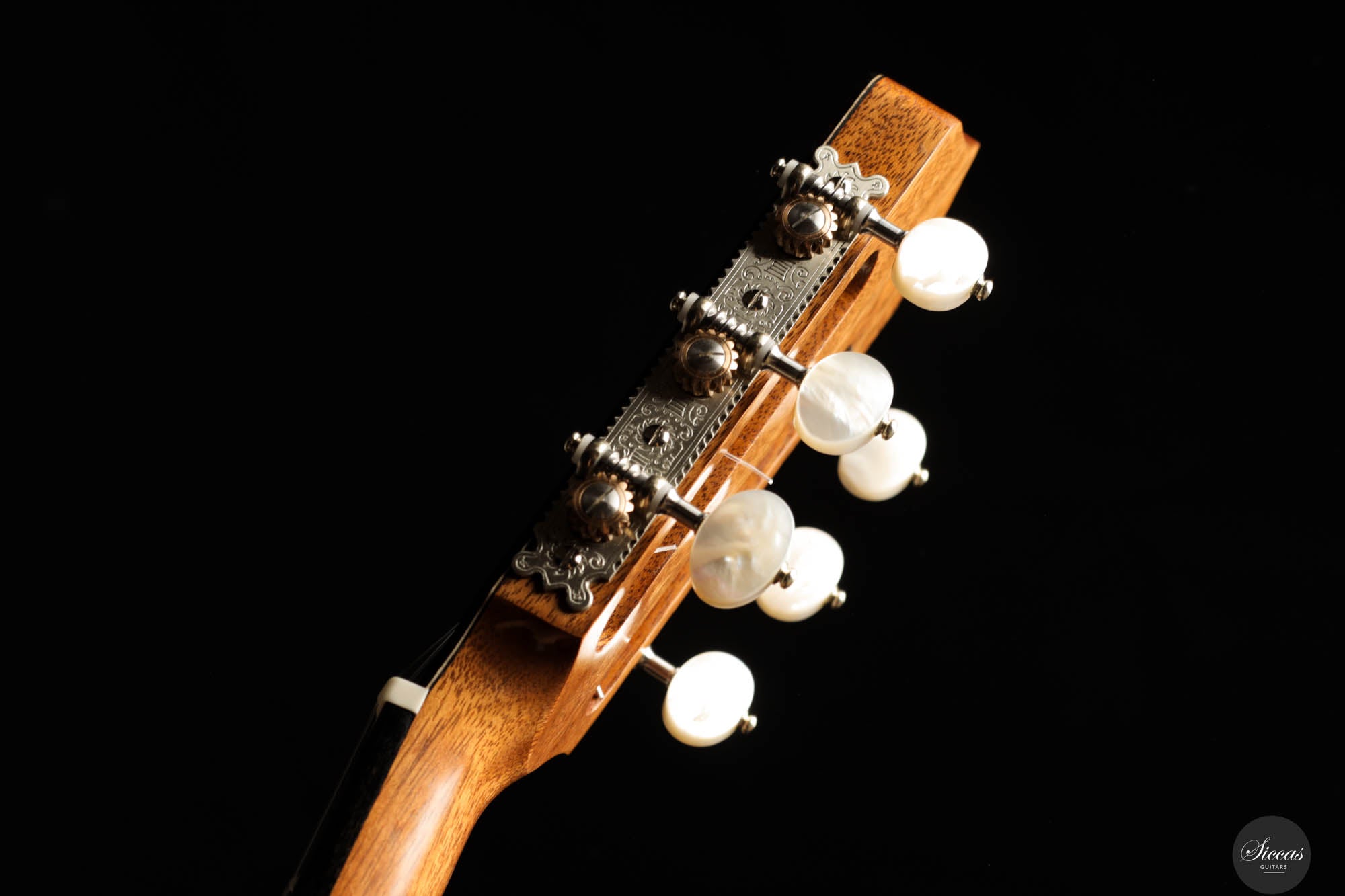 Diese Gitarre, gefertigt von Jialan, ist eine atemberaubende Hommage an Maestro Andrea Tacchi aus Florenz, den ursprünglichen Schöpfer des Coclea Thucea-Designs. Als engagierter Schüler von Tacchi hat Jialan nicht nur die Erlaubnis erhalten, dieses renommierte Design nachzubilden, sondern verfügt auch über ein tiefes Verständnis der zugrunde liegenden Konzepte. Jialans Hingabe an dieses Handwerk zeigt sich in den unzähligen Stunden, die er damit verbracht hat, die komplexe Rosette sorgfältig nachzubilden und die Gitarre zu verzieren, einschließlich der Hinzufügung von reinen Goldelementen in der Rosette und im Saitenhalter. Diese Liebe zum Detail erhöht nicht nur die luxuriöse Ästhetik des Instruments, sondern unterstreicht auch das außergewöhnliche Handwerk, das Jialan bei jeder Gitarre an den Tag legt.