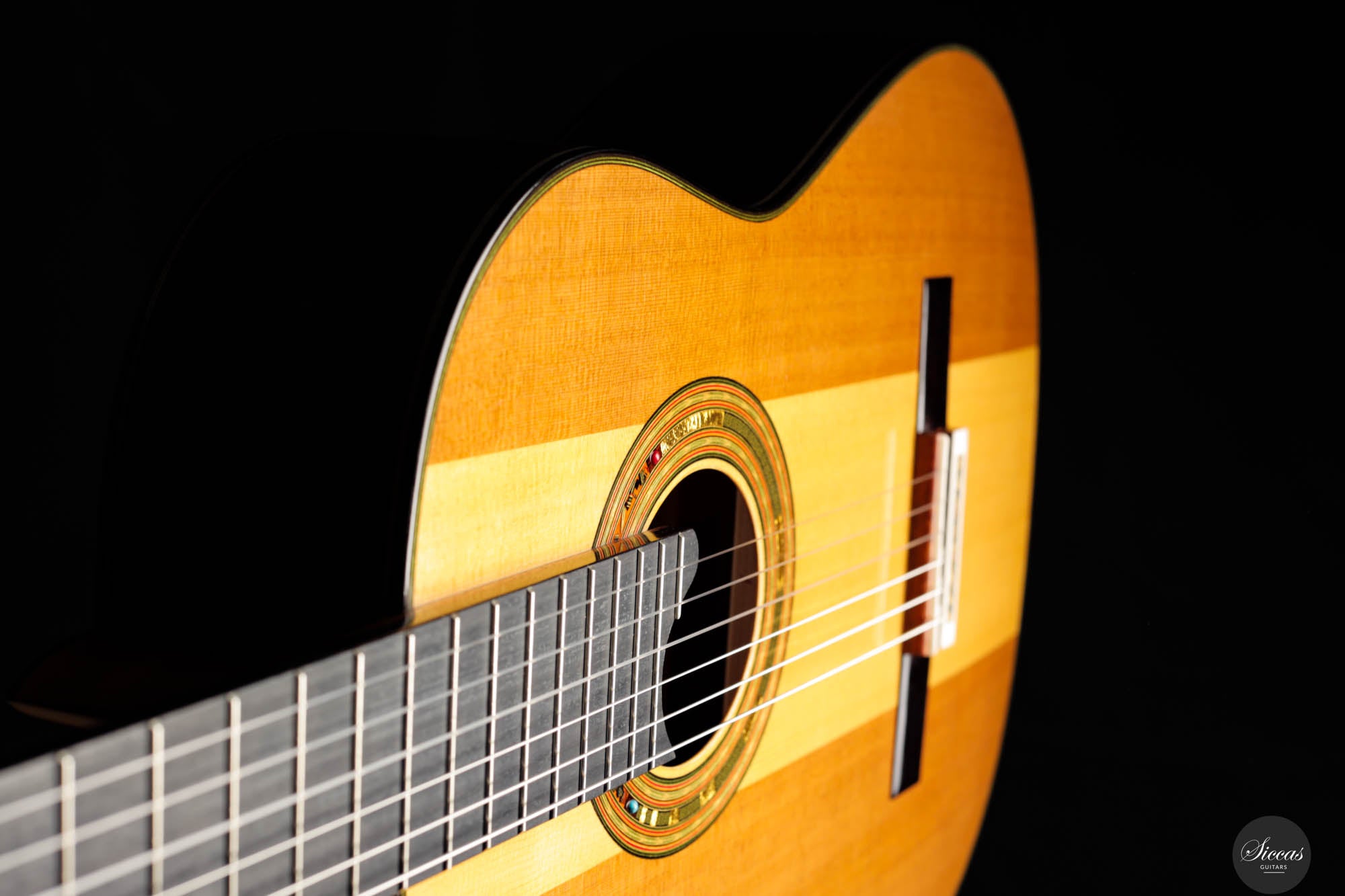 Die klassische Gitarre mit ihren weichen Nylonsaiten und ihrem charakteristischen Timbre ist zum Symbol der Kammermusik, der spanischen Tradition und des Konzertrepertoires geworden. Ihre moderne Form prägte Antonio de Torres im 19. Jahrhundert, indem er den Standard für Korpus, Fächerbeleistung und die 65-Zentimeter-Mensur setzte, die bis heute verwendet werden. Instrumente dieser Kategorie eröffnen eine reiche Palette von den feinen romantischen Miniaturen Tárregas bis zu den majestätischen Konzerten Rodrigos. Hier finden Sie Gitarren, die historische Kontinuität bewahren und zugleich zu neuen Interpretationen anregen.