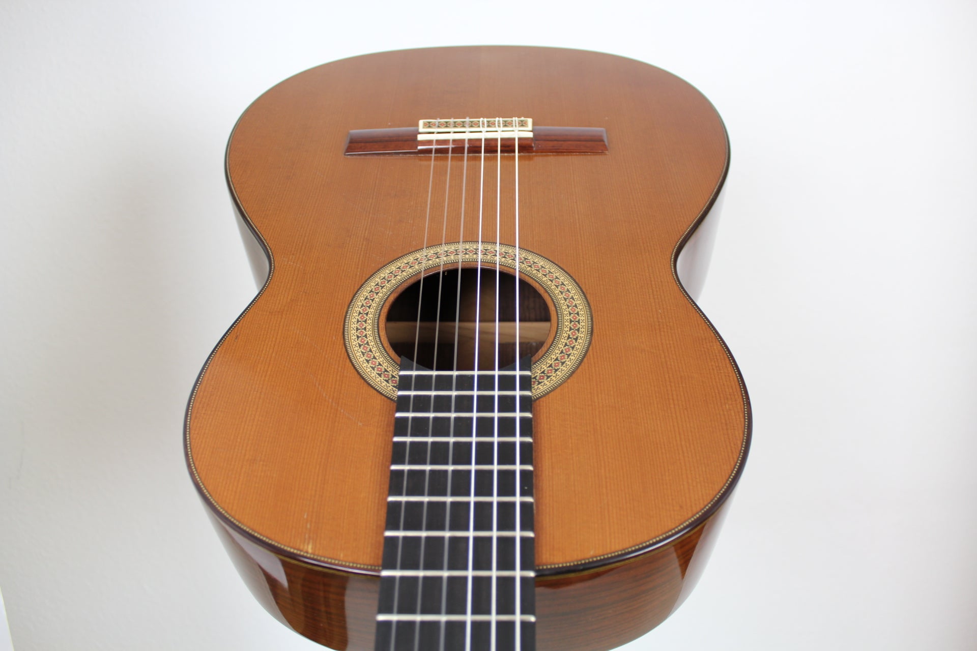 Preis auf AnfrageGitarrenbauer: Ignacio FletaBaujahr: 1954Decke: SpruceBoden und Zargen: Brazilian rosewood (CITES certified)Deckenoberfläche: French polishKorpusoberfläche: NitrocelluloseLuftresonanz: G / G sharpGewicht (g): 1585Mechaniken: FusteroZustand: Very good -