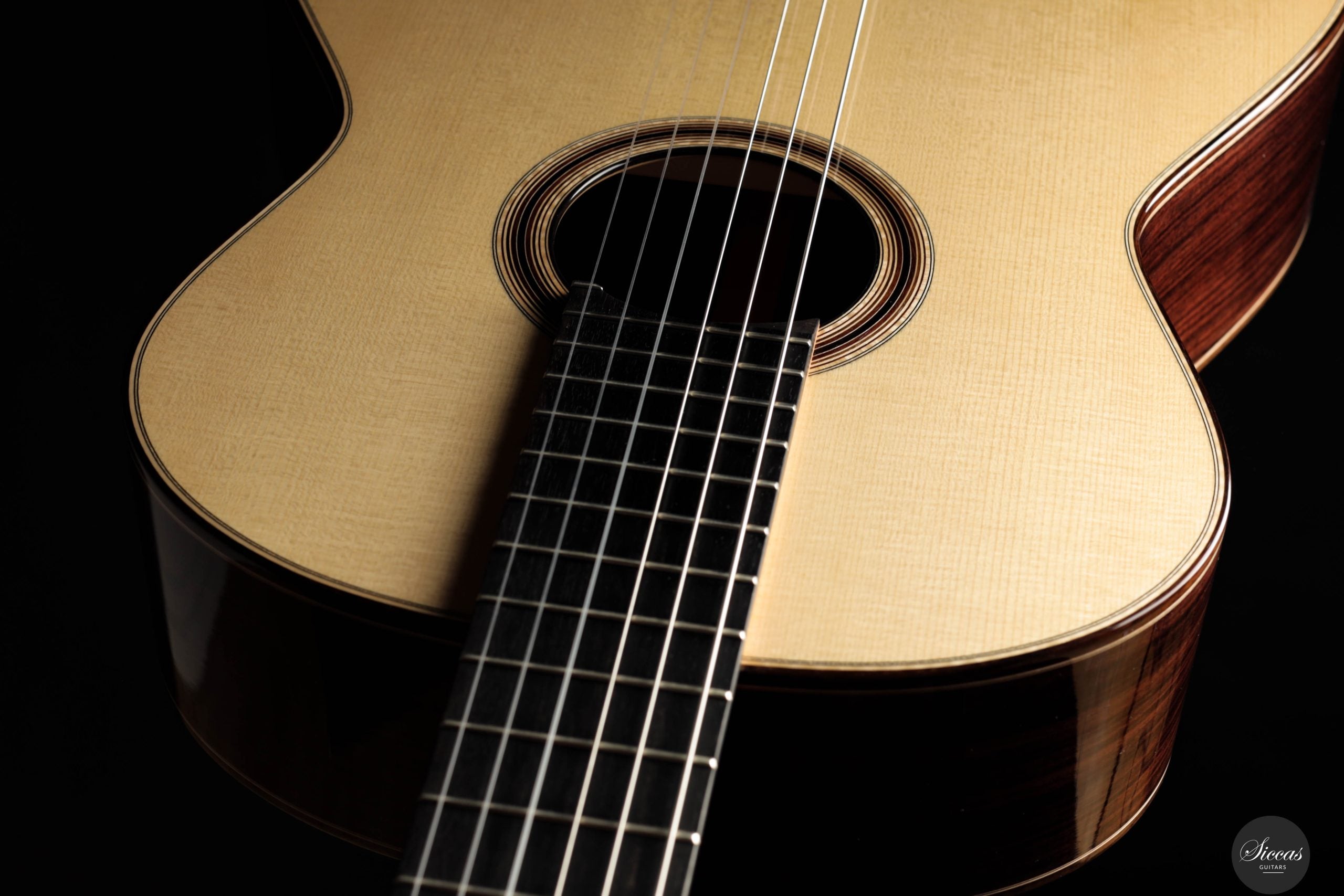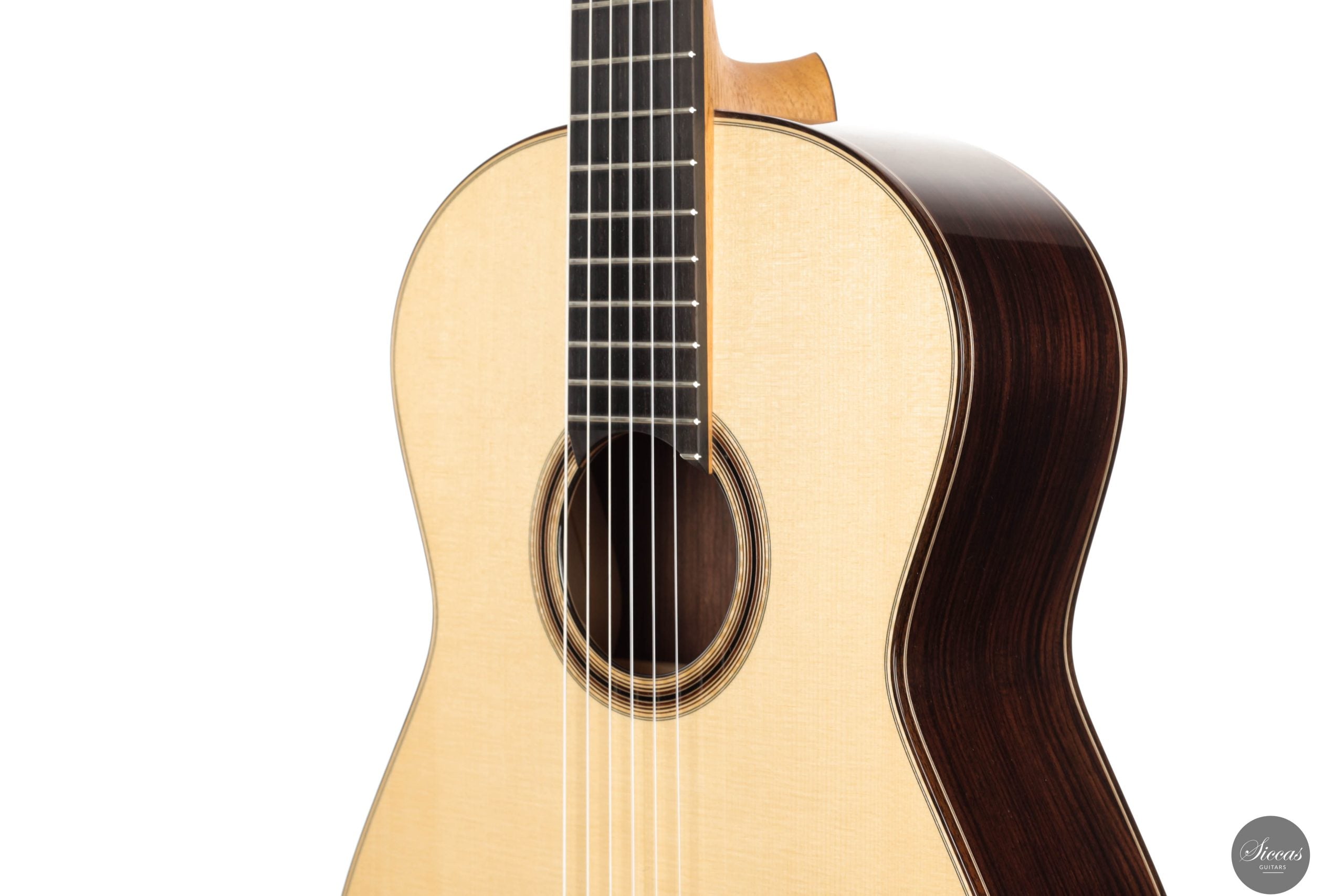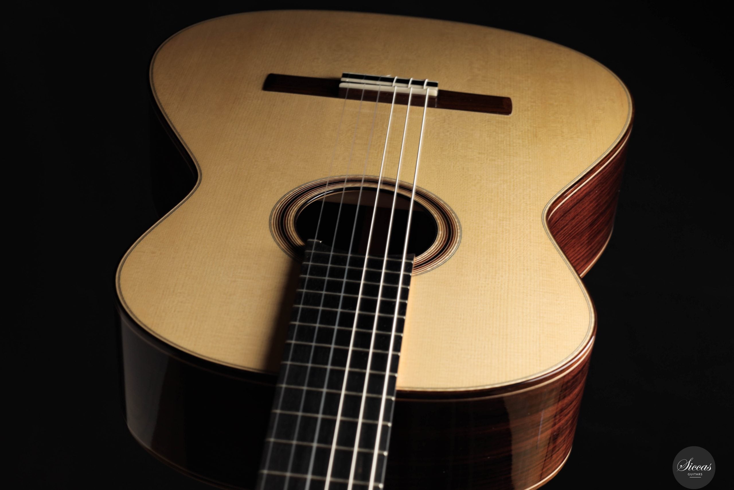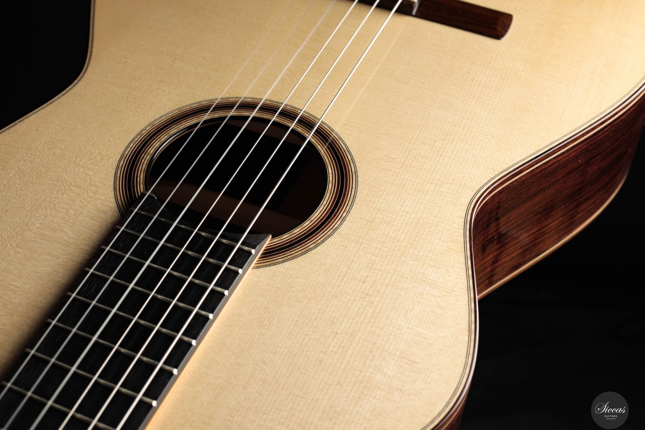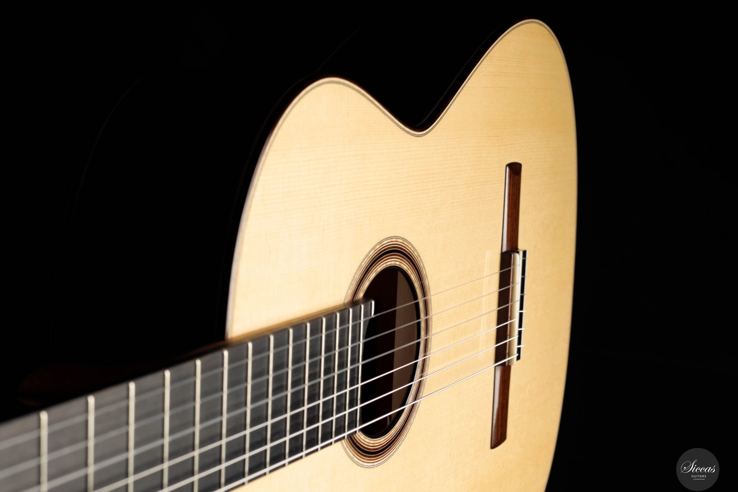 Jonas Anatol Schneele discovered his passion for guitar making early on as an enthusiastic guitarist. After completing an apprenticeship as a carpenter, he followed his fascination for wood and sound and trained as a plucked instrument maker at the technical college in Mittenwald, graduating in 2007. From 2013 to 2016, he deepened his knowledge of acoustics, restoration, innovative construction techniques, and musical instrument design through further studies at the College of Musical Instrument Construction in Markneukirchen. In 2017, he successfully completed his master craftsman’s examination in Mittenwald. Today, Jonas Schneele is one of the promising new generation of German luthiers, known for his precision craftsmanship, balanced tonal aesthetics, and thoughtful innovations.About the guitar