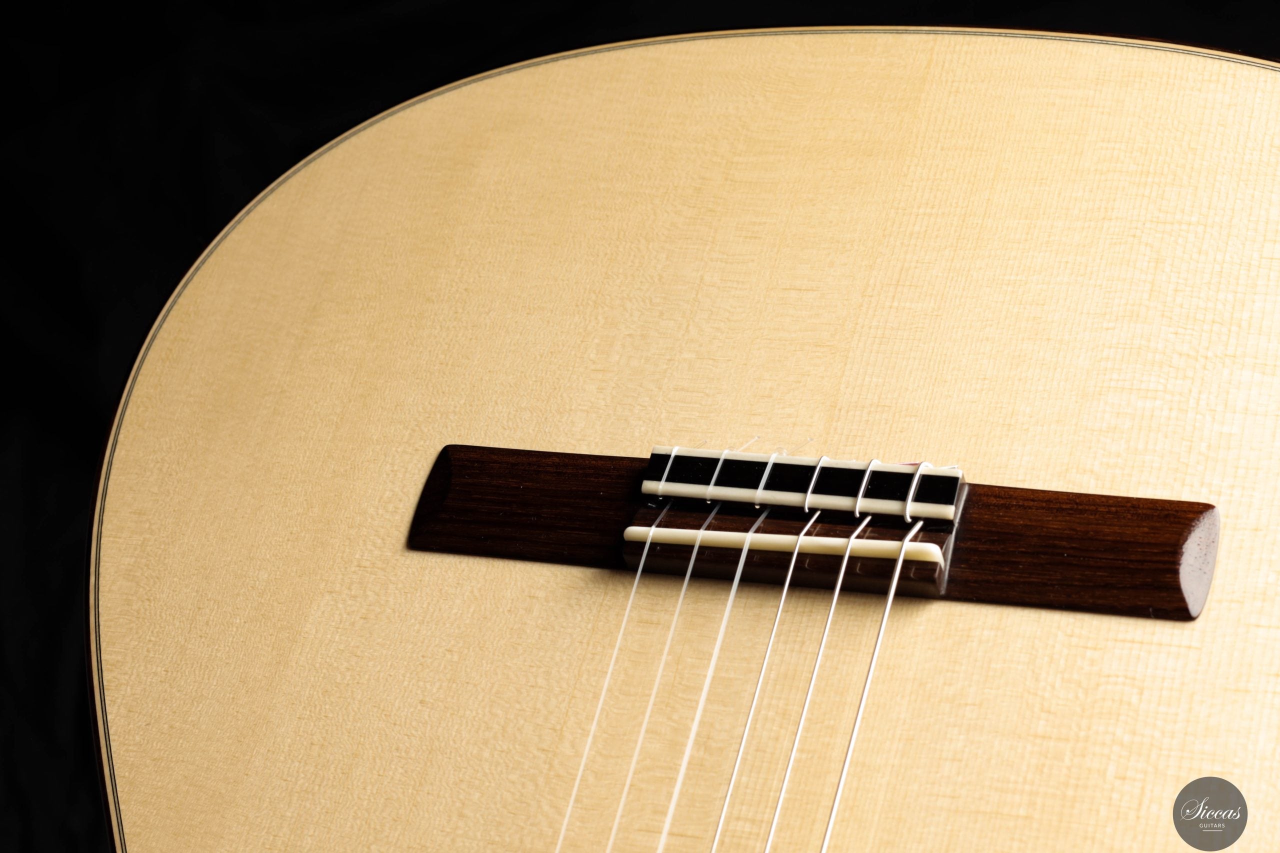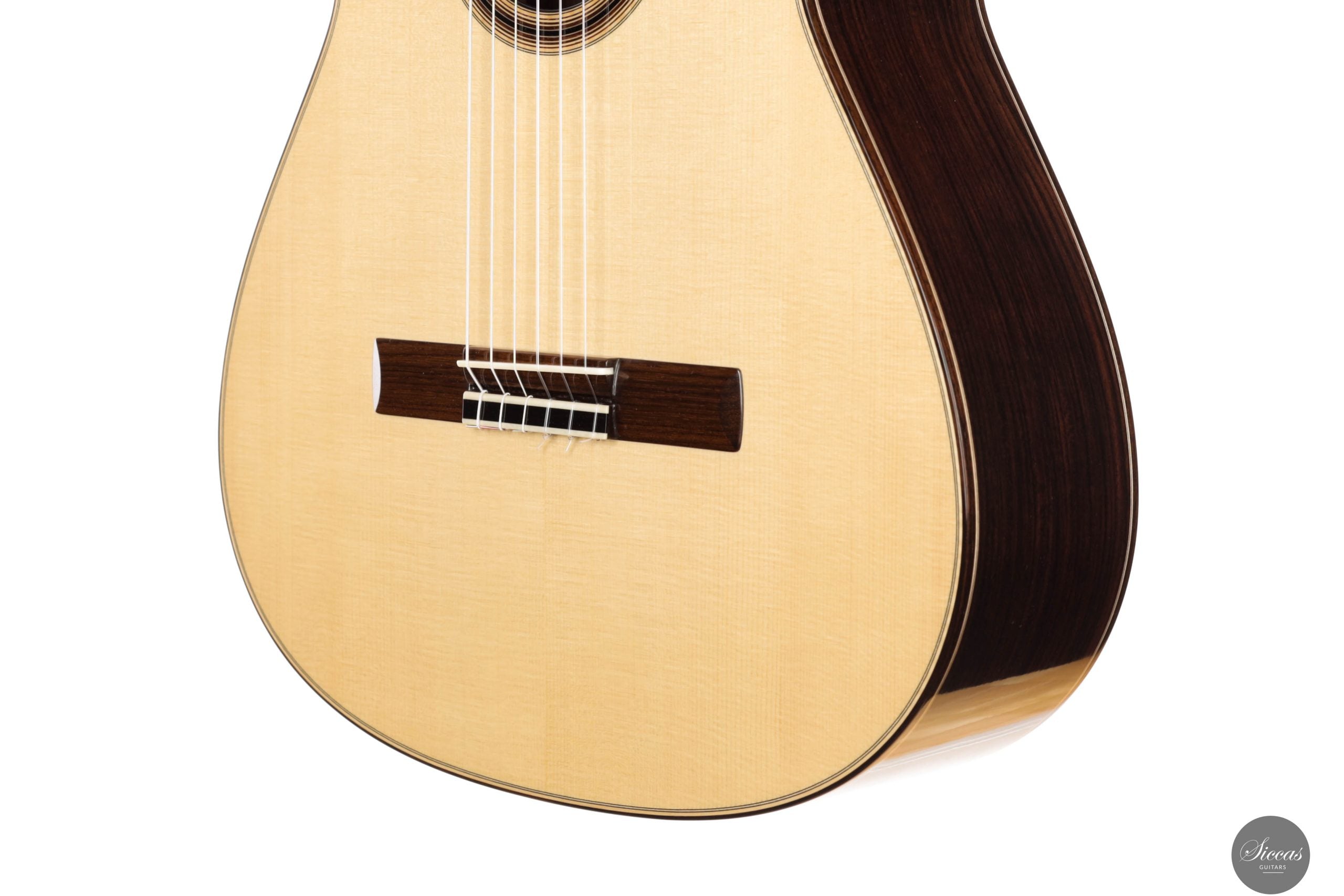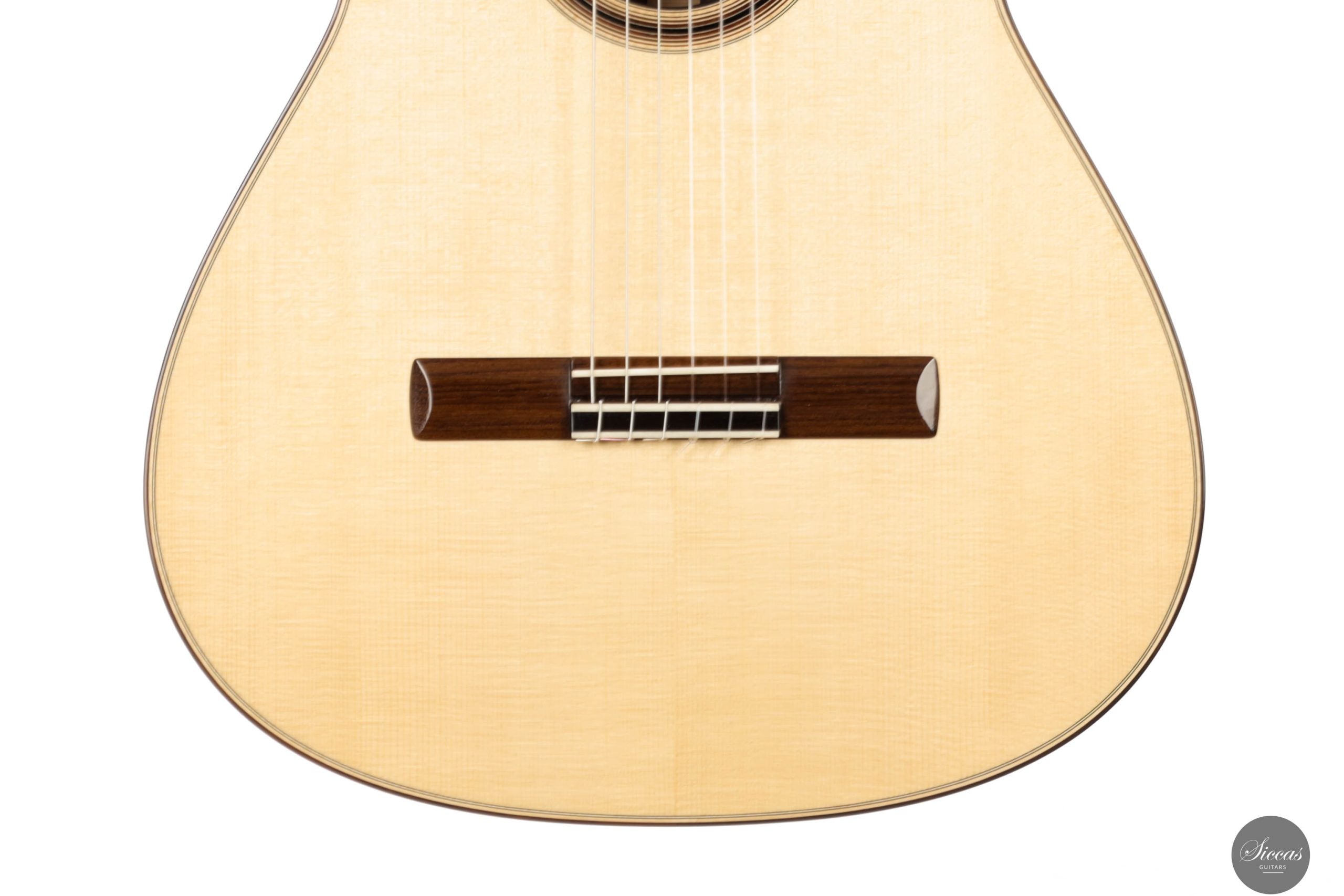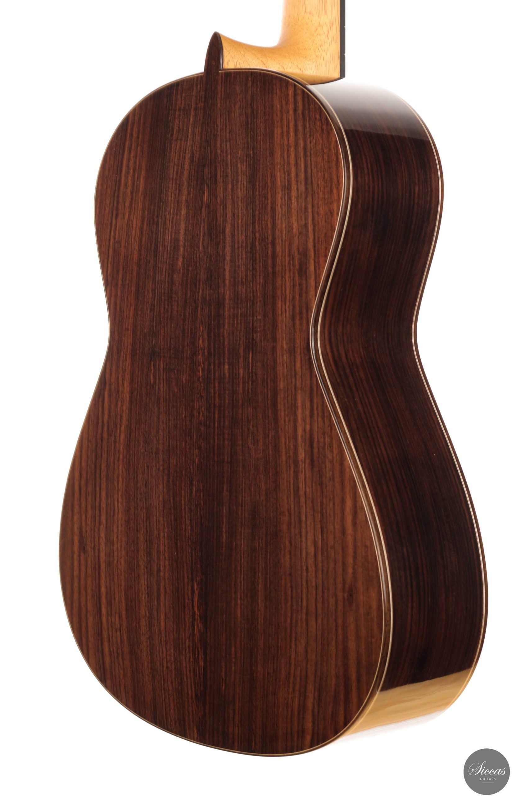 This brand-new guitar by Jonas Anatol Schneele is an outstanding modern concert instrument, delivering impressive volume and refined responsiveness. While it incorporates contemporary elements, it is rooted in traditional construction principles, using a fan bracing system with crossbars—a design that shows some similarity to lattice bracing, yet remains unique in its own approach. A key structural feature is the double-sided construction, which enhances the guitar’s projection and tonal power. It responds quickly and cleanly to right-hand attack, making it highly playable and expressive, particularly in demanding musical contexts. The elevated fingerboard further improves access to the upper register, making the instrument especially suitable for modern concert repertoire. Despite its modern design features, the guitar retains a rich and varied tonal palette, allowing the performer to explore a wide range of colors, dynamics, and expressive nuances.Regelmäßige Pflege verlängert die Lebensdauer des Instruments
